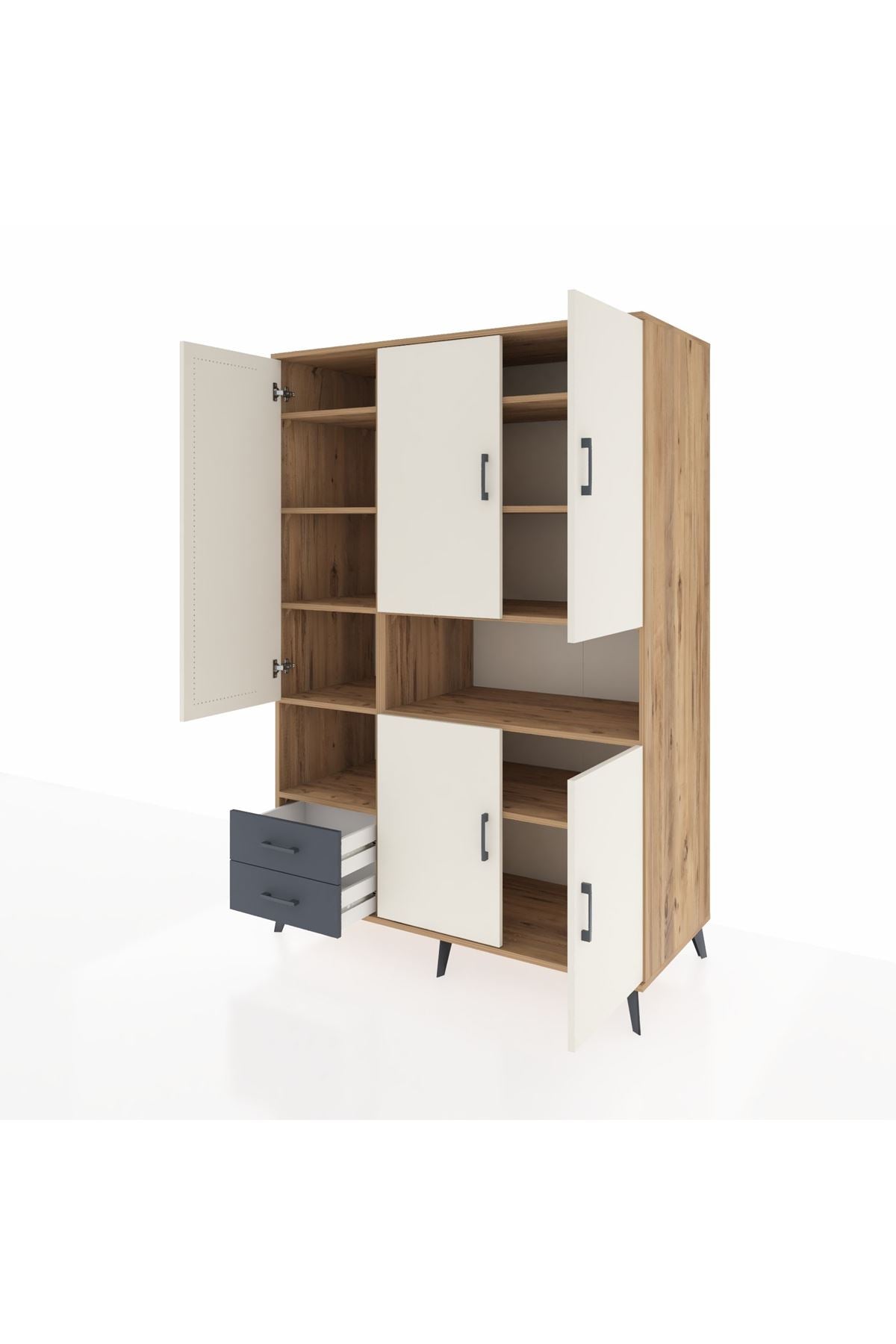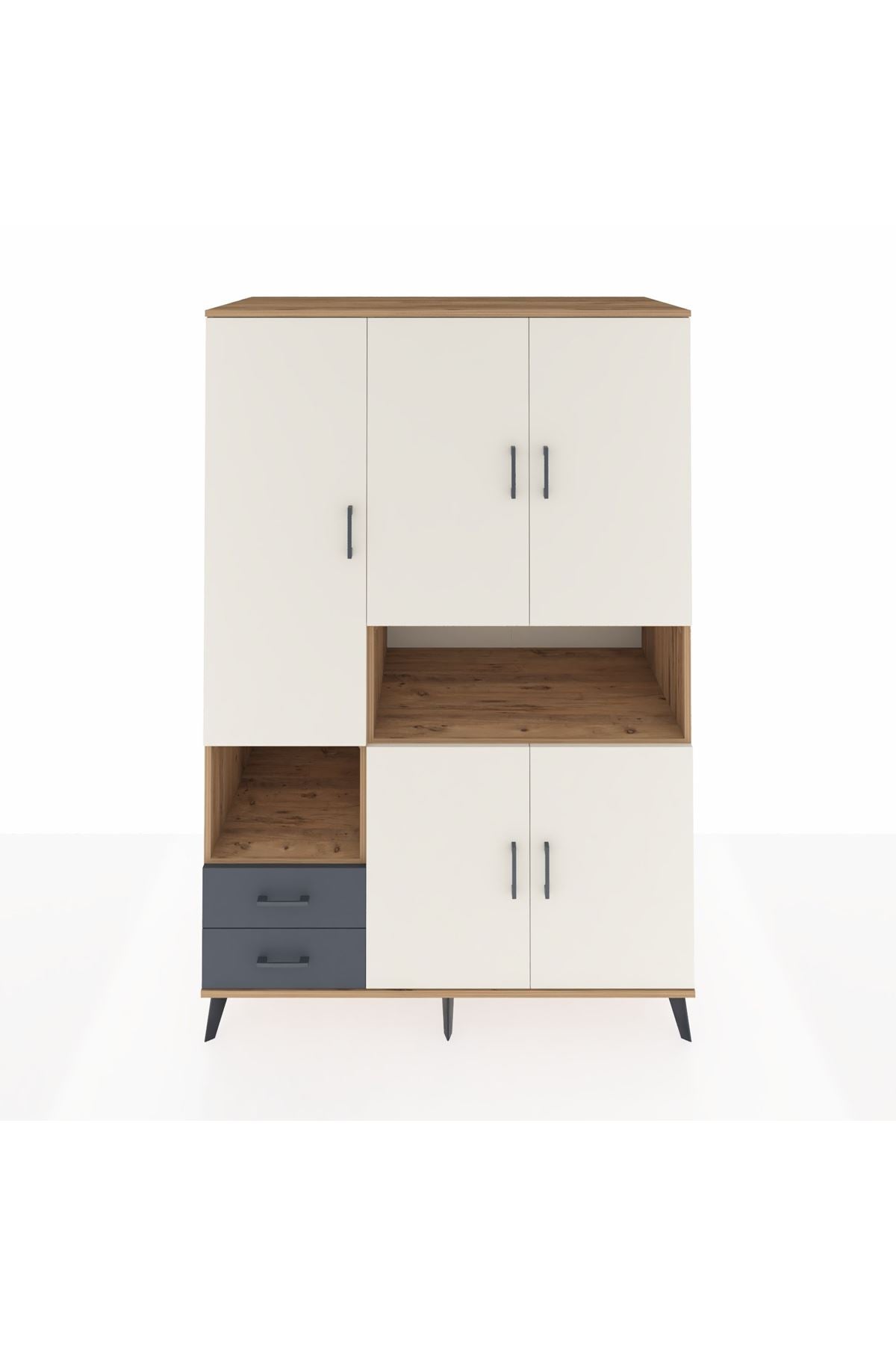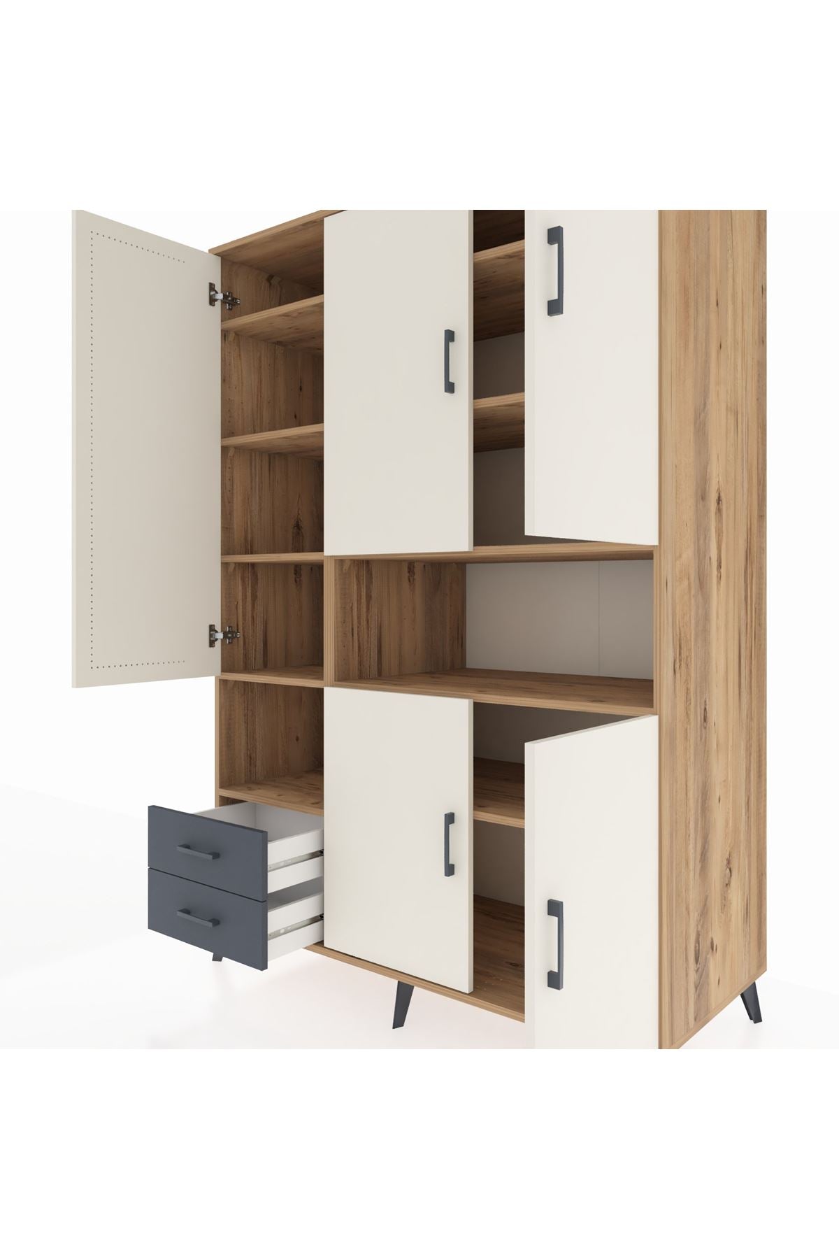 Kronos Dolap 10 Raflı 2 Çekmeceli 5 Kapaklı 132x59x195 Çam-Aytaşı/Antrasit