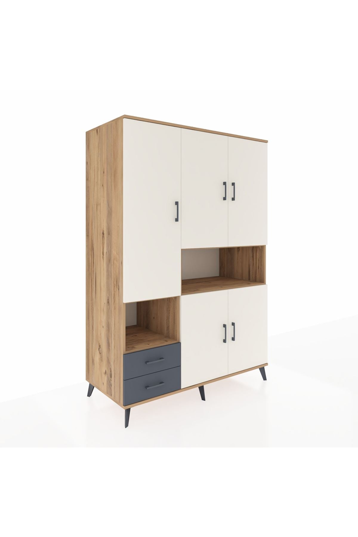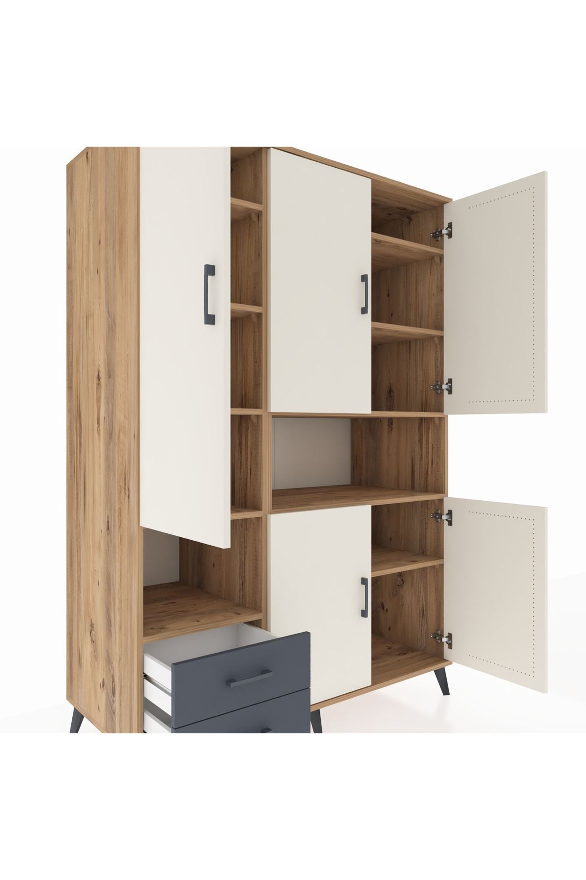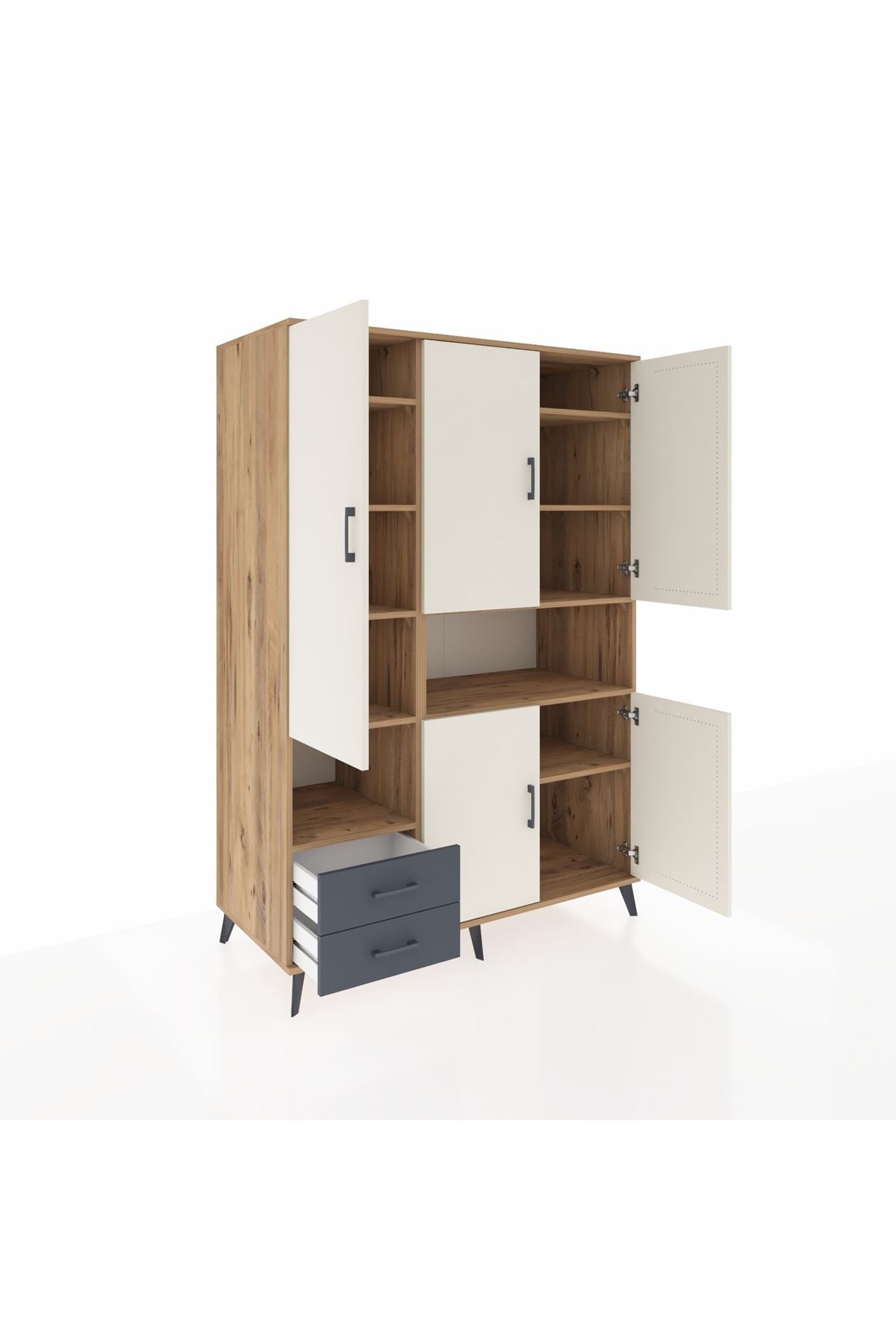 Kronos Dolap 10 Raflı 2 Çekmeceli 5 Kapaklı 132x59x195 Çam-Aytaşı/Antrasit