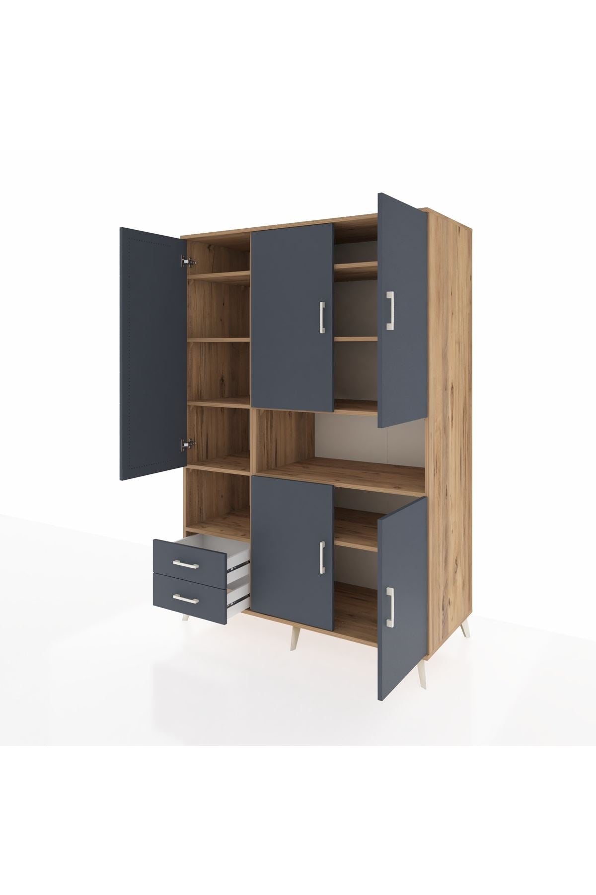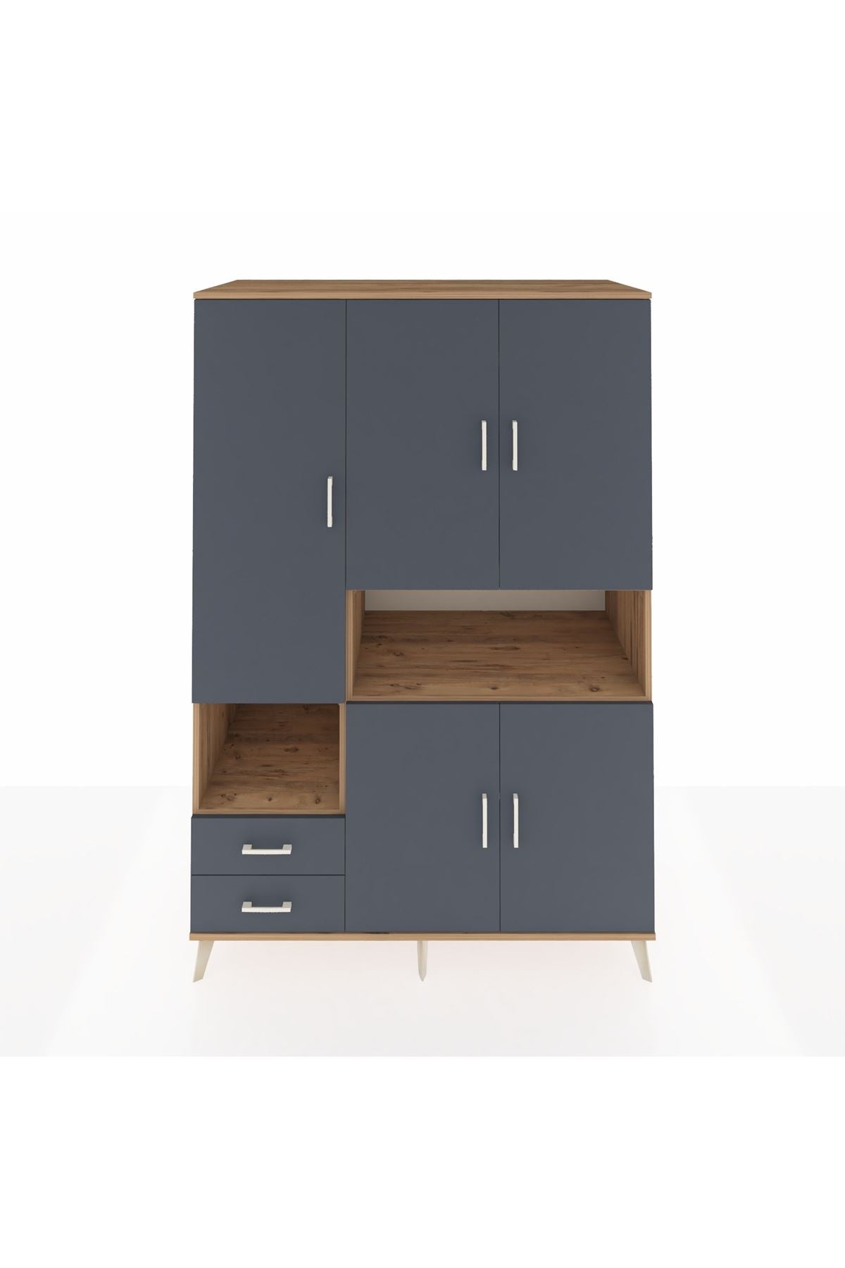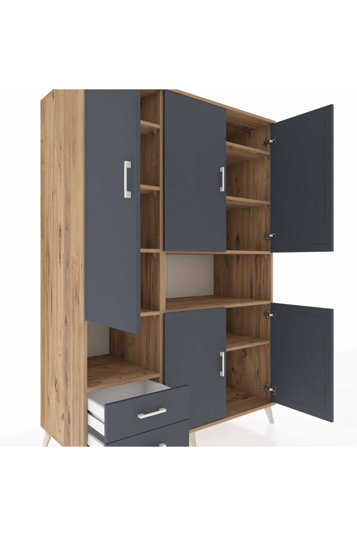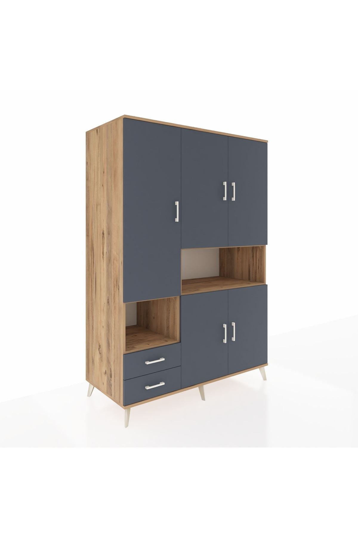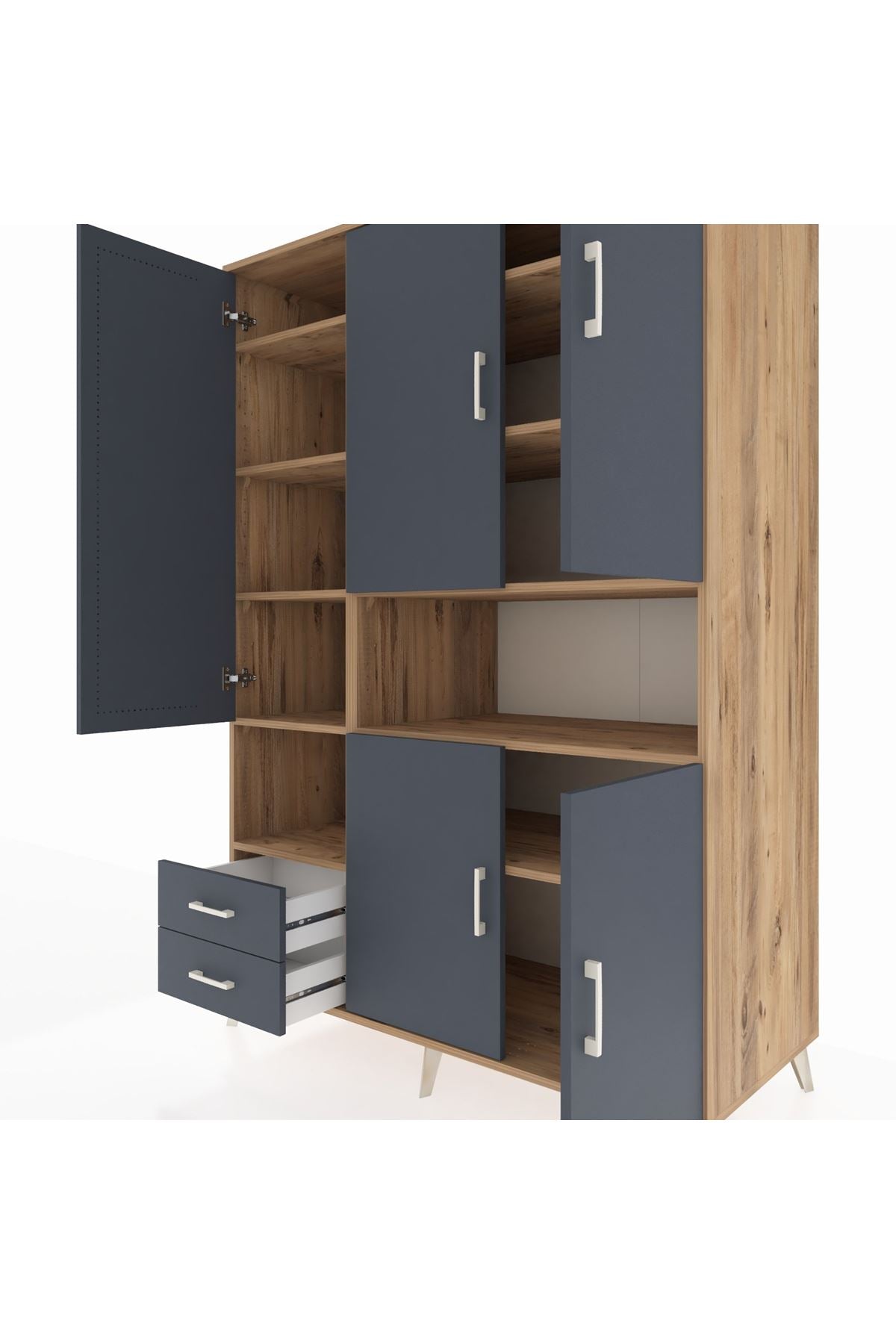 Kronos Dolap 10 Raflı 2 Çekmeceli 5 Kapaklı 132x59x195 Çam-Antrasit/Antrasit