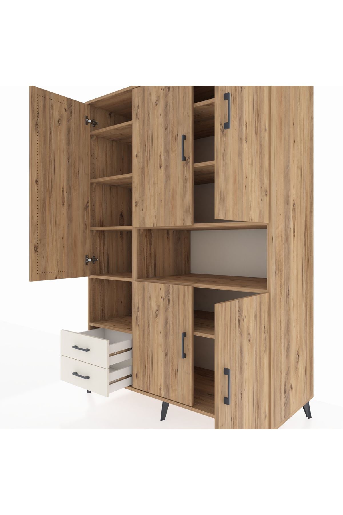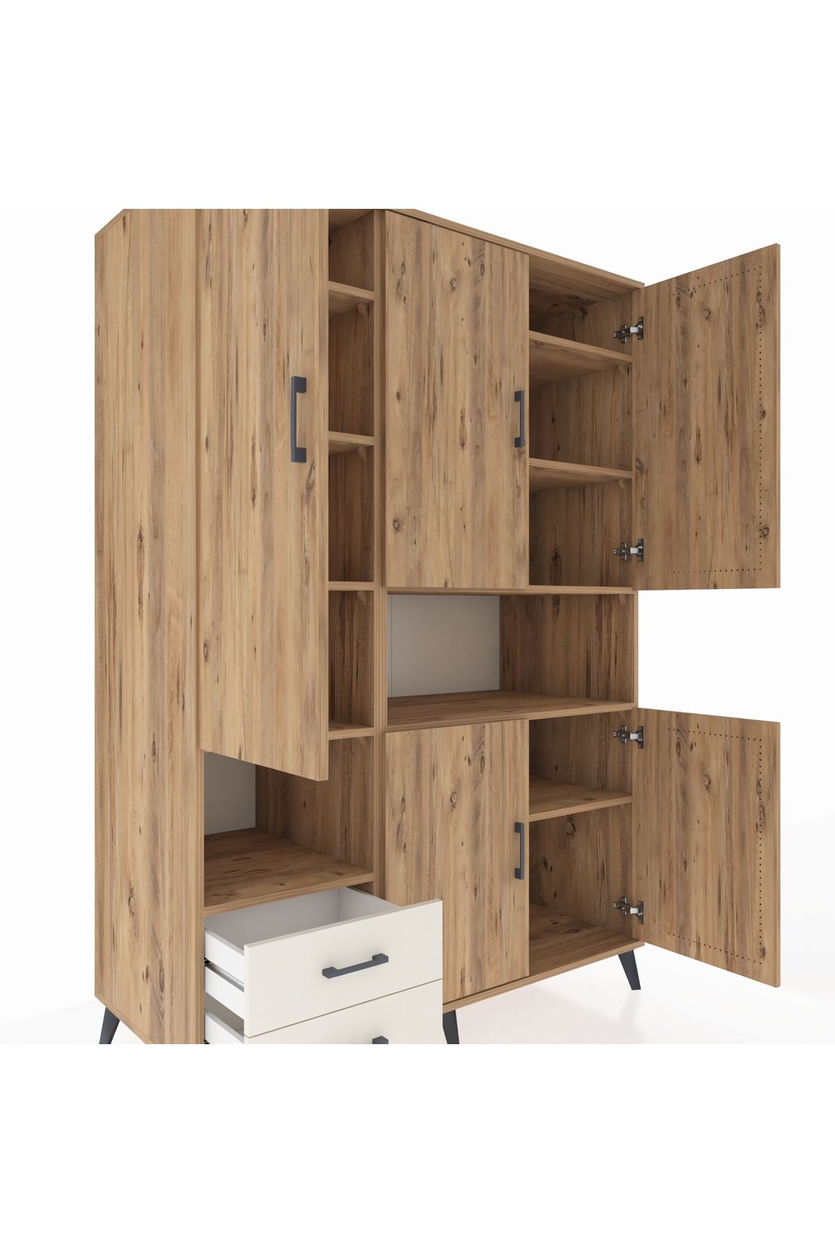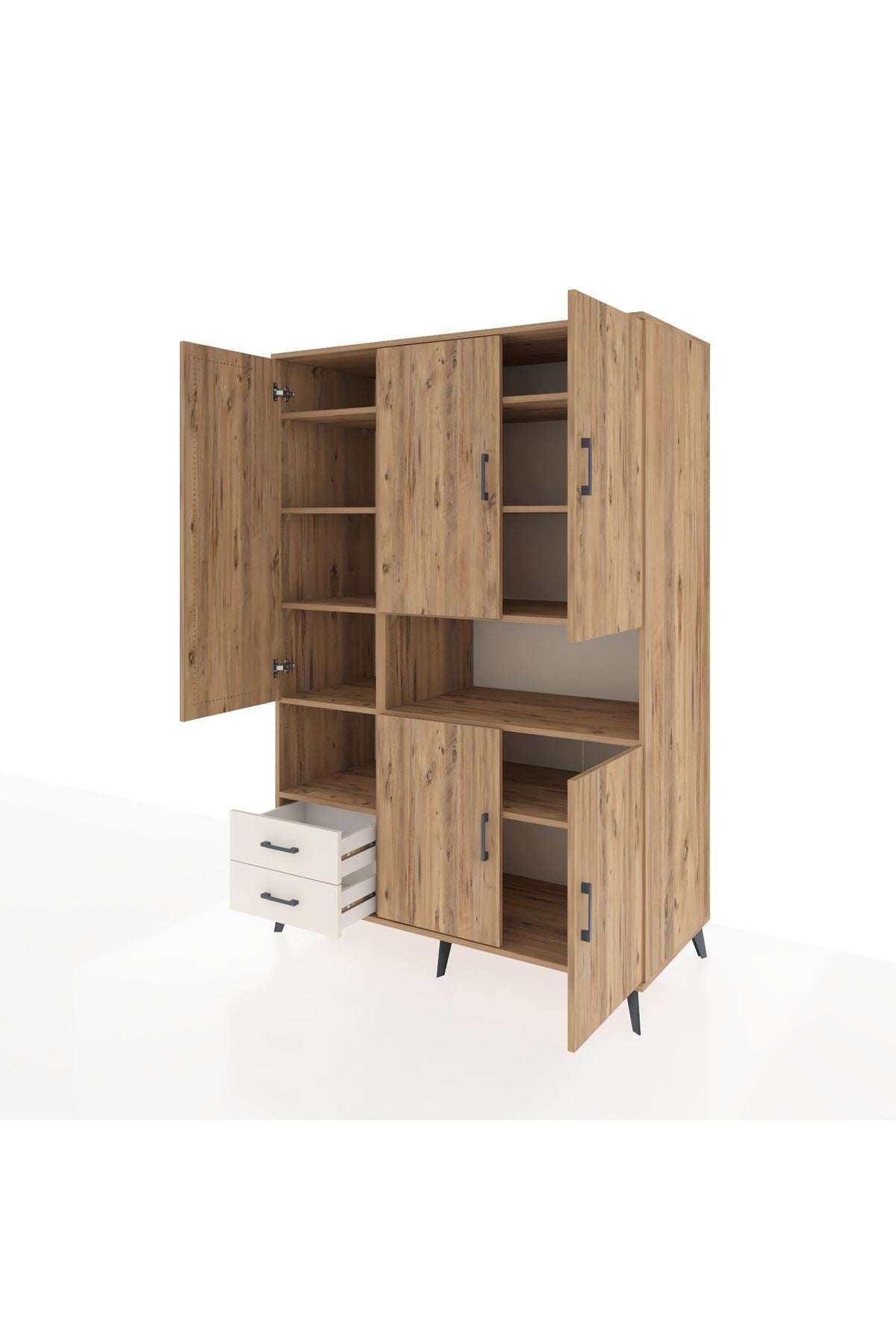 Kronos Dolap 10 Raflı 2 Çekmeceli 5 Kapaklı 132x59x195 Çam-Çam/Aytaşı