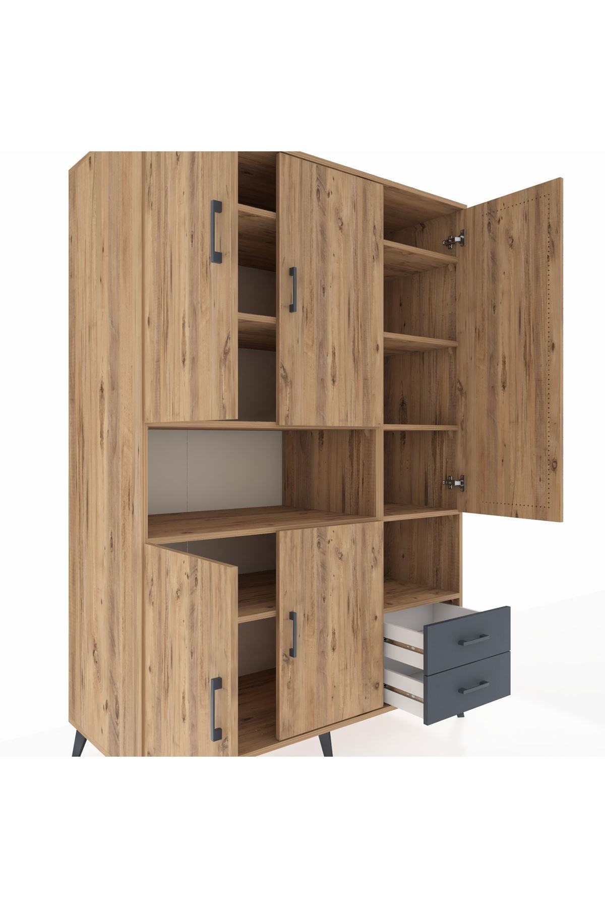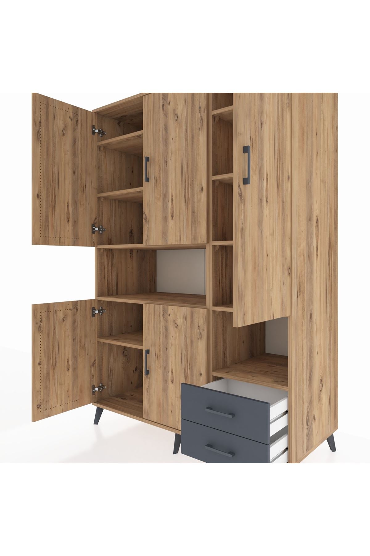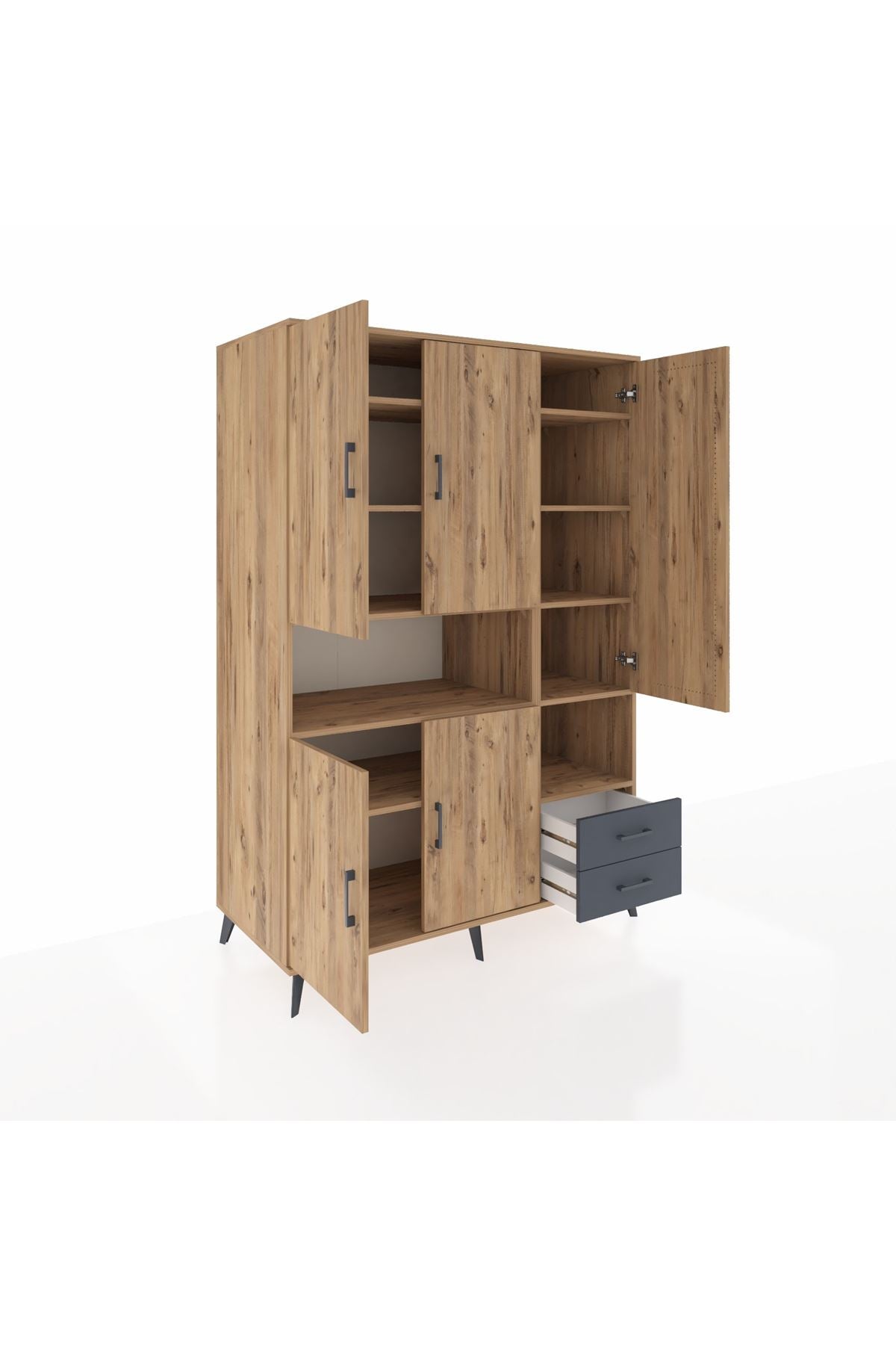 Kronos Dolap 10 Raflı 2 Çekmeceli 5 Kapaklı 132x59x195 Çam-Çam/Antrasit
