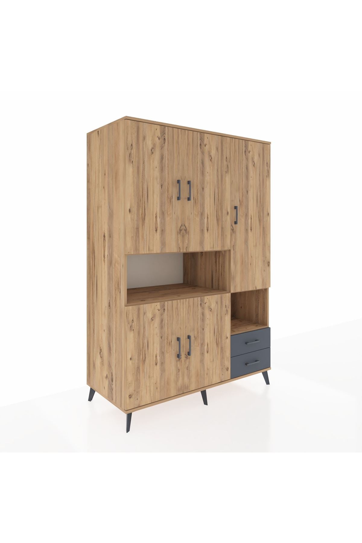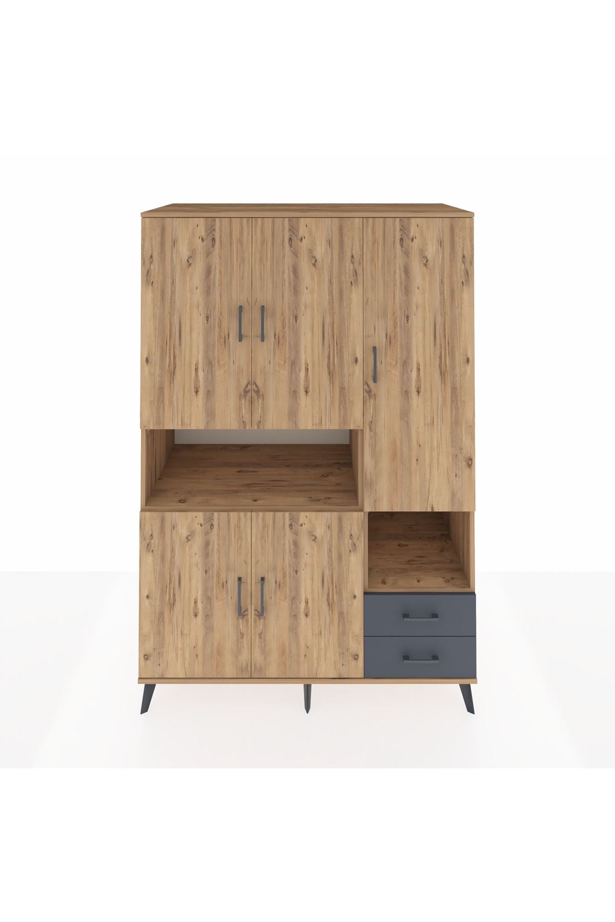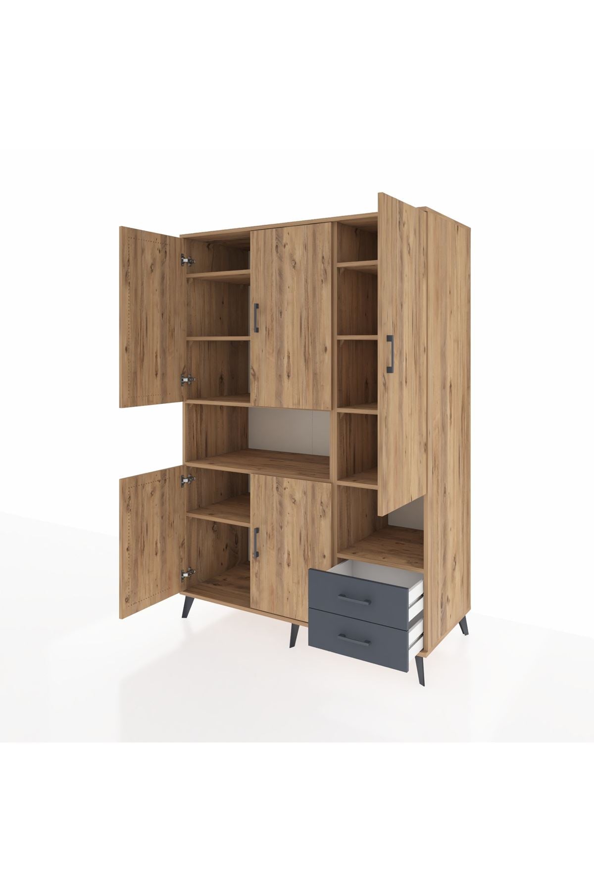 Kronos Dolap 10 Raflı 2 Çekmeceli 5 Kapaklı 132x59x195 Çam-Çam/Antrasit