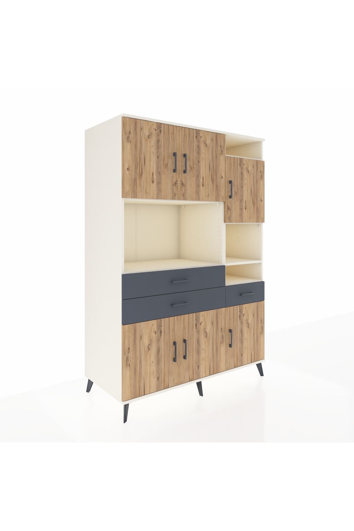 Kronos Dolap 10 Raflı 3 Çekmeceli 6 Kapaklı 132x59x195 Aytaşı-Çam/Antrasit