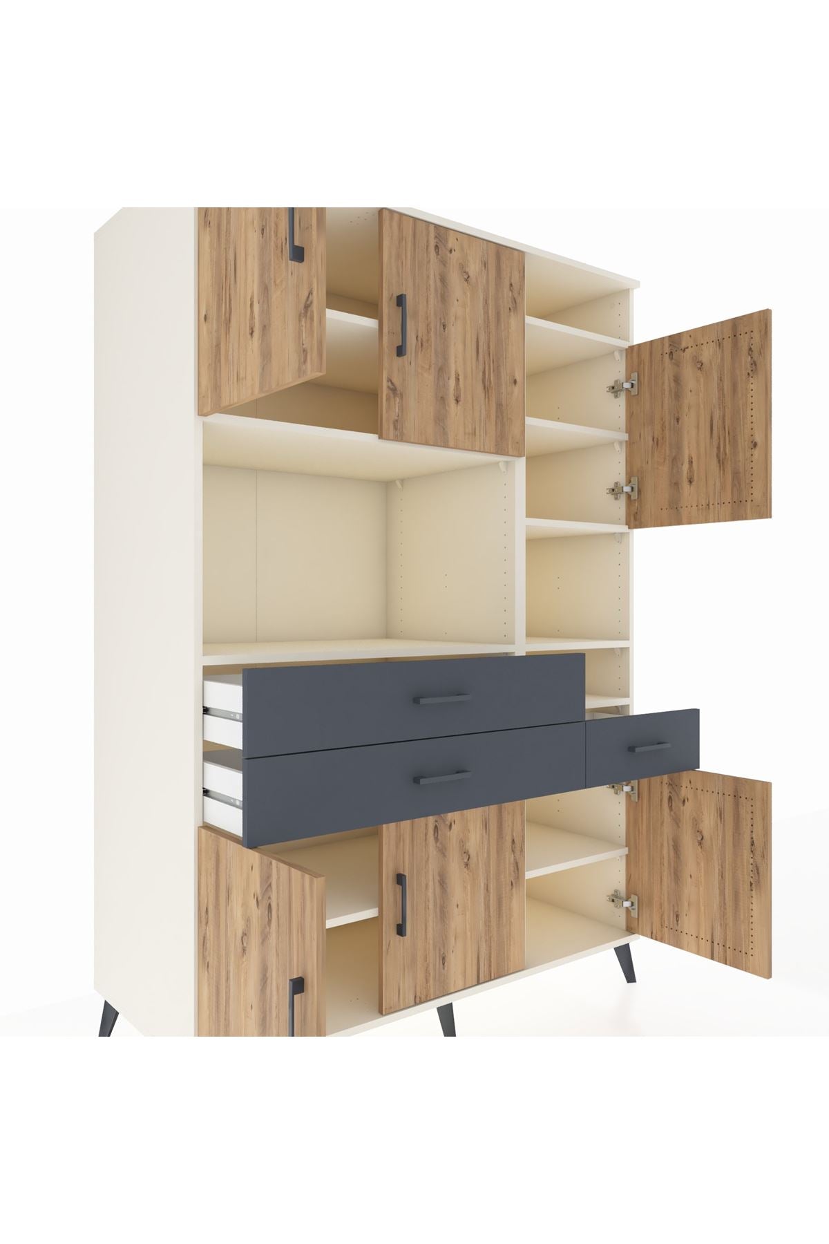 Artemis Koleksiyonu’nun “Kronos – Zaman” serisinden ilham alan bu çok amaçlı dolap, zamansız şıklığı ve maksimum depolama alanını bir araya getiriyor. ⏳ 10 geniş rafı, 3 kullanışlı çekmecesi ve 6 kapaklı bölmesi ile her şeyin yerli yerinde olmasını sağlıyor.