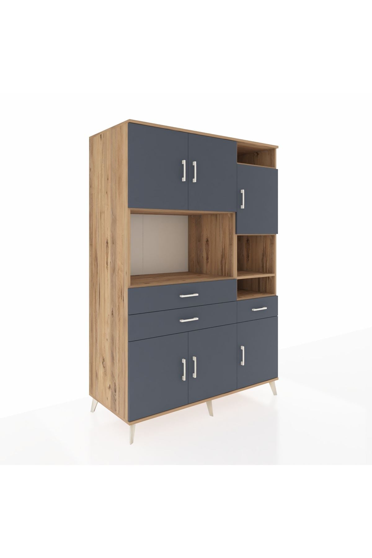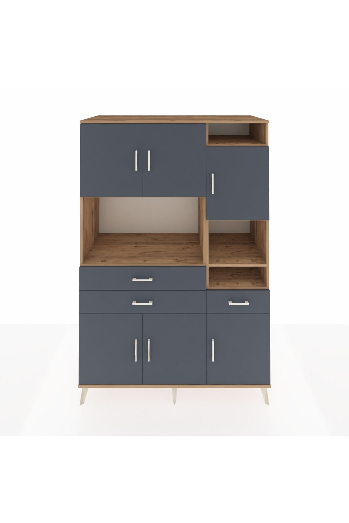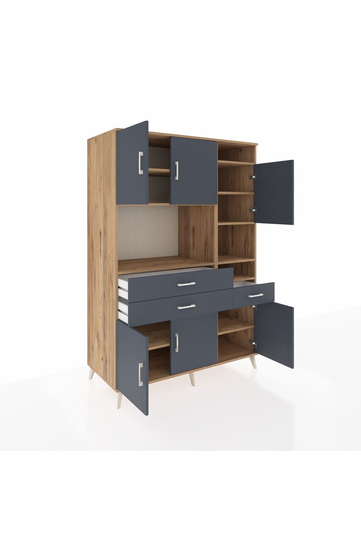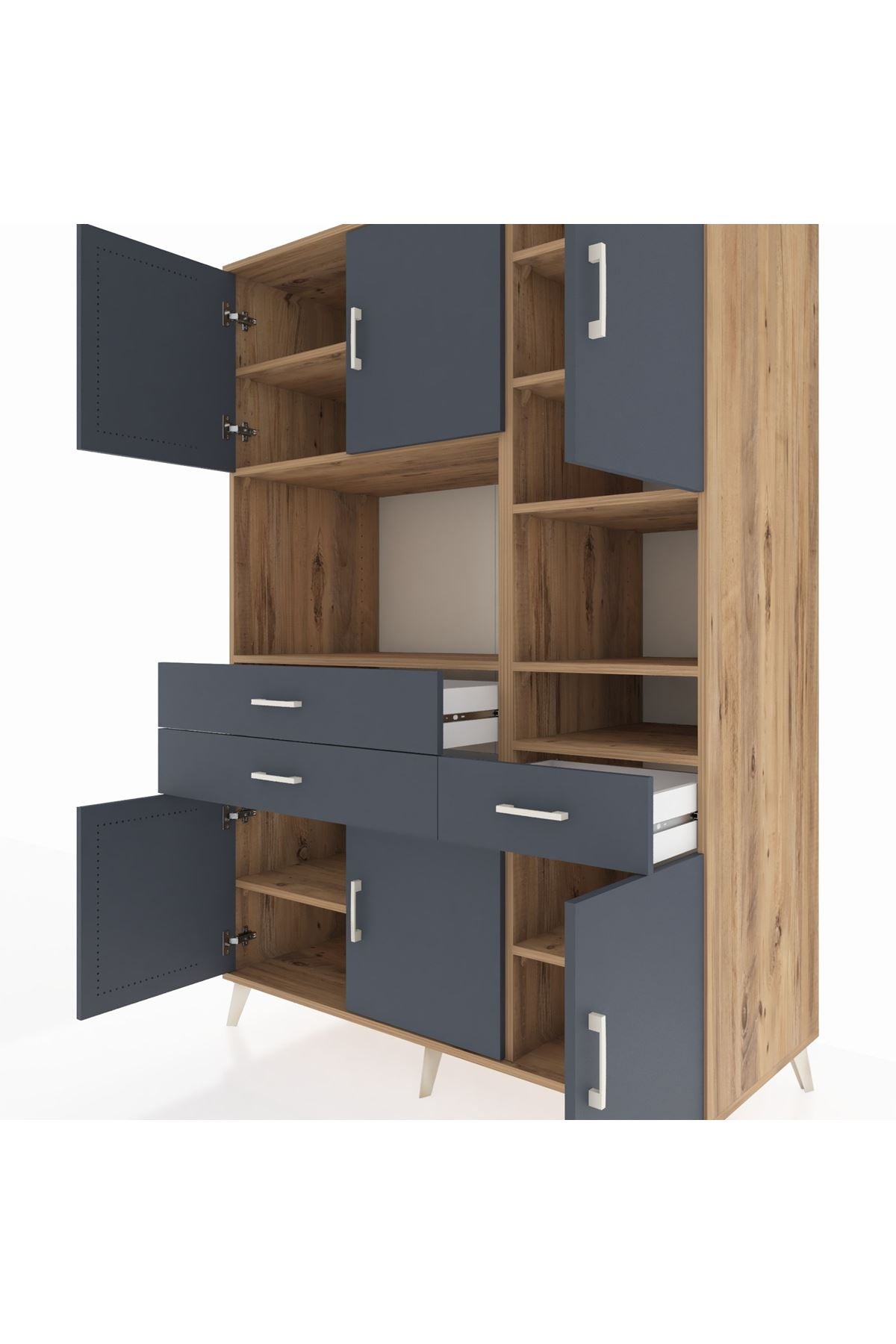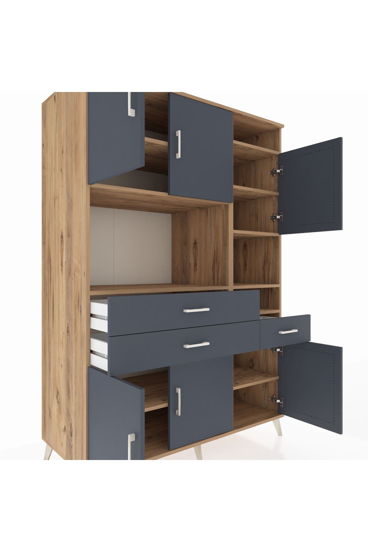 Kronos Dolap 10 Raflı 3 Çekmeceli 6 Kapaklı 132x59x195 Çam-Antrasit/Antrasit