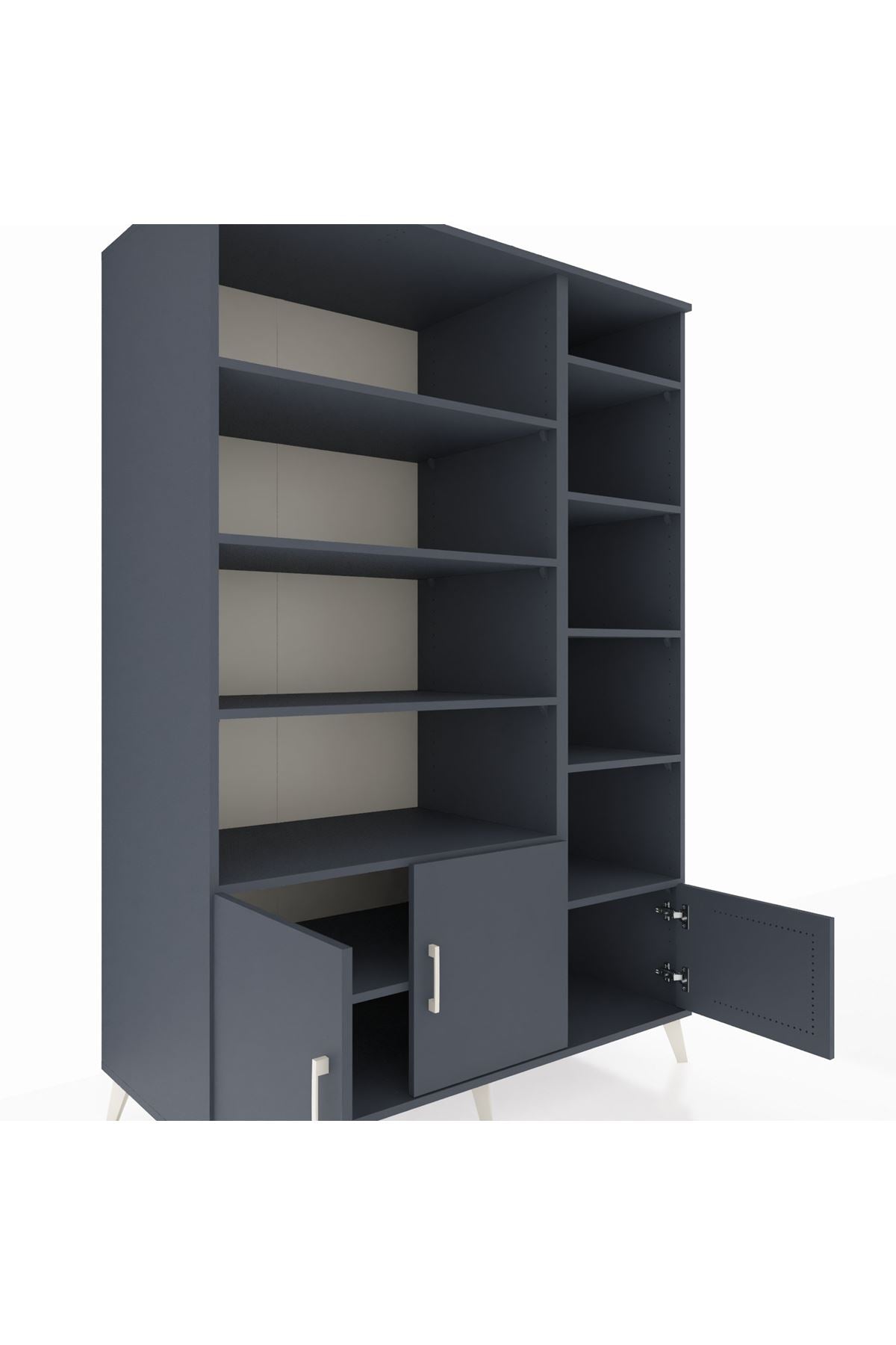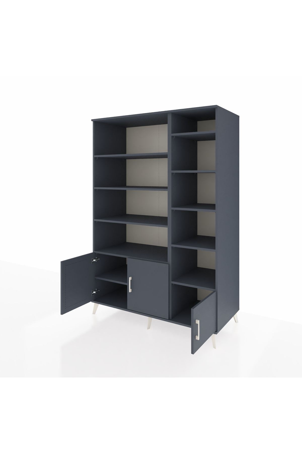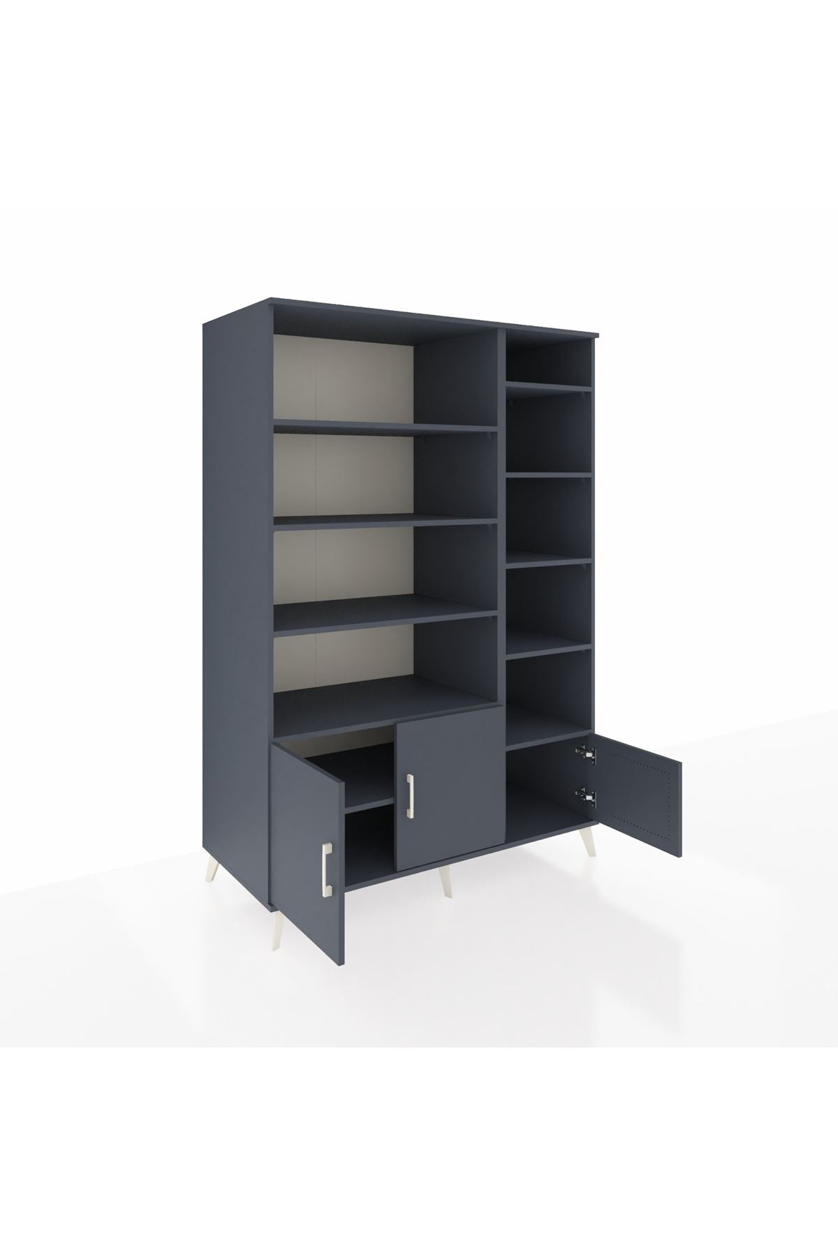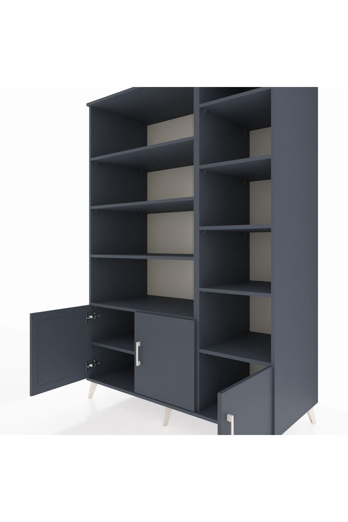 🌞 Kronos Dolap 10 Raflı 3 Kapaklı 132x59x195 Antrasit-Antrasit/Antrasit