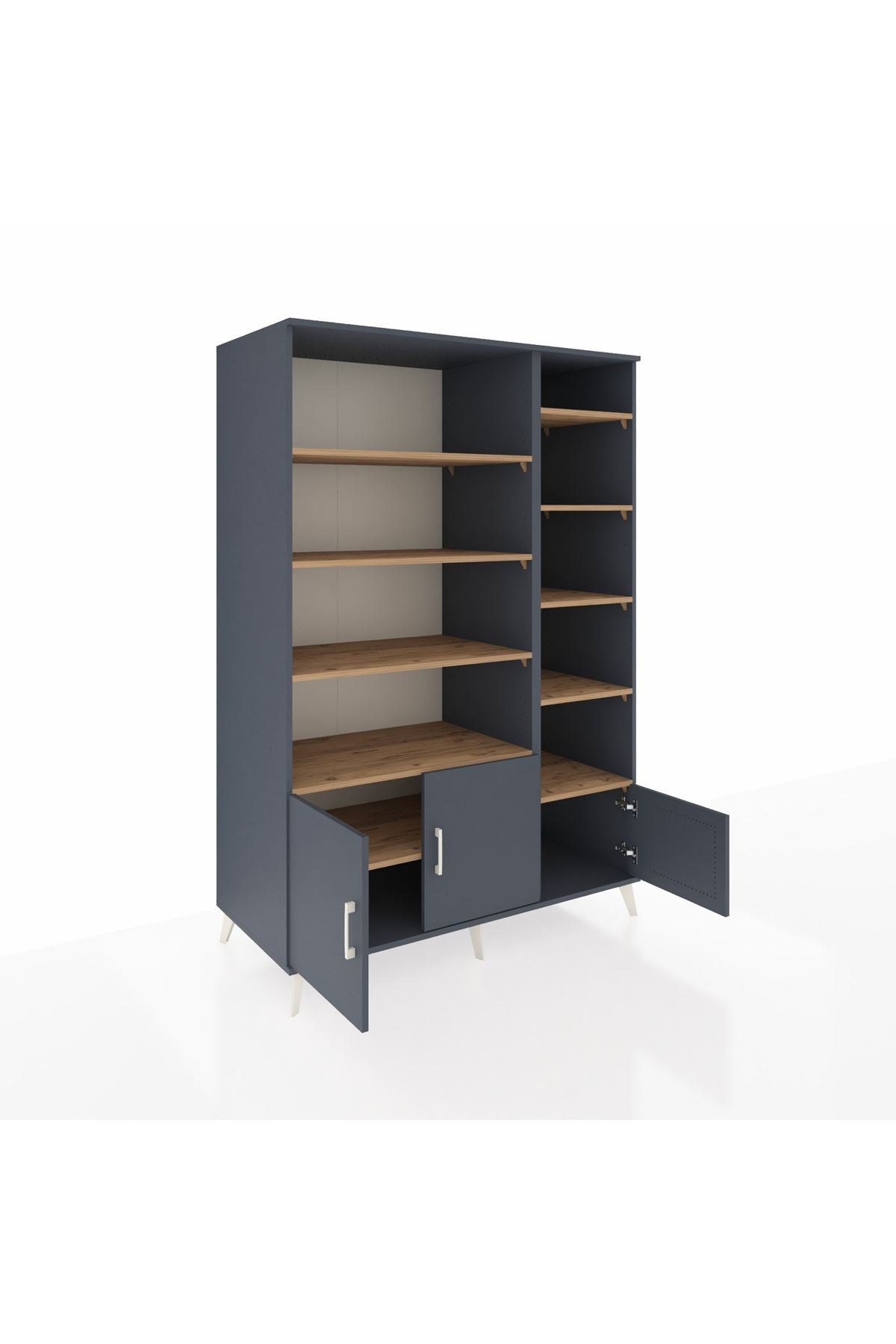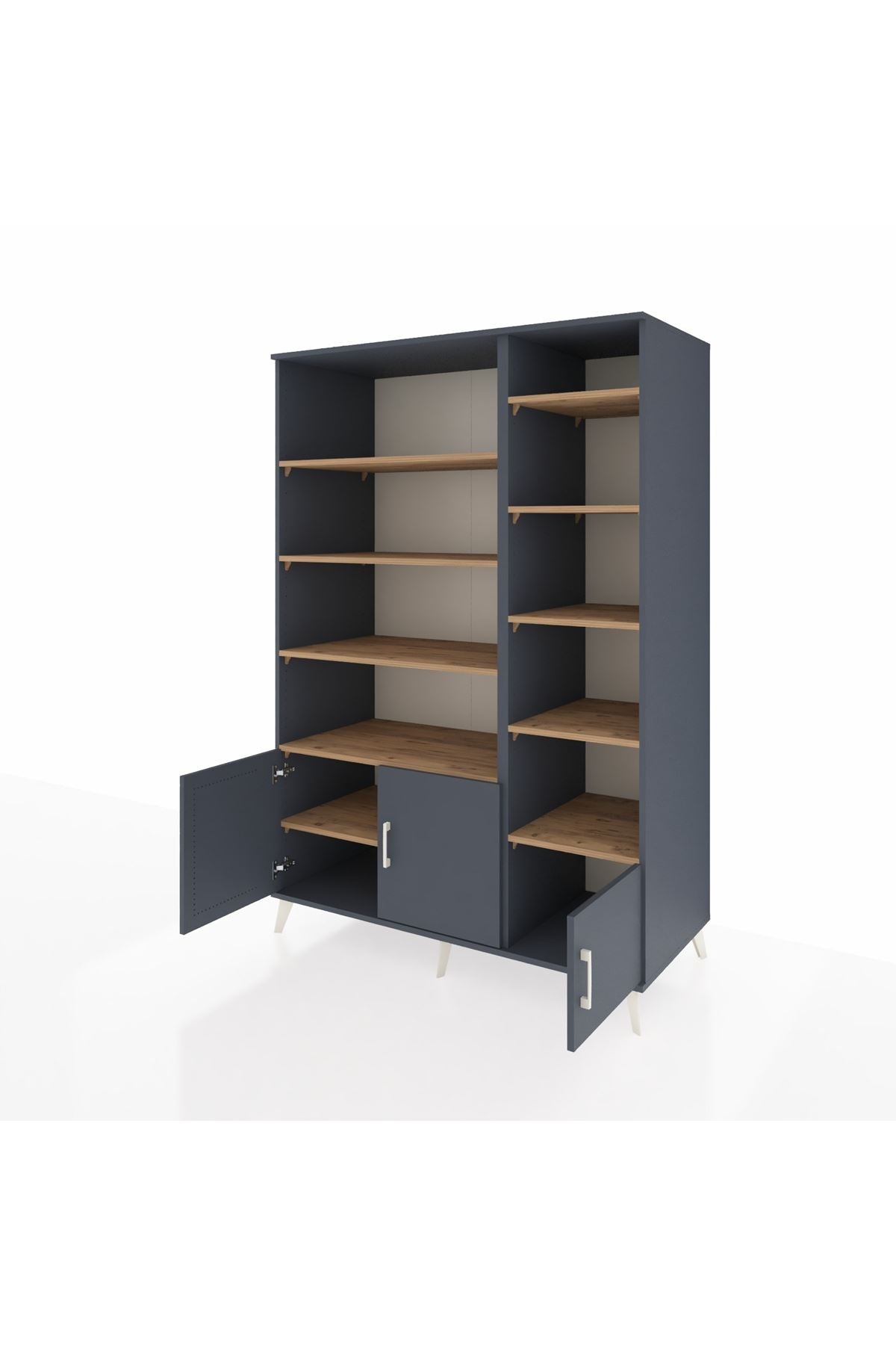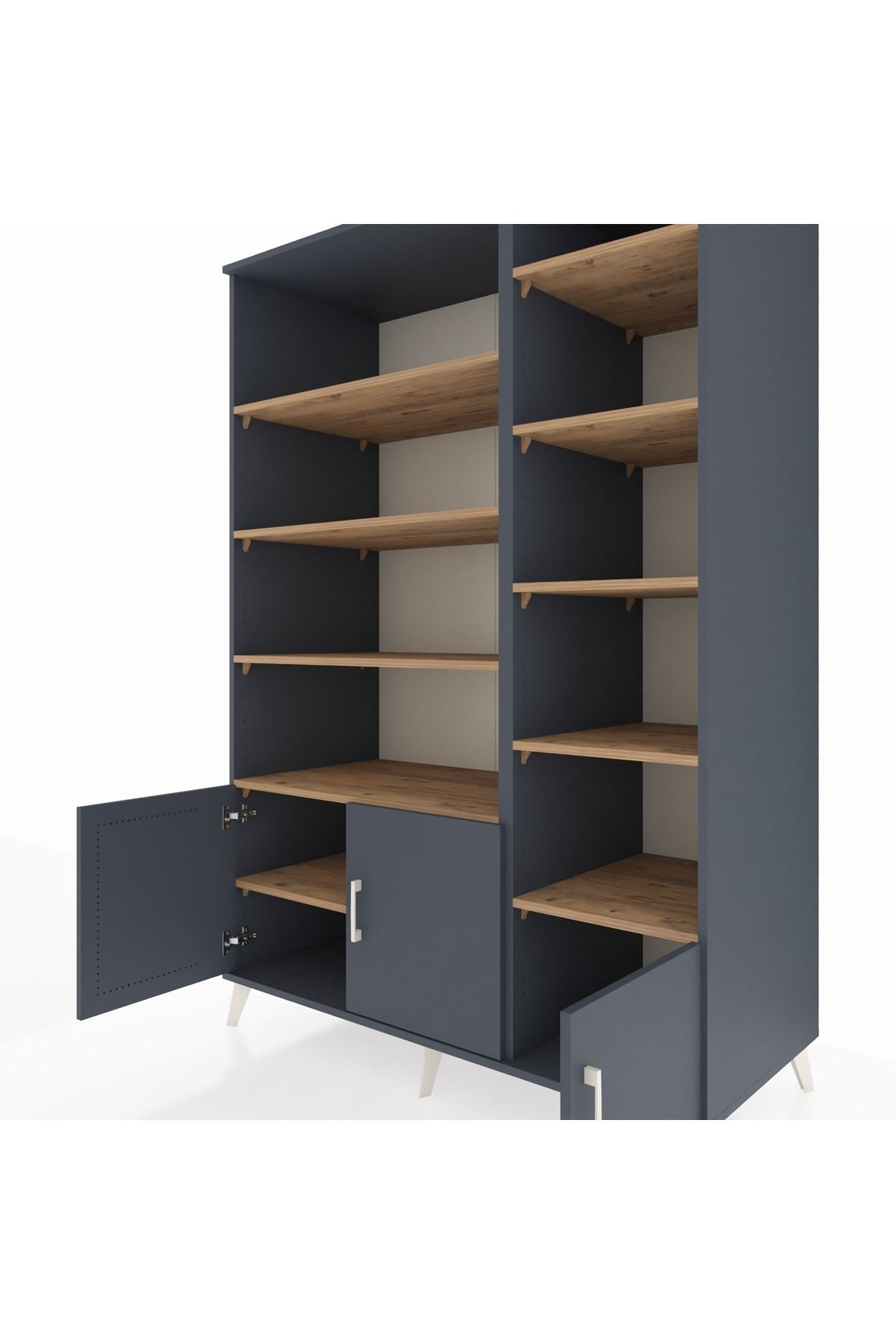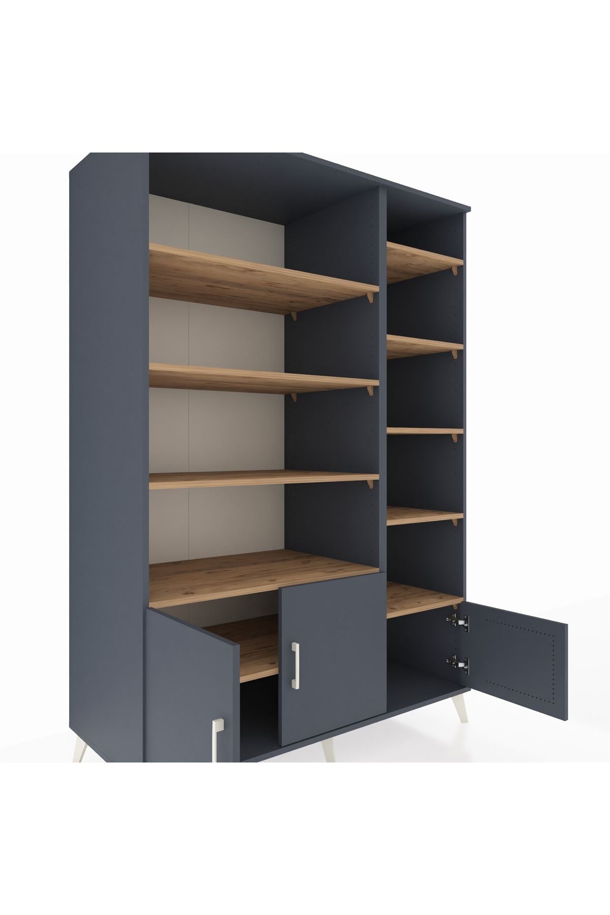 Geniş ölçüleriyle (132x59x195 cm) hem büyük aileler hem de ofisler için ideal olan bu çok amaçlı dolap, toplam 10 rafı ve 3 geniş kapağı ile eşyalarınızı mükemmel şekilde organize eder. Antrasit gövdesi ve atlas çam kapak detaylarıyla modern dekorasyonlara uyum sağlar; bulunduğu ortama sofistike bir dokunuş katar.🖤🌲