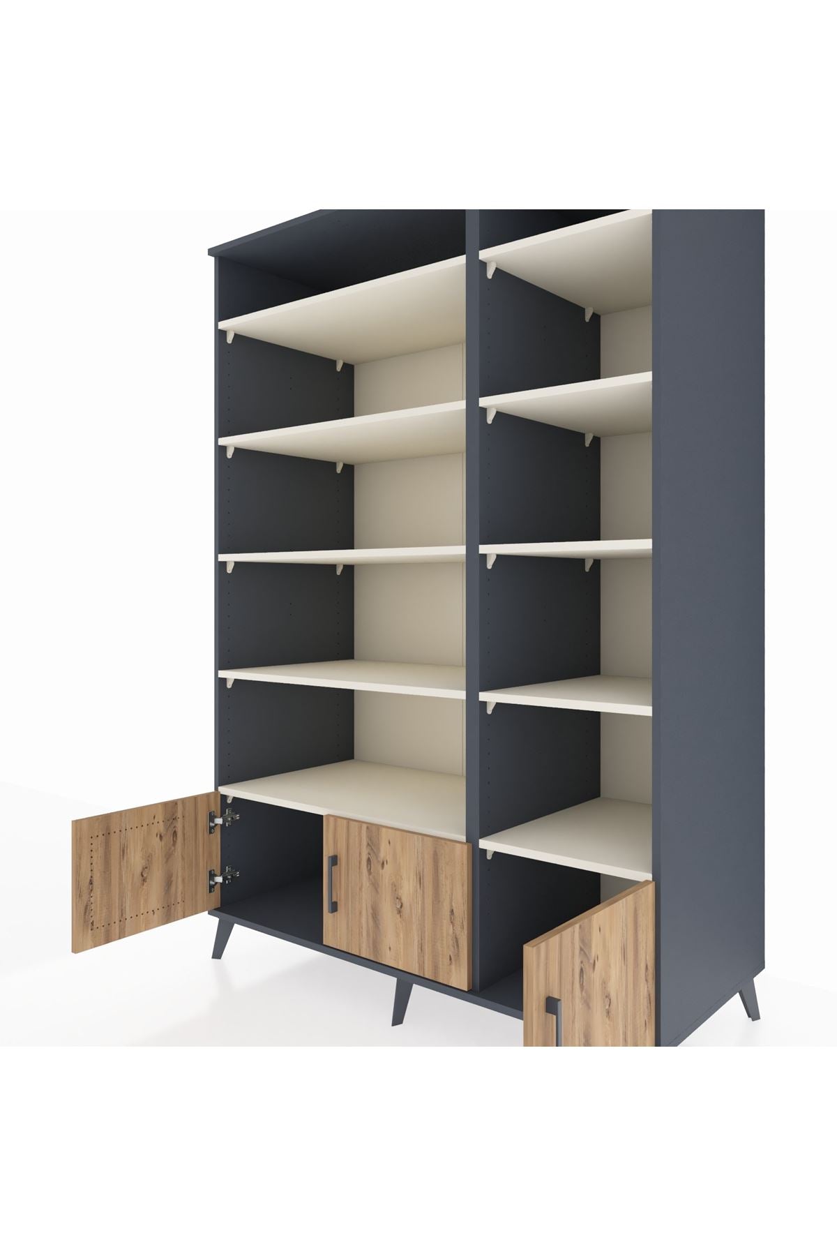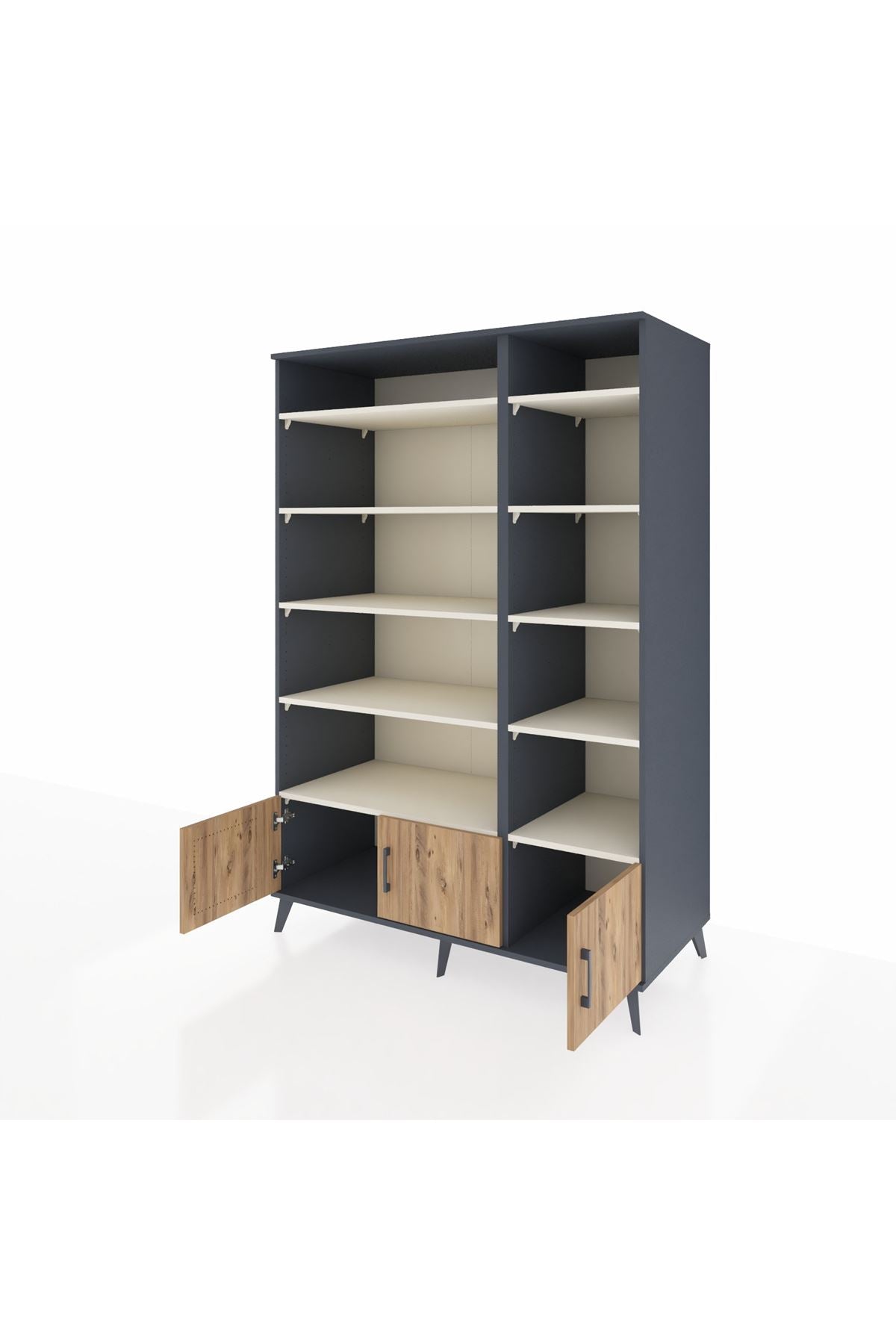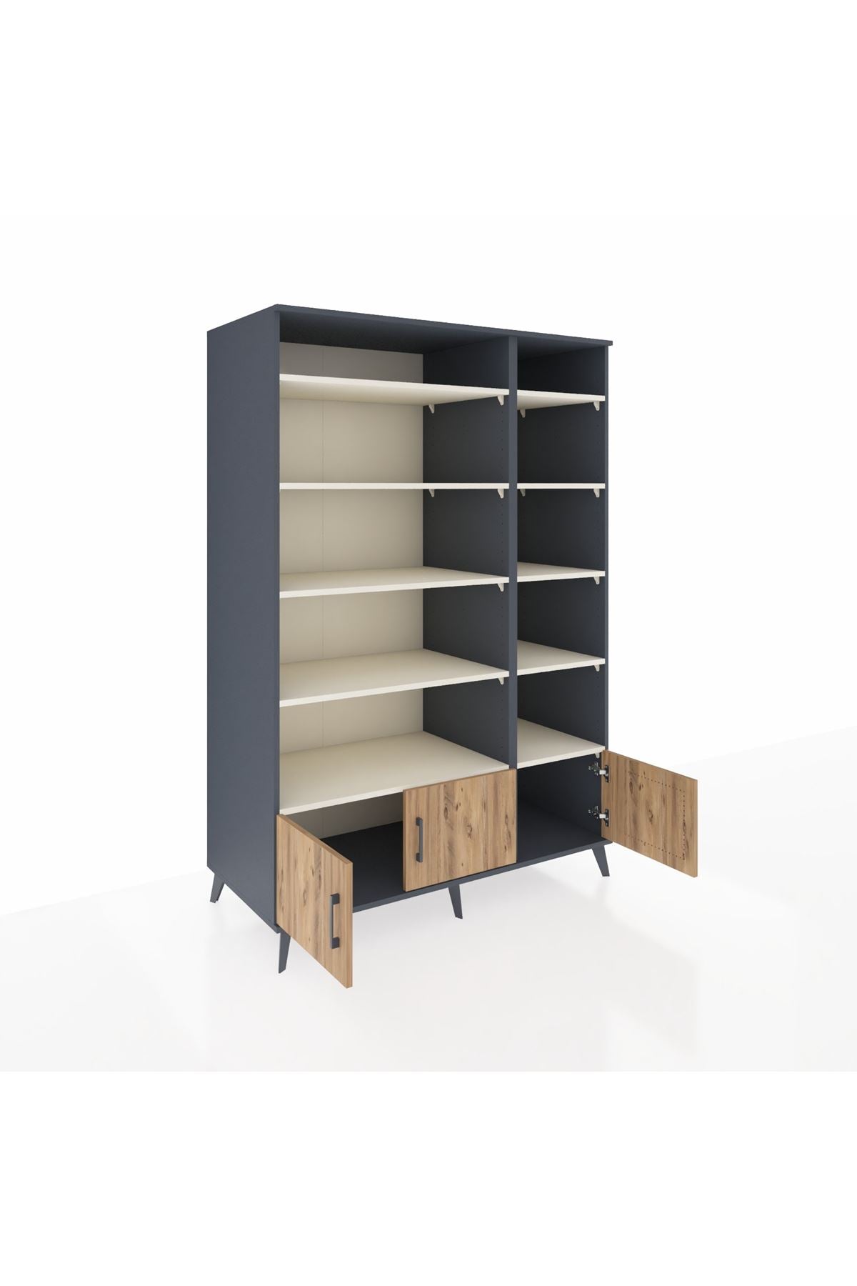 Kronos Dolap 10 Raflı 3 Kapaklı 132x59x195 Antrasit-Çam/Aytaşı