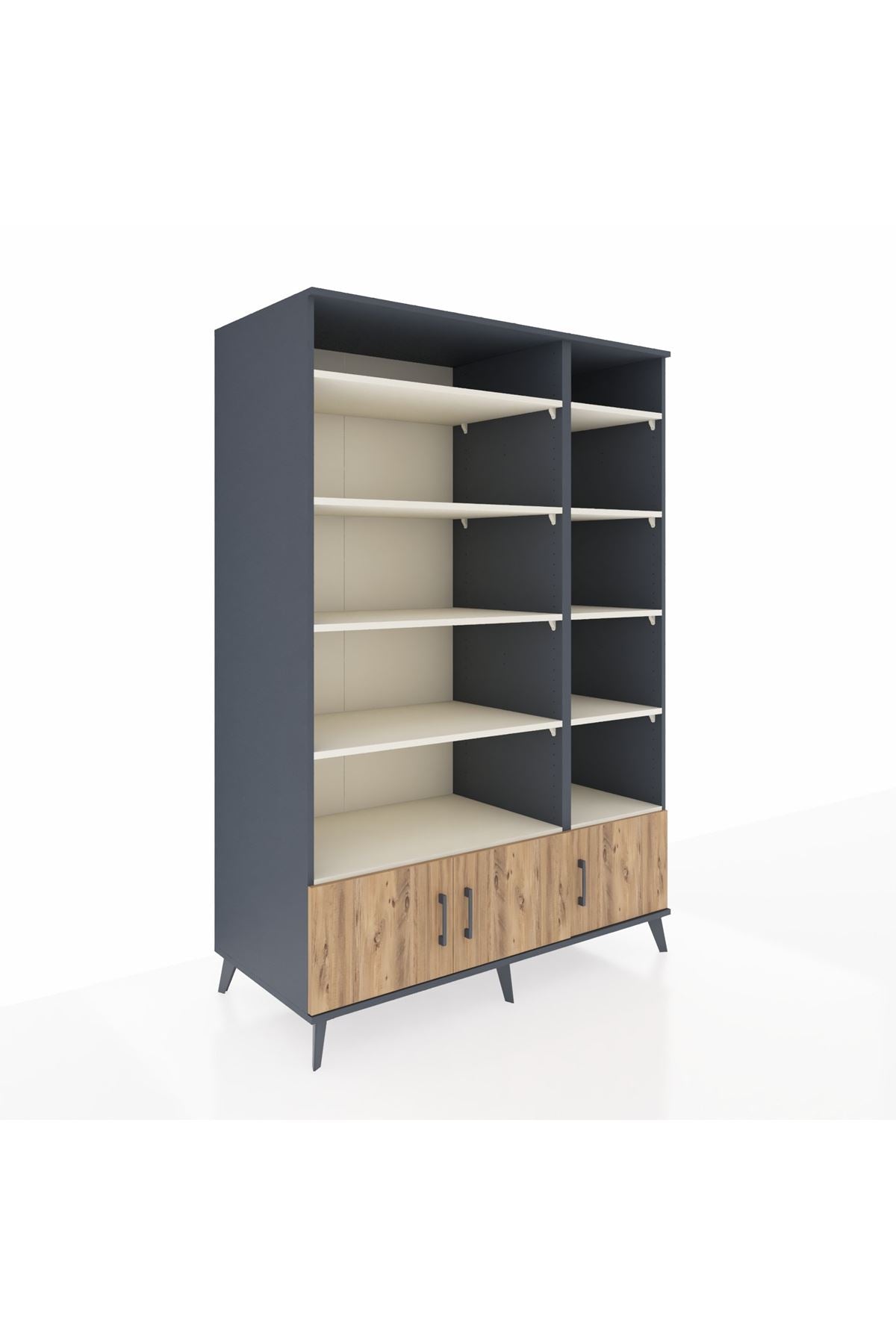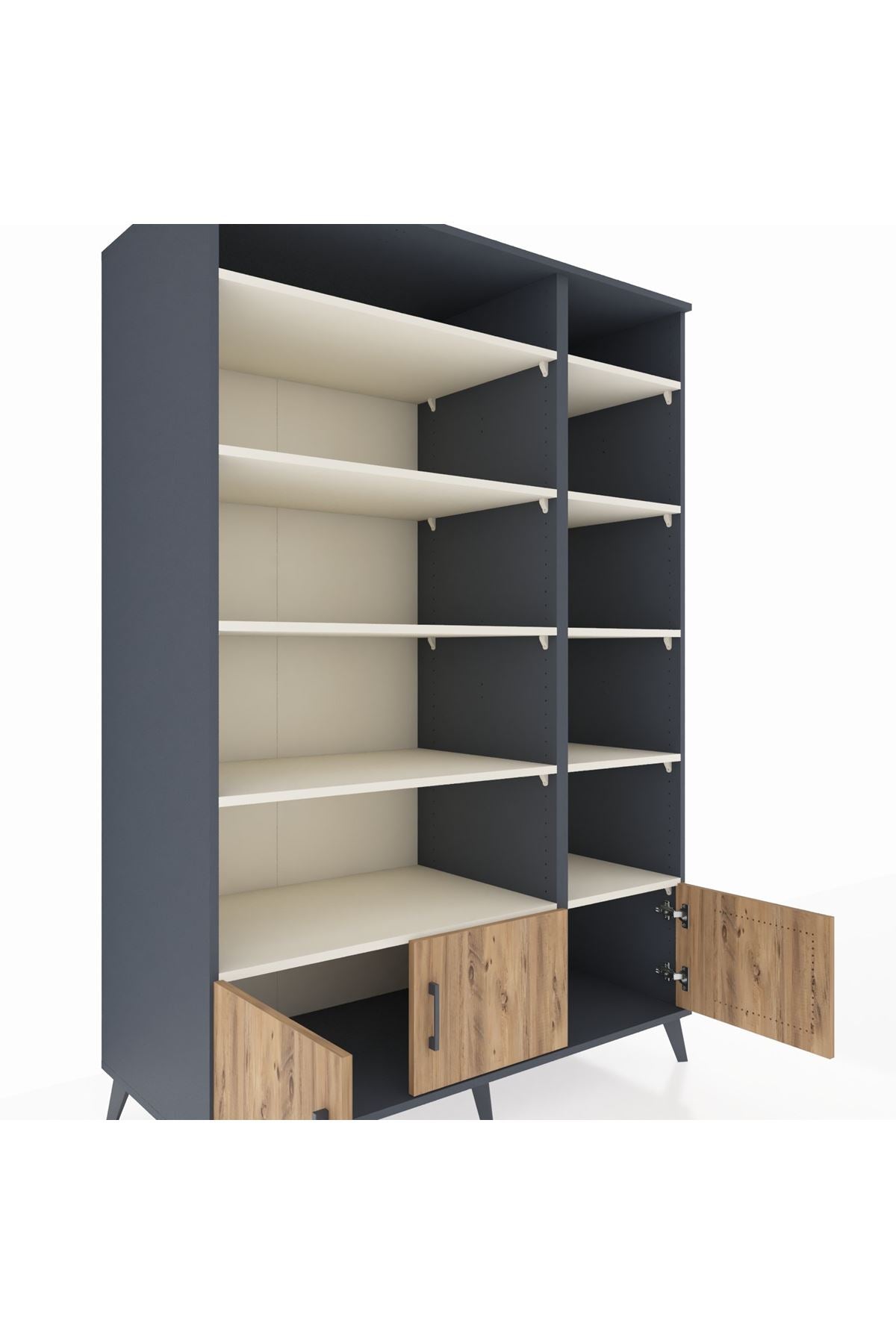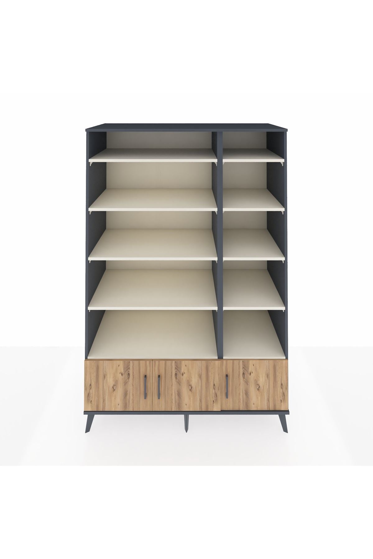 Kronos Dolap 10 Raflı 3 Kapaklı 132x59x195 Antrasit-Çam/Aytaşı