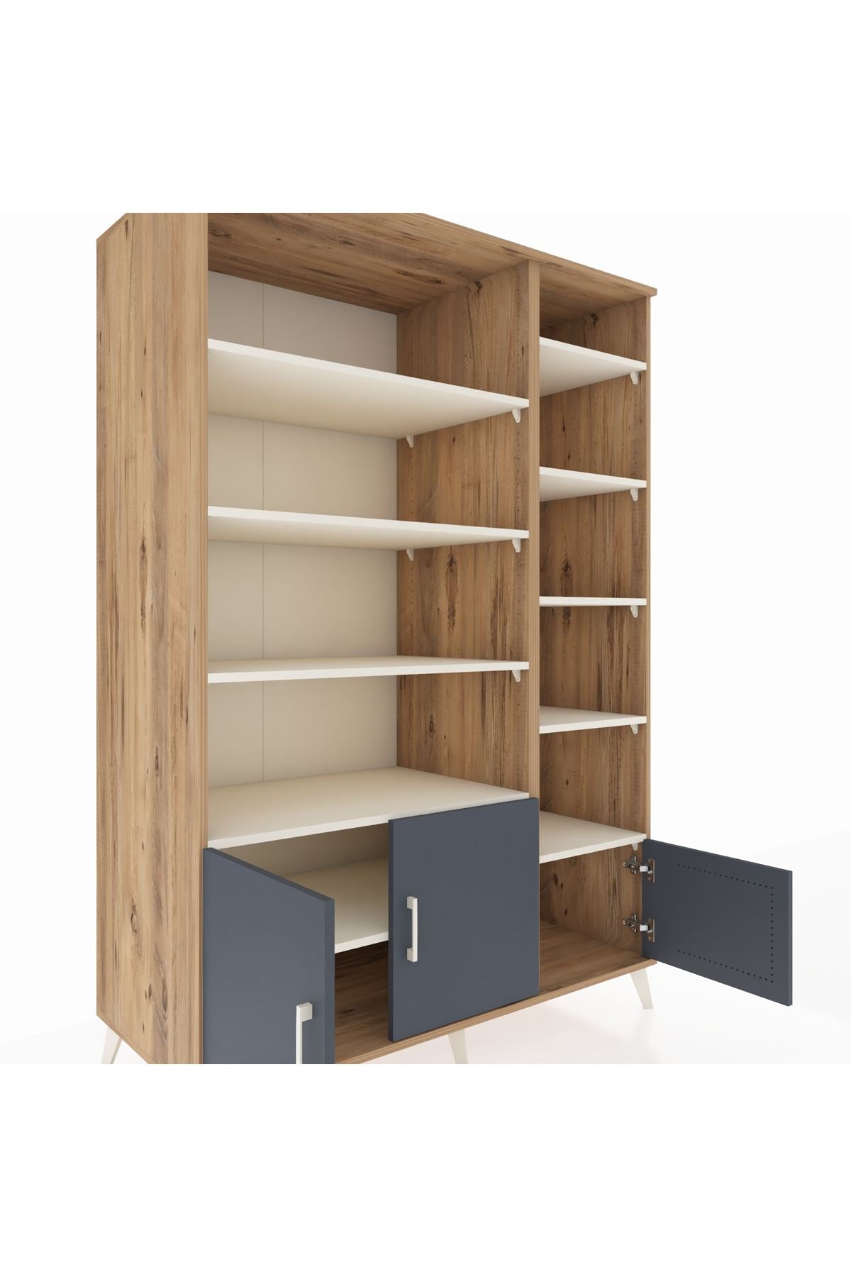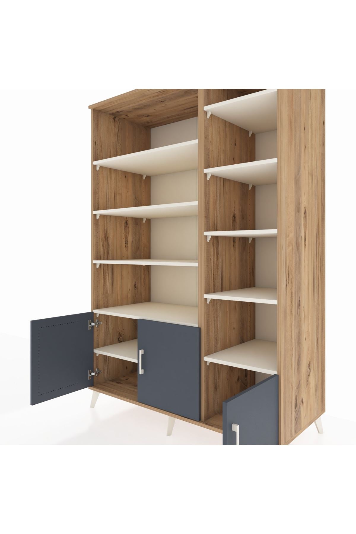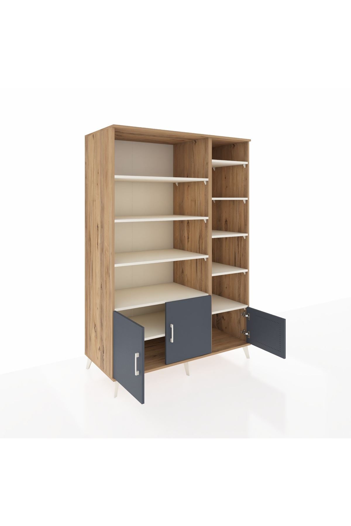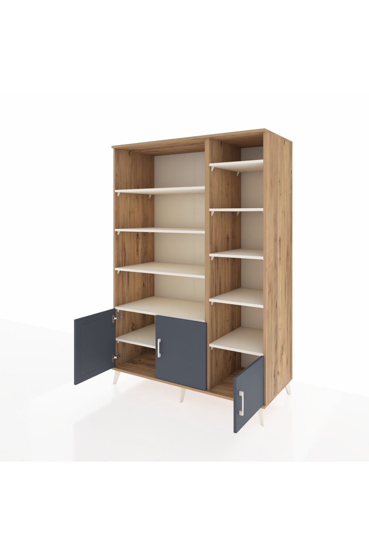 🌞 Kronos Dolap 10 Raflı 3 Kapaklı 132x59x195 Çam-Antrasit/Aytaşı