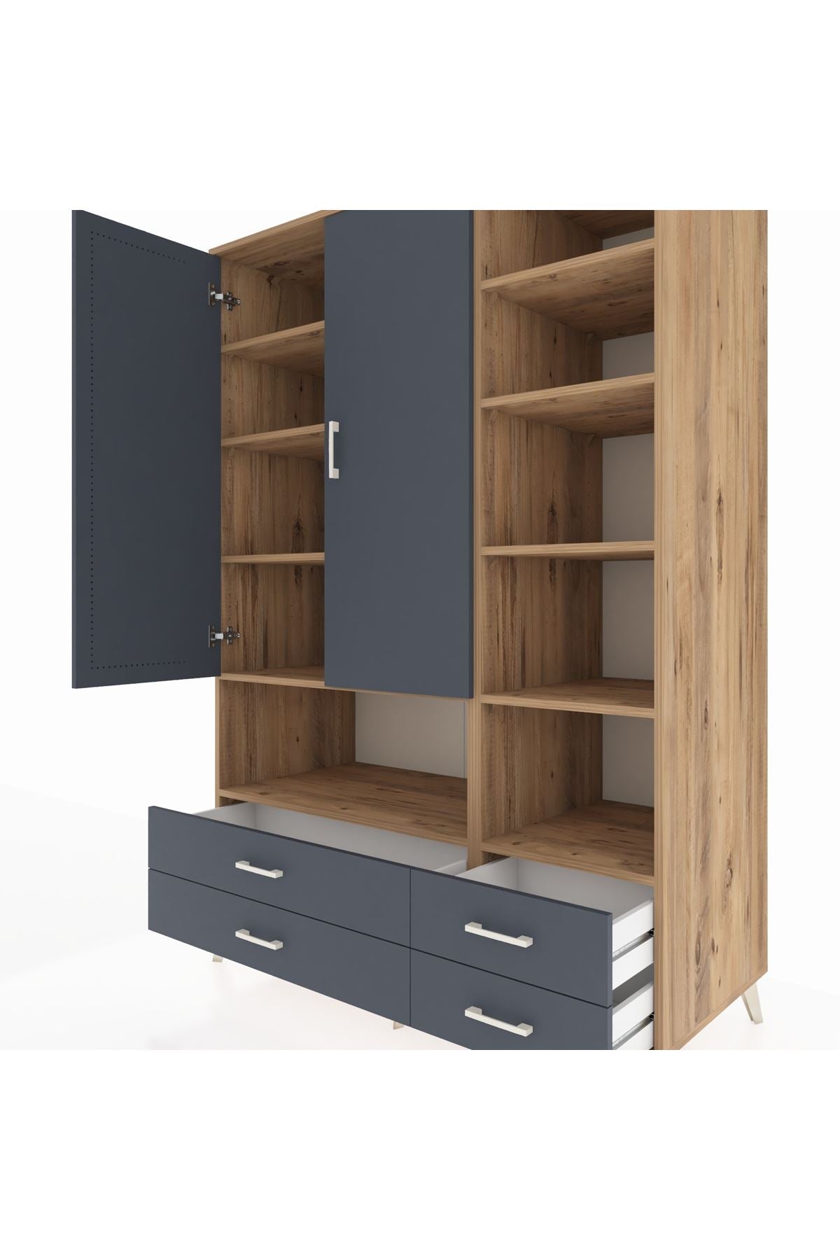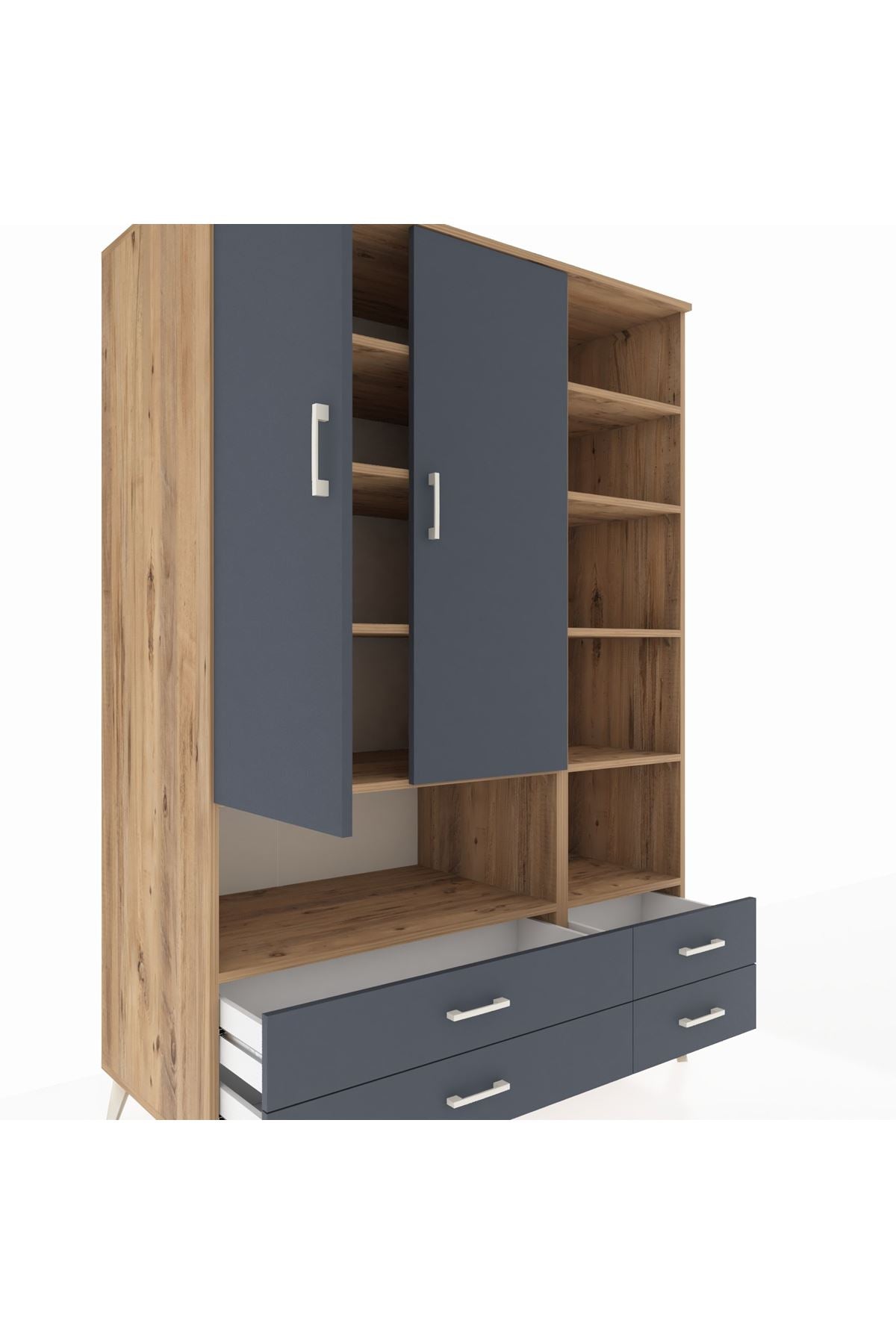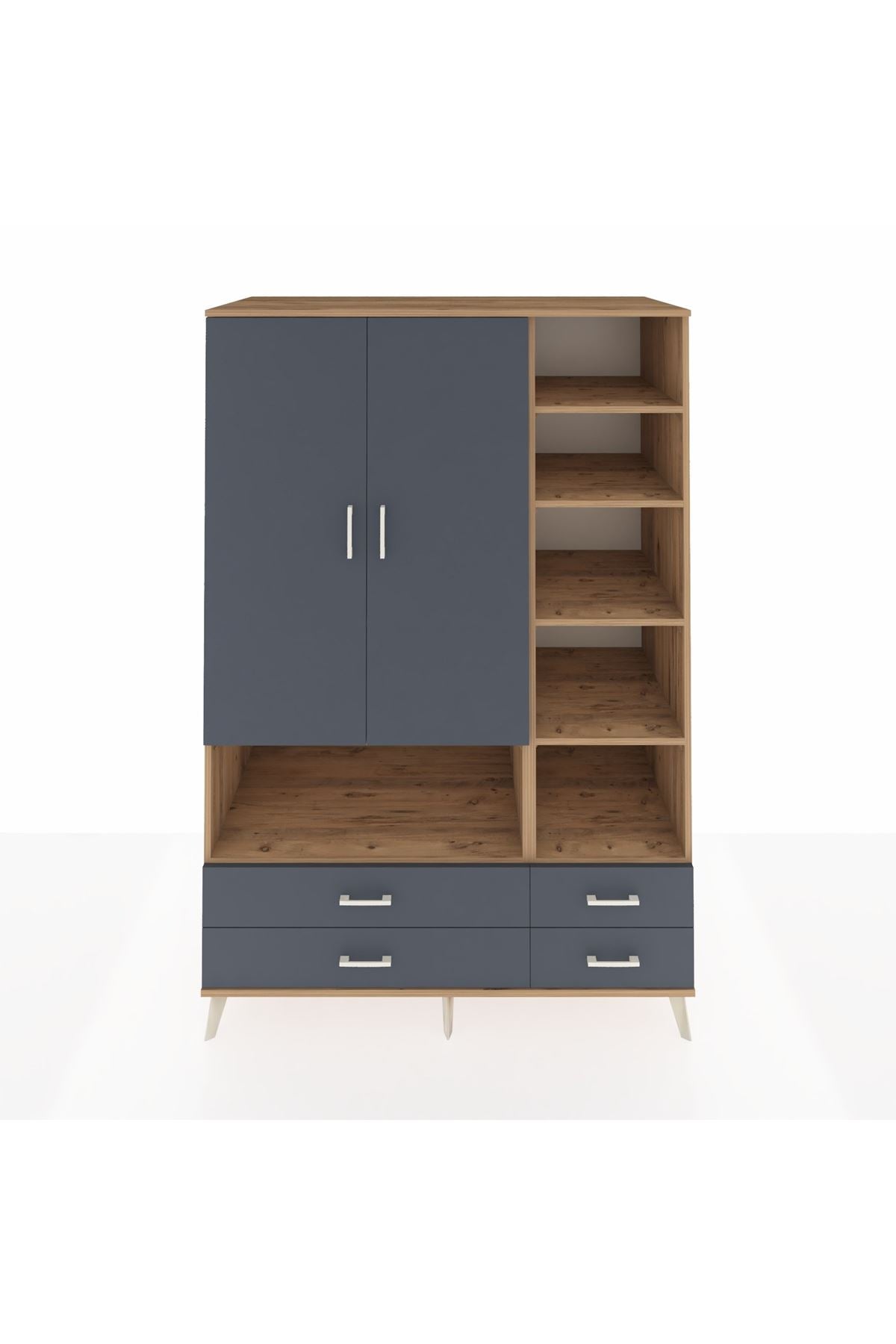 Kronos Dolap 10 Raflı 4 Çekmeceli 2 Kapaklı 132x59x195 Çam-Antrasit/Antrasit