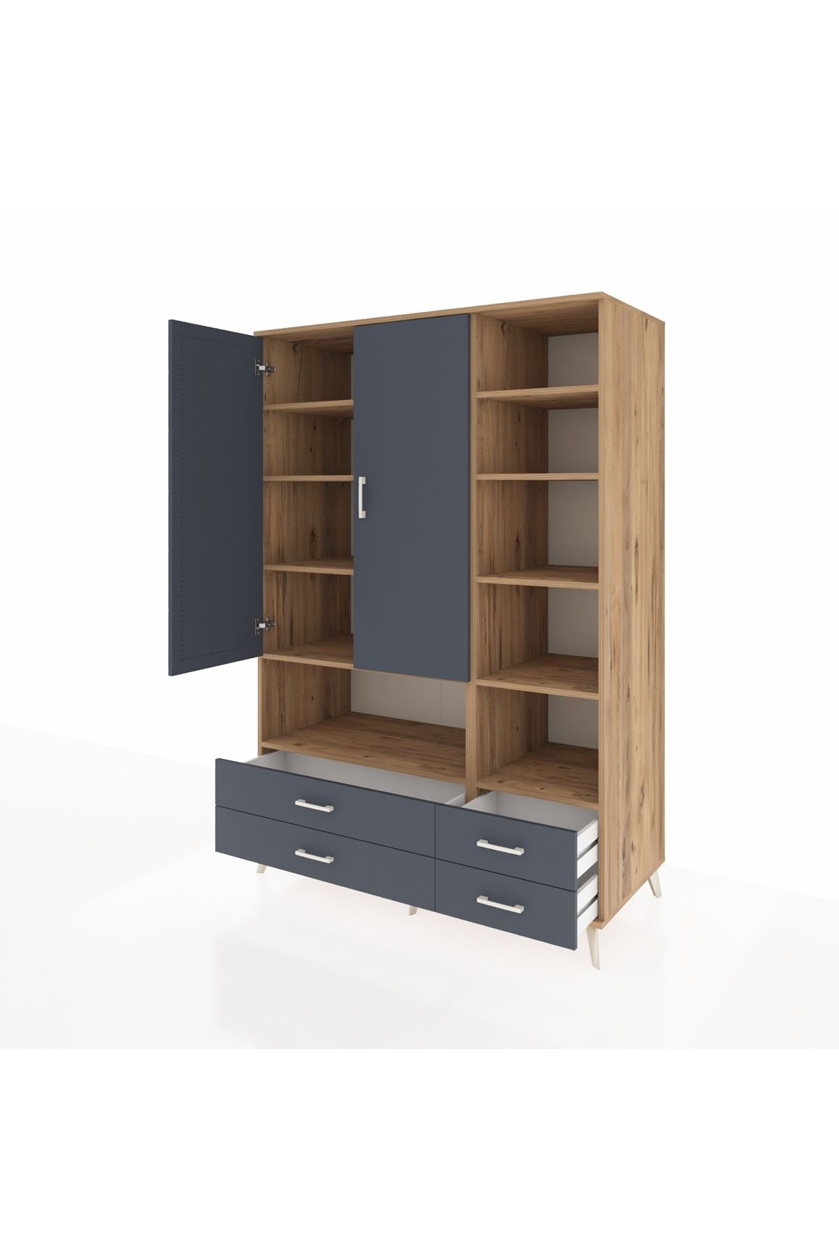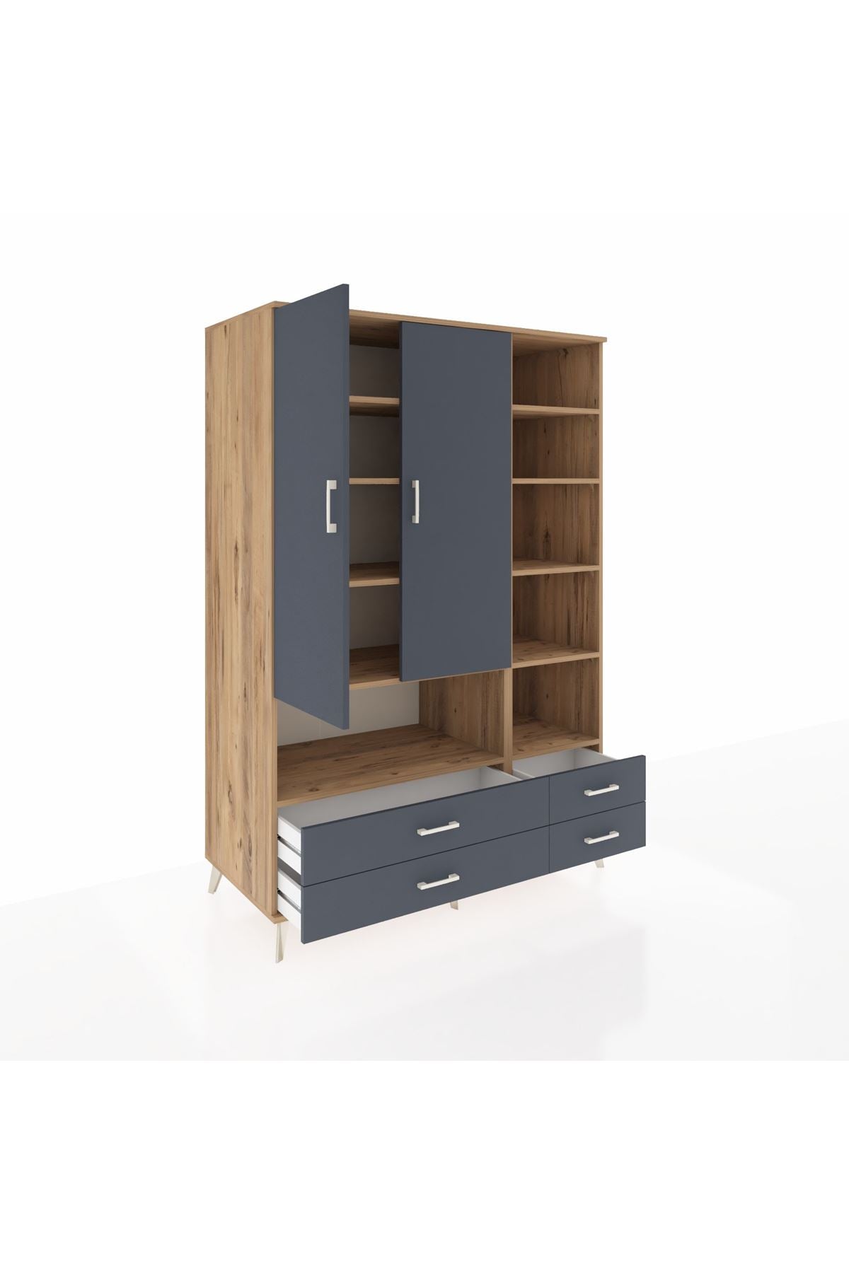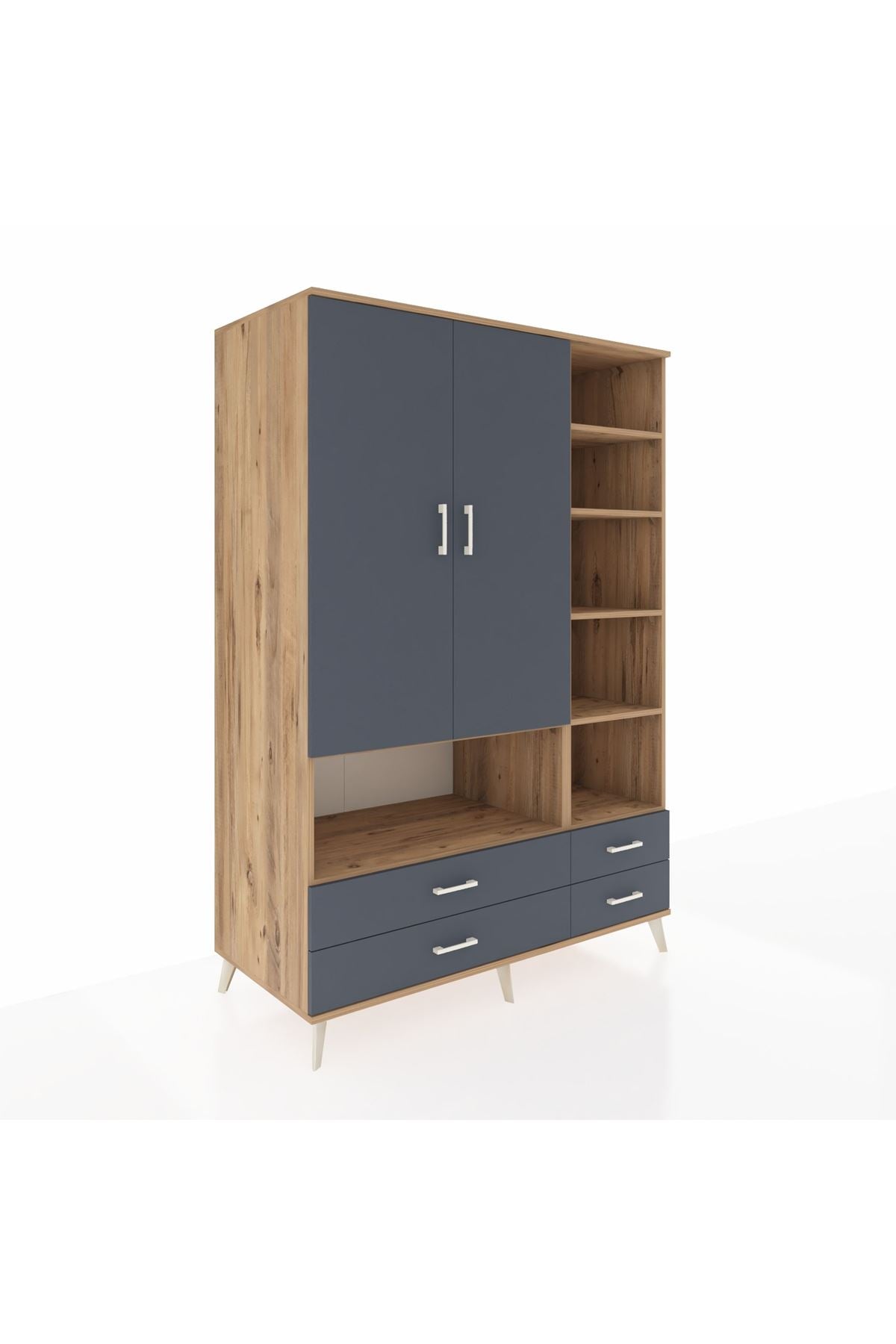 Kronos Dolap 10 Raflı 4 Çekmeceli 2 Kapaklı 132x59x195 Çam-Antrasit/Antrasit
