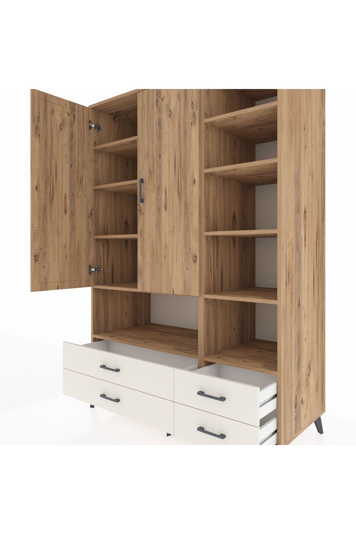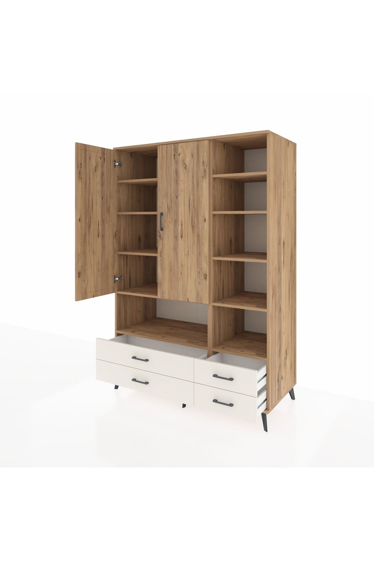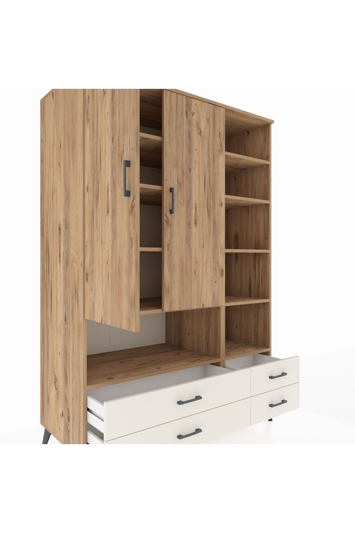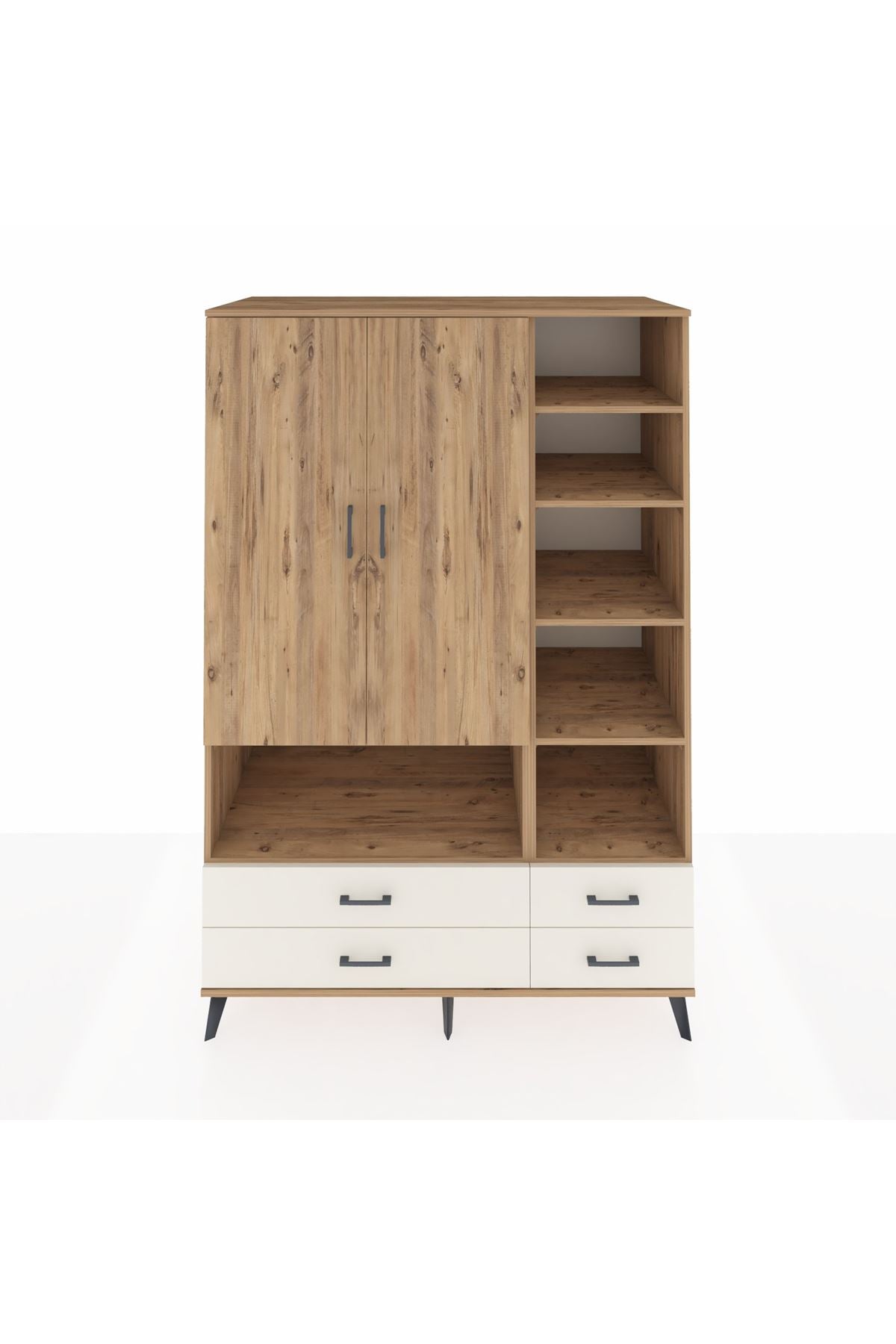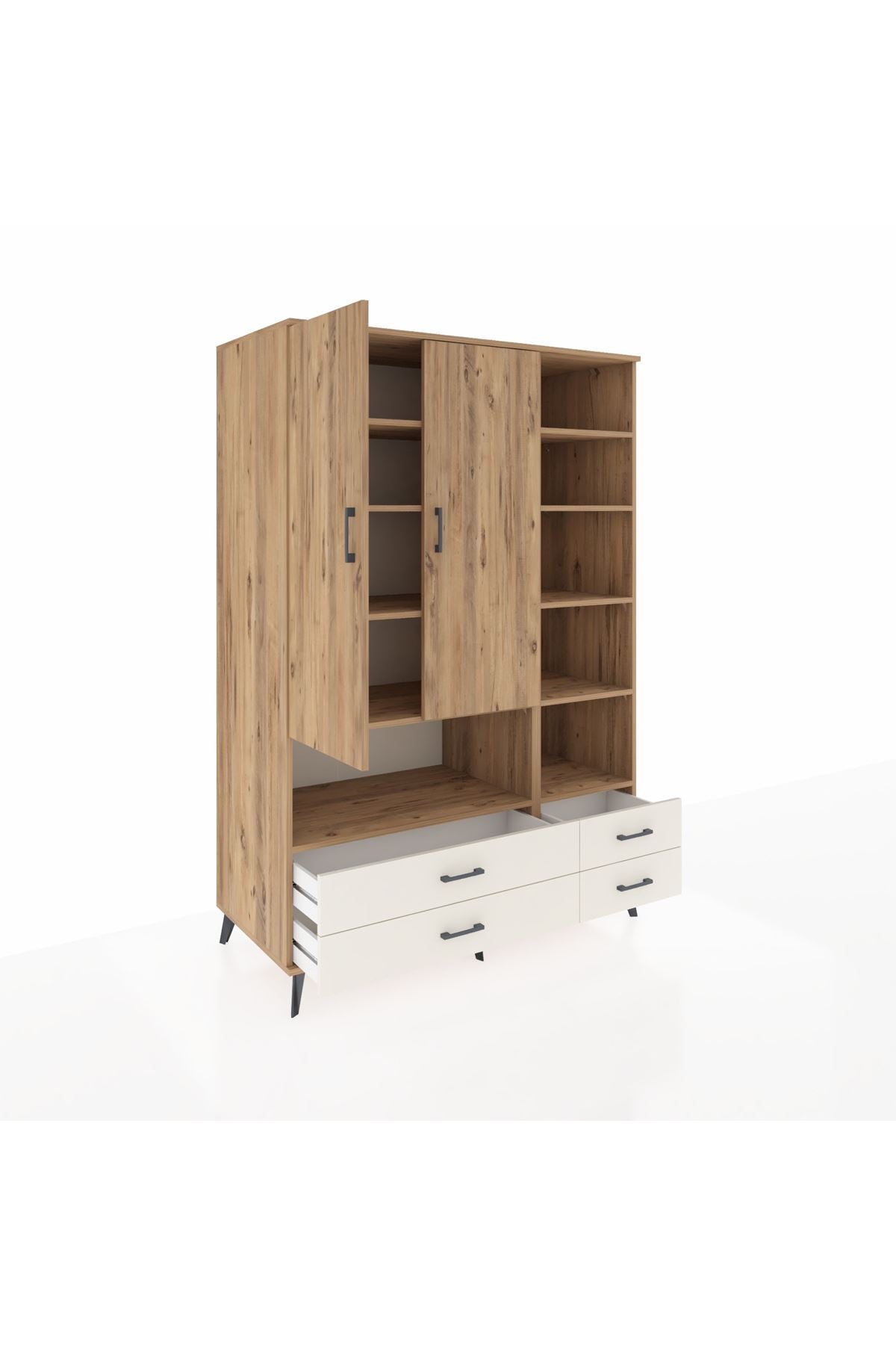 Kronos Dolap 10 Raflı 4 Çekmeceli 2 Kapaklı 132x59x195 Çam-Çam/Aytaşı