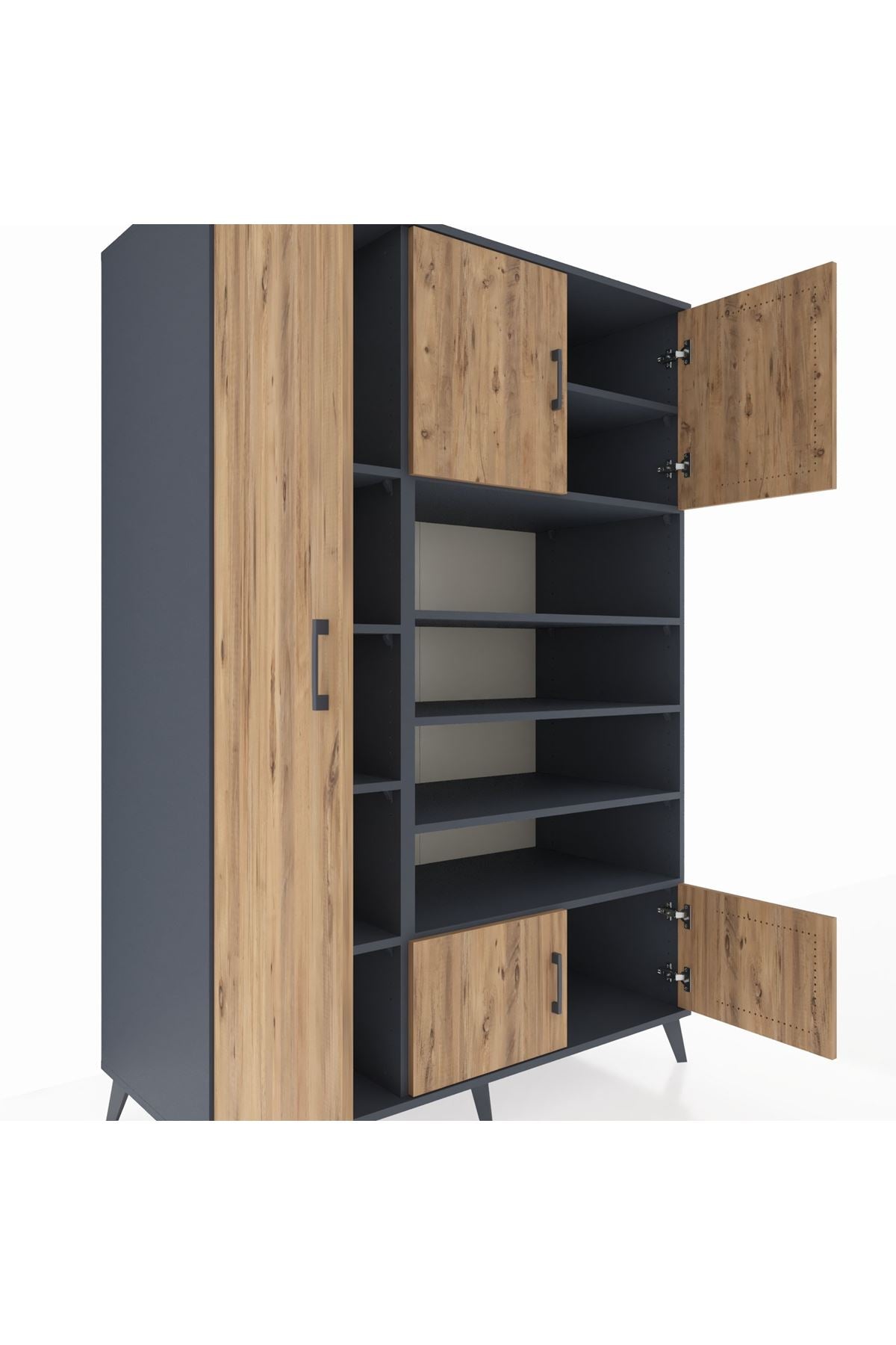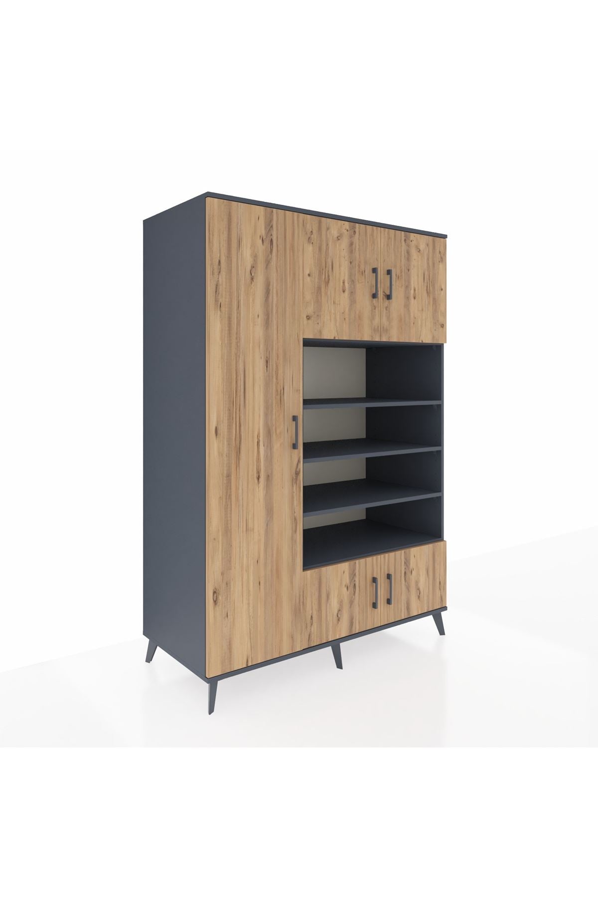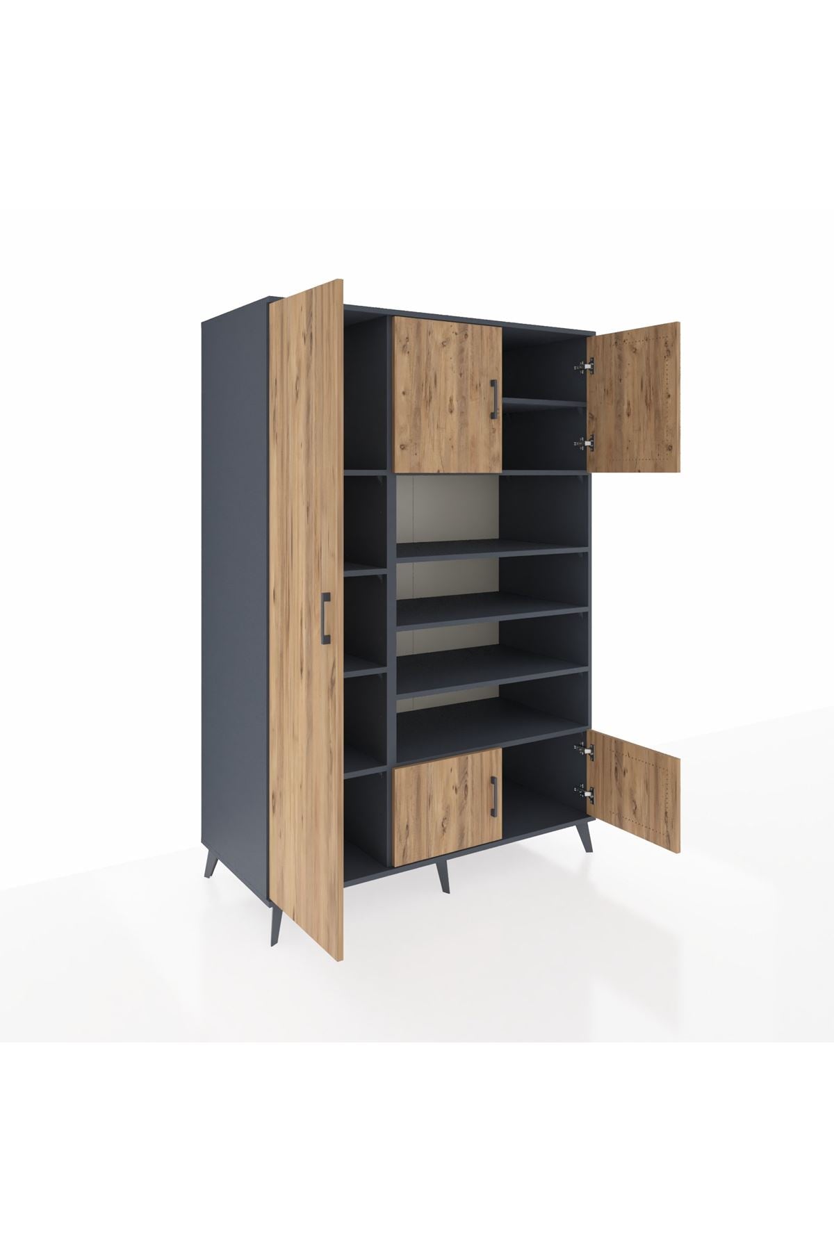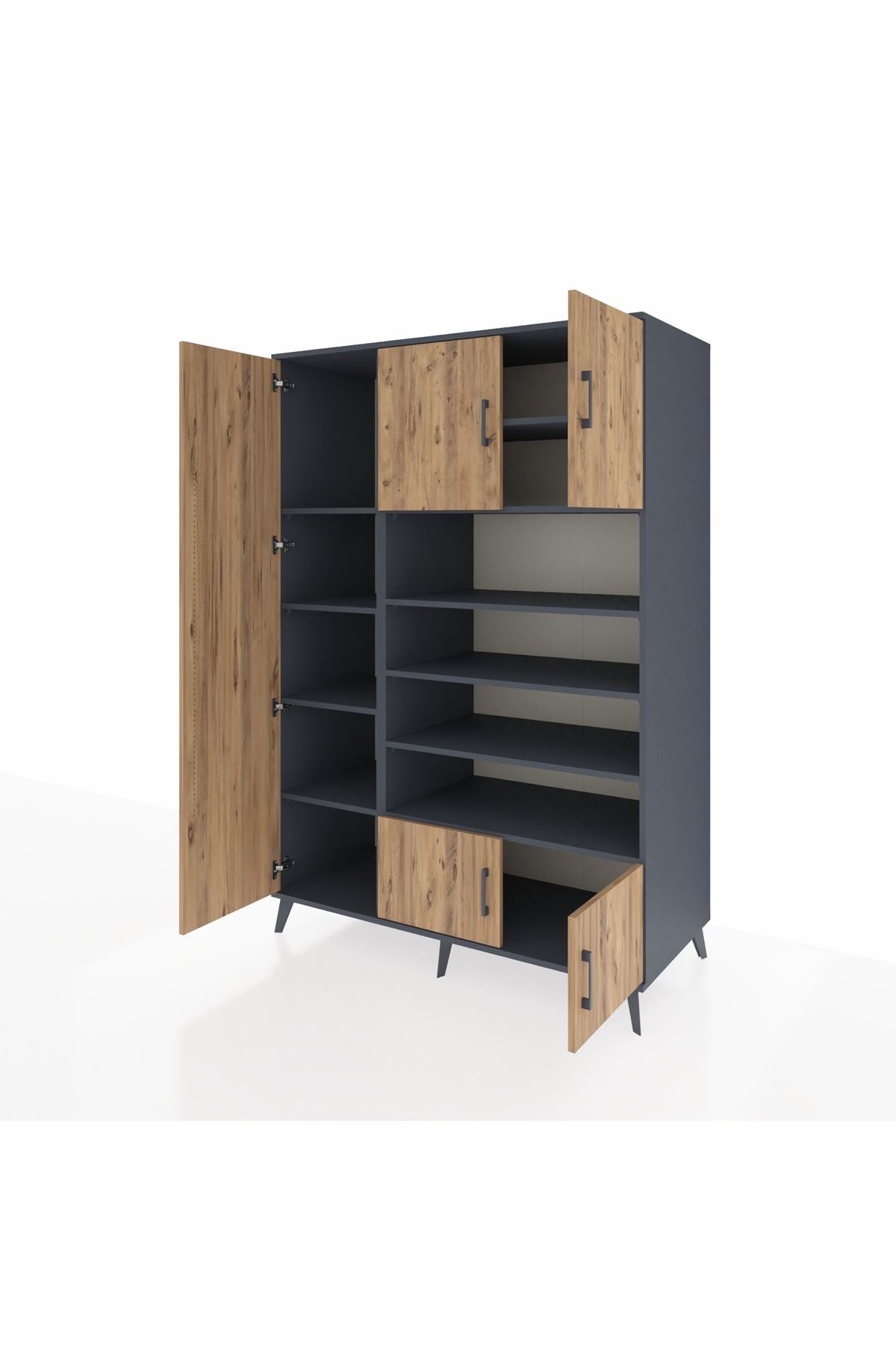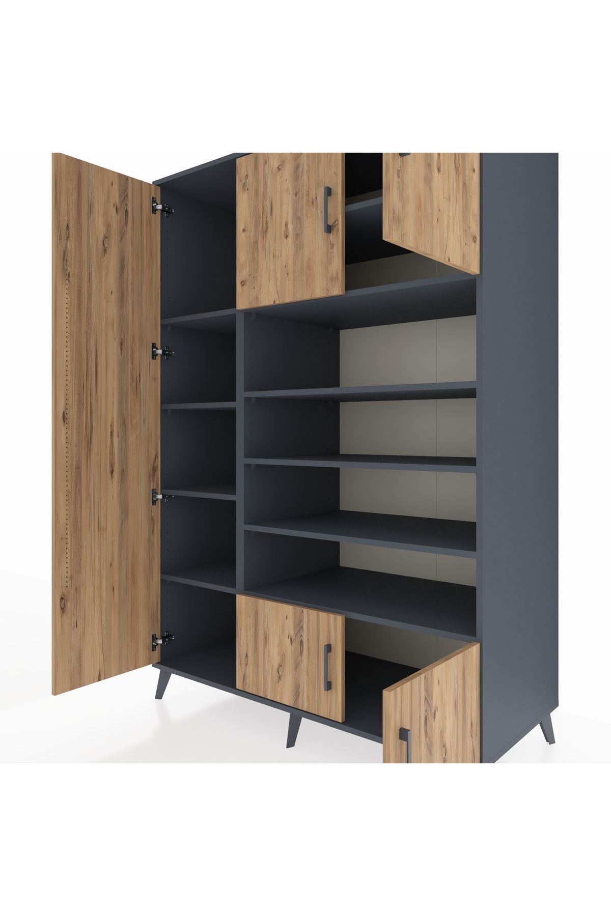 ⏳ Kronos Dolap 10 Raflı 5 Kapaklı 132x59x195 Antrasit-Çam/Antrasit