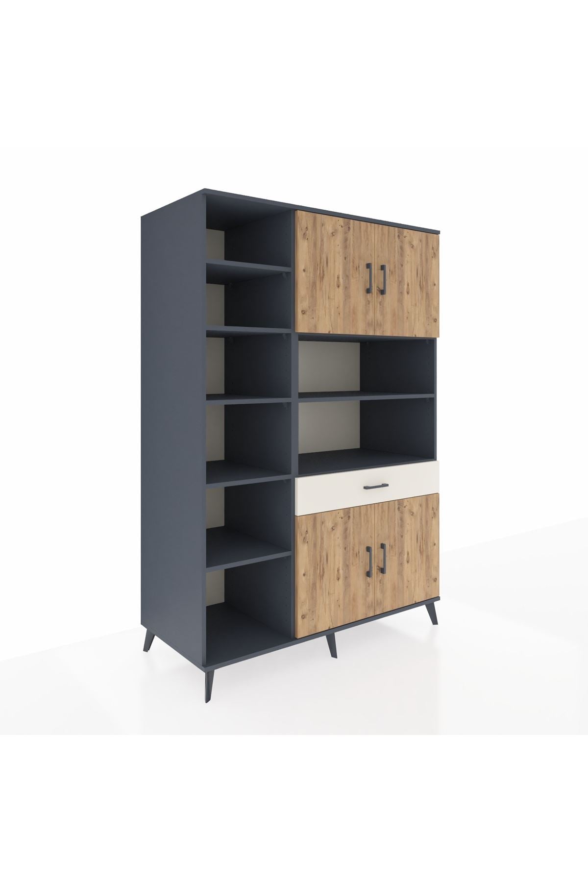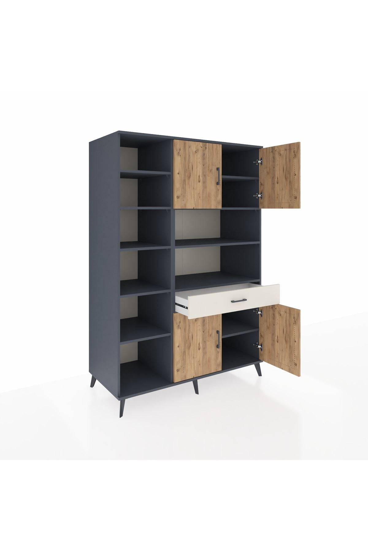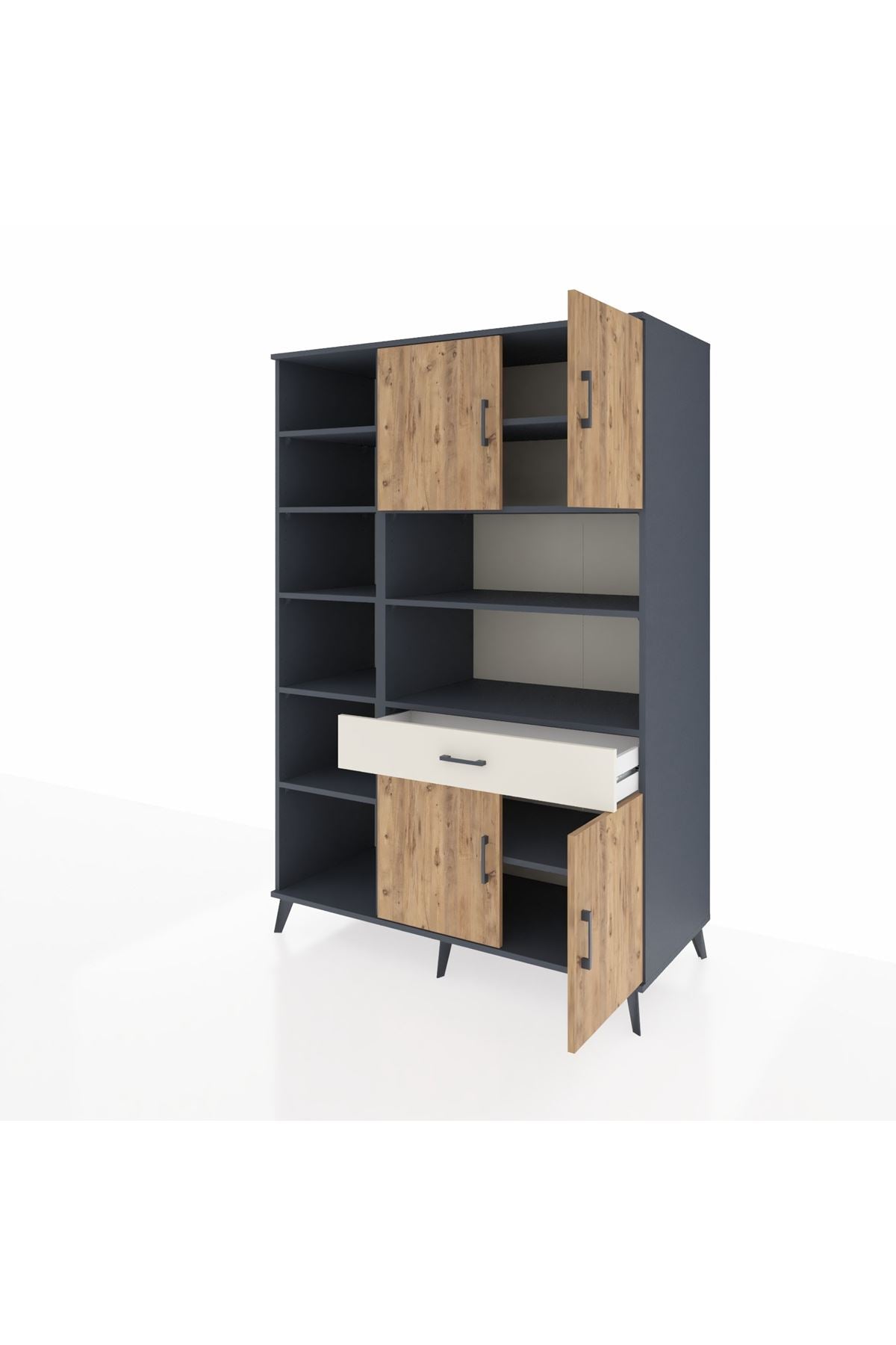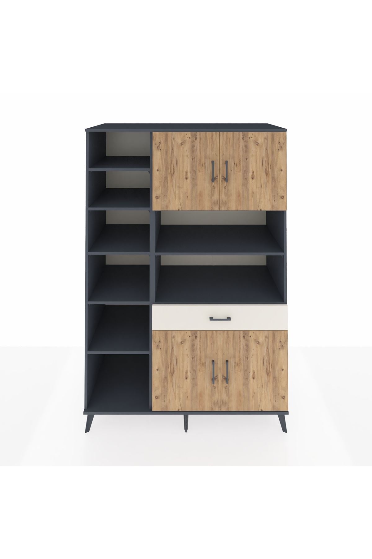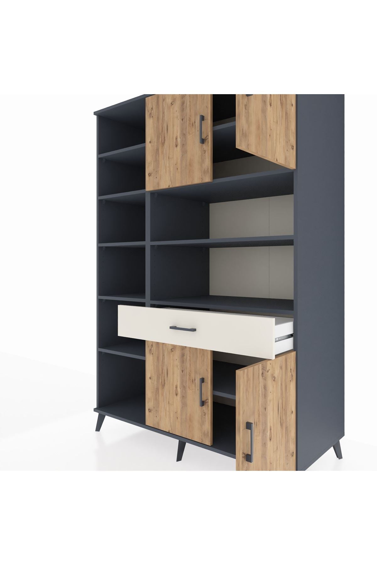 Kronos Dolap 10 Raflı Tek Çekmeceli 4 Kapaklı 132x59x195 Antrasit-Çam/Aytaşı