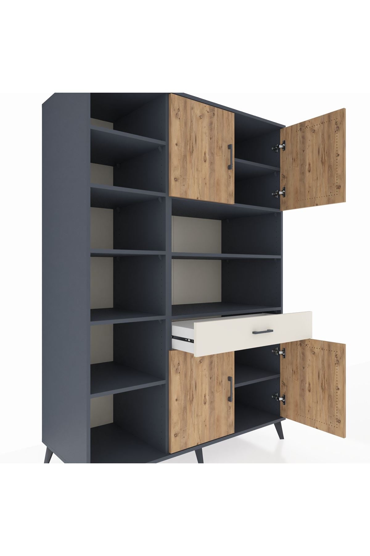 🌟 Kronos Dolap 10 Raflı Tek Çekmeceli 4 Kapaklı 132x59x195 Antrasit-Çam/Aytaşı