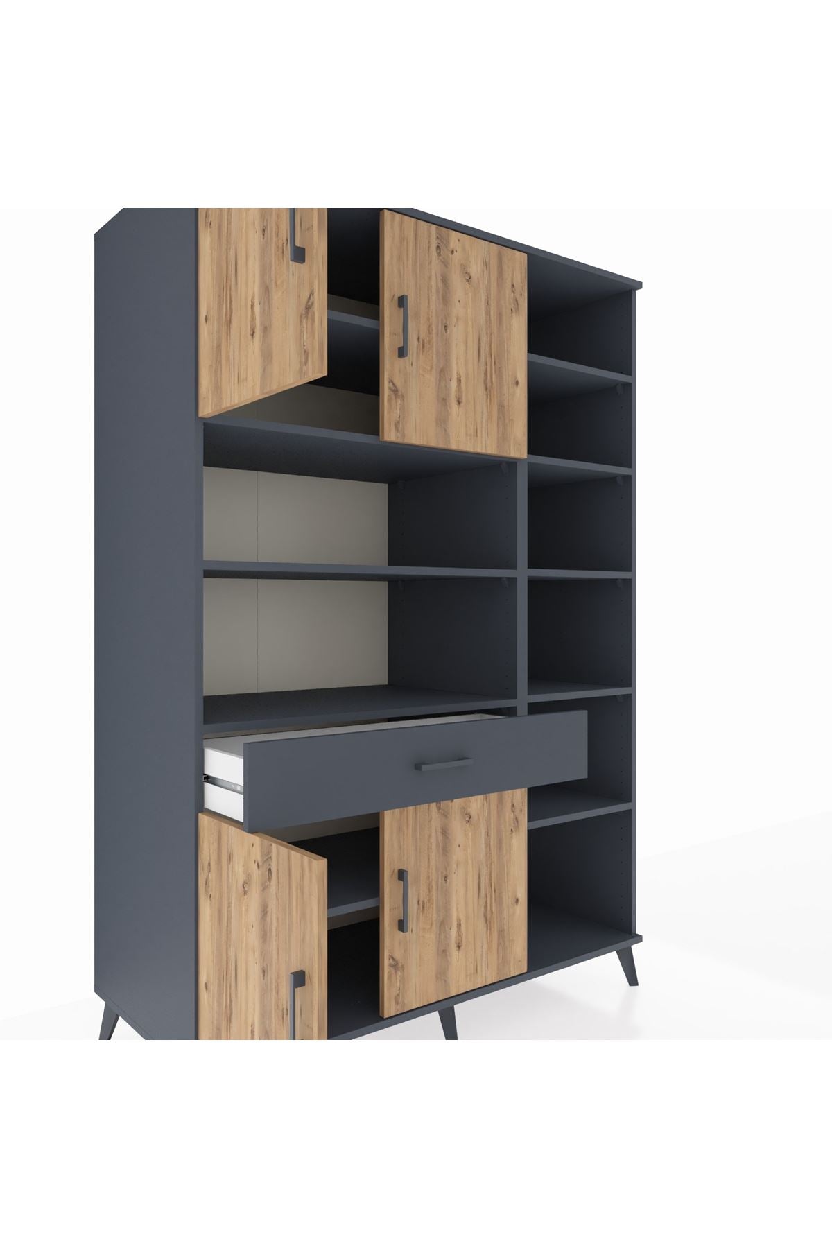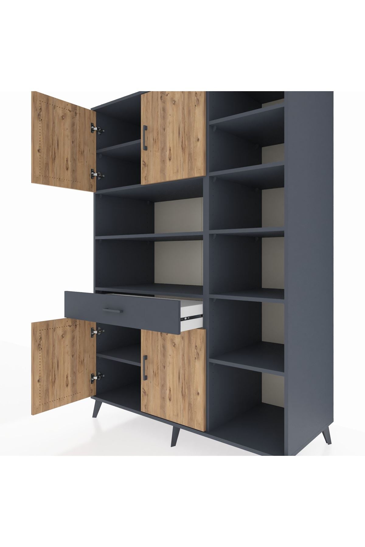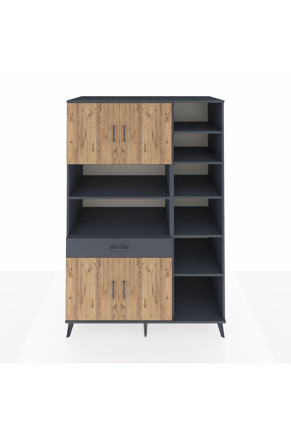 Kronos Dolap 10 Raflı Tek Çekmeceli 4 Kapaklı 132x59x195 Antrasit-Çam/Antrasit