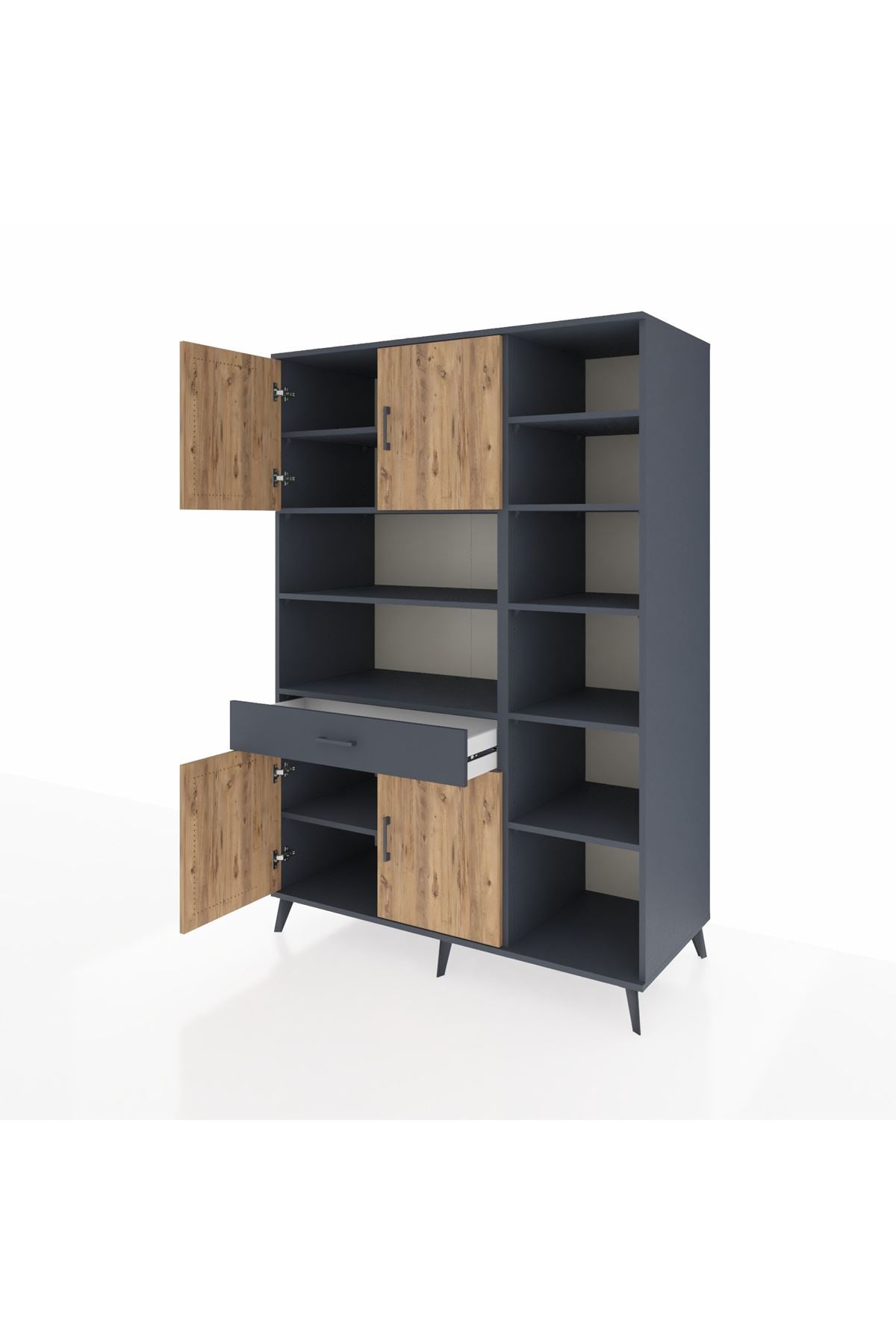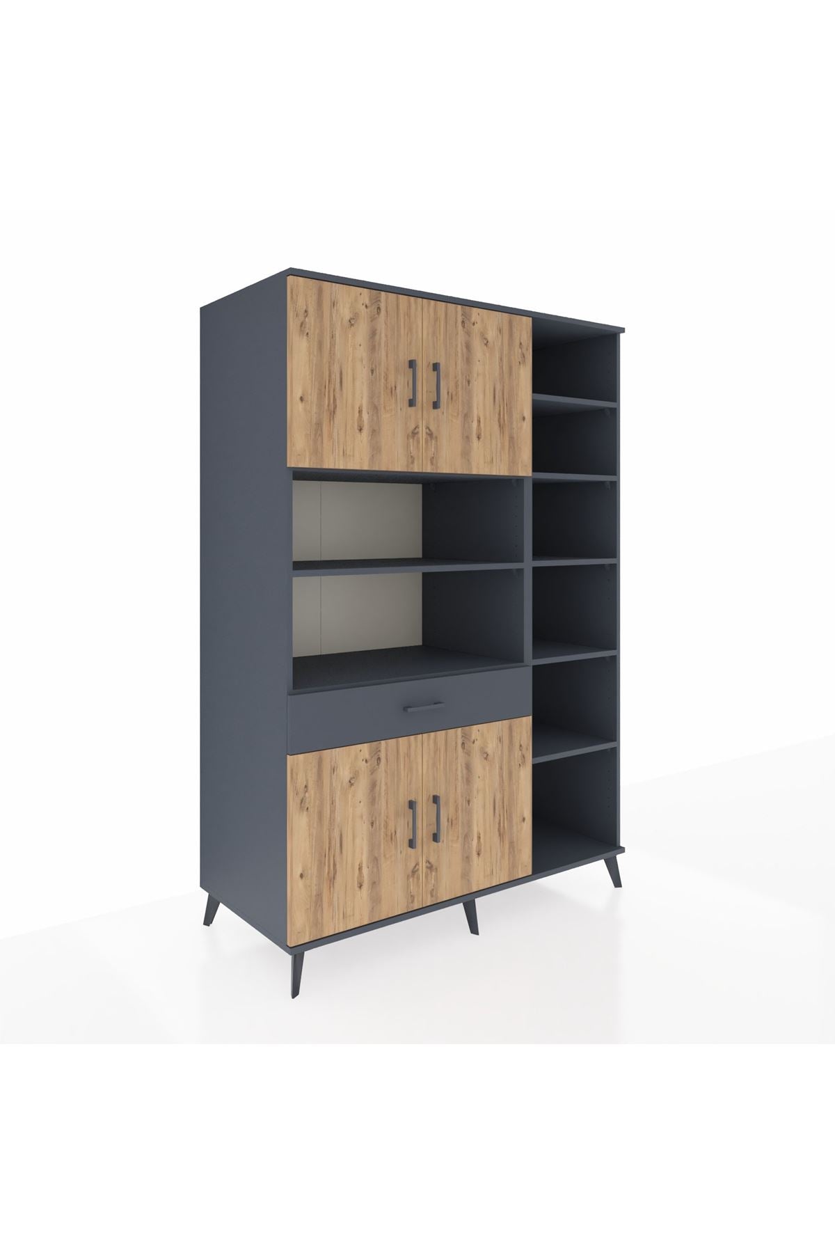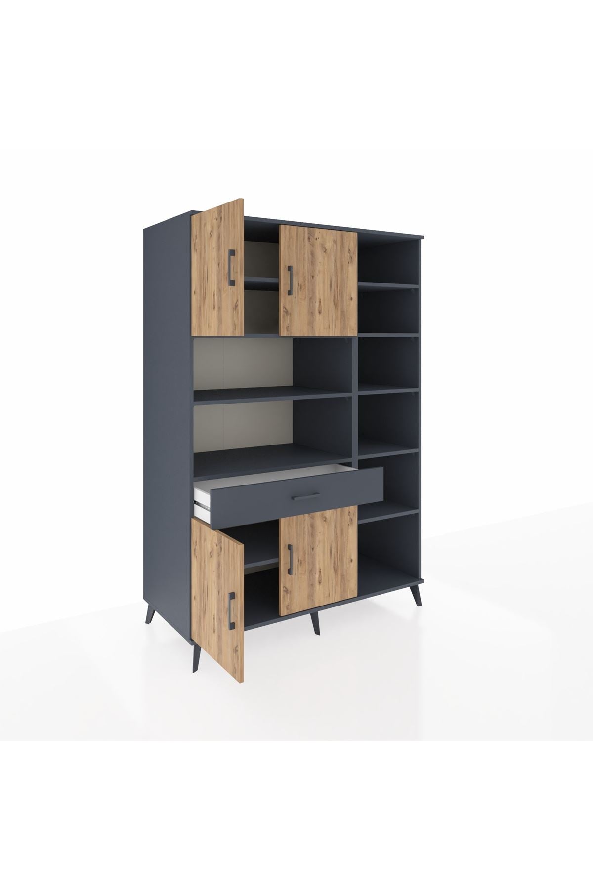 Kronos Dolap 10 Raflı Tek Çekmeceli 4 Kapaklı 132x59x195 Antrasit-Çam/Antrasit