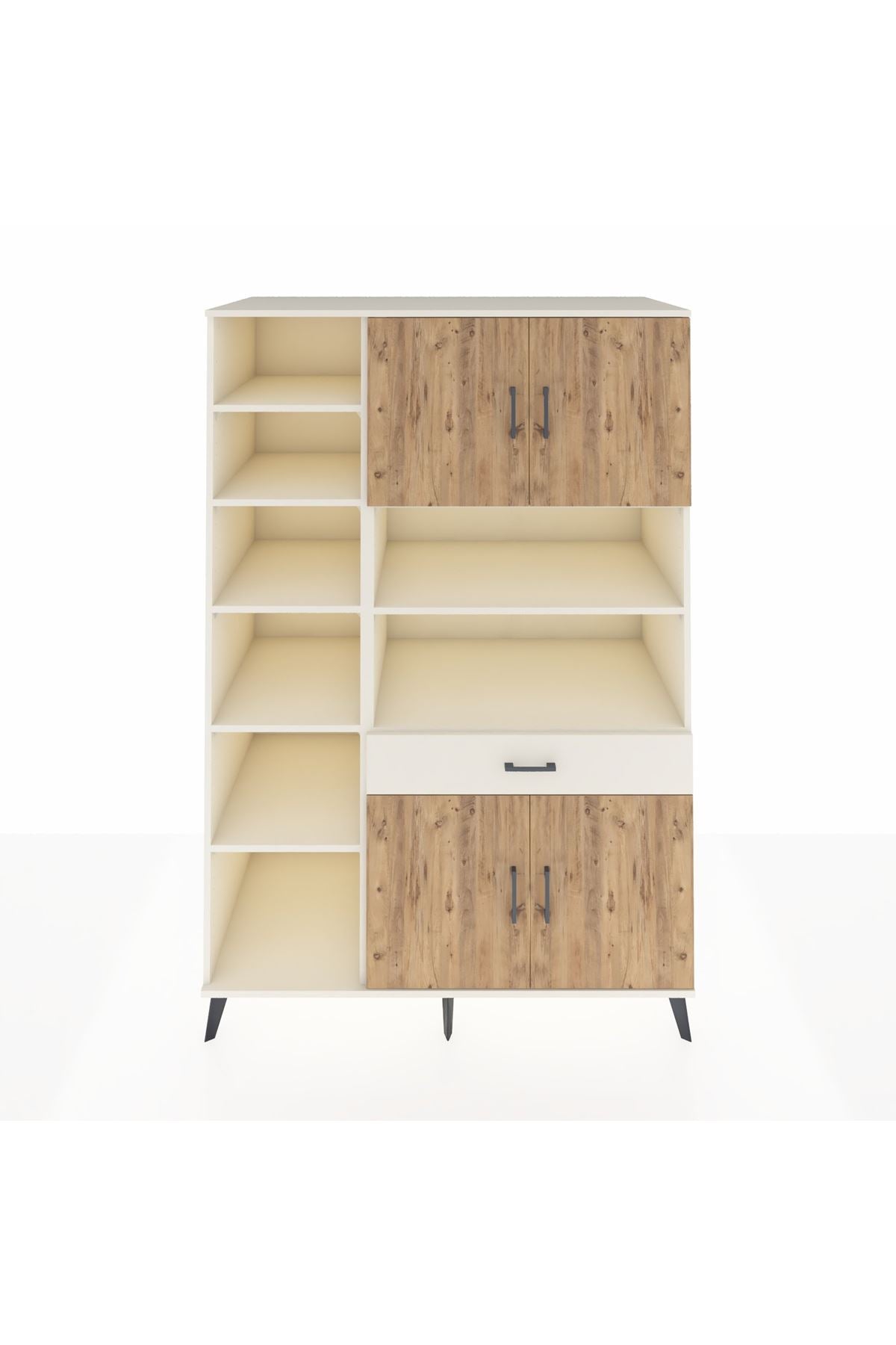 10 adet geniş raf, 1 kullanışlı çekmece ve 4 sağlam kapakla tüm eşyalarınız için akıllı bir düzen sağlar 🎯 Aytaşı ve Atlas Çam tonlarının buluştuğu gövde ve kapaklar, zamansız bir şıklık oluşturur 🌲🤍 Metal ayakları ve metal kulpları, dayanıklılığı yüksek bir stil ile birleştirir 🦾