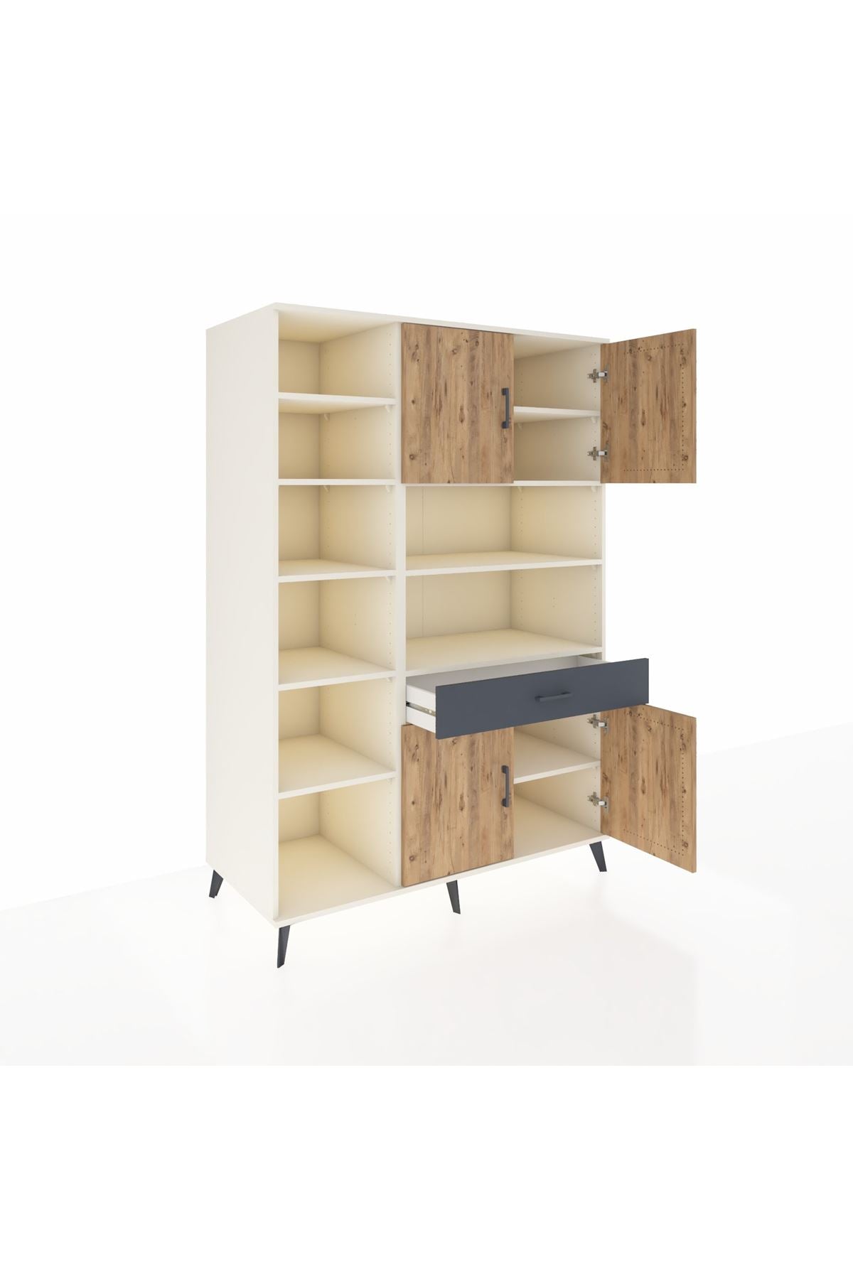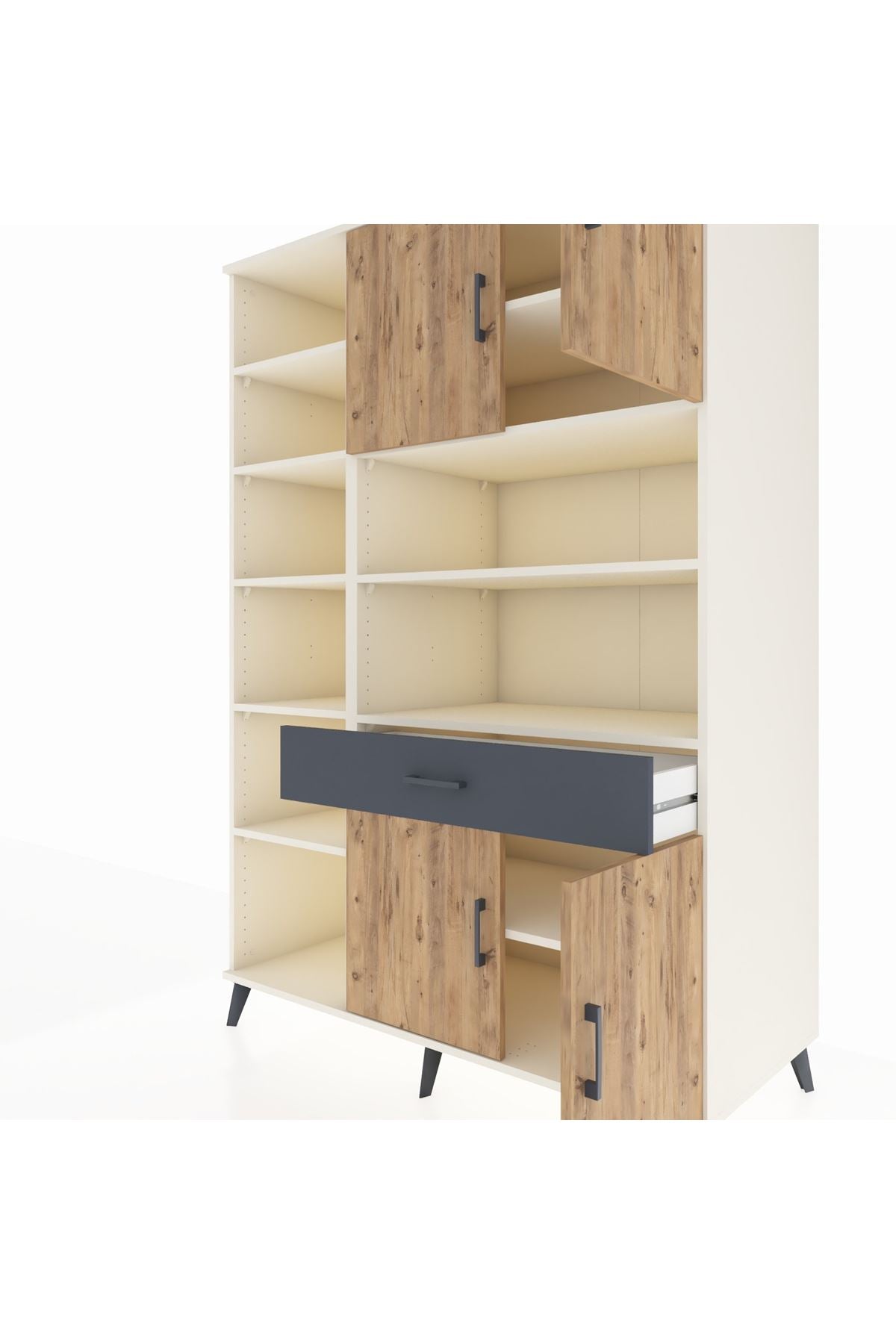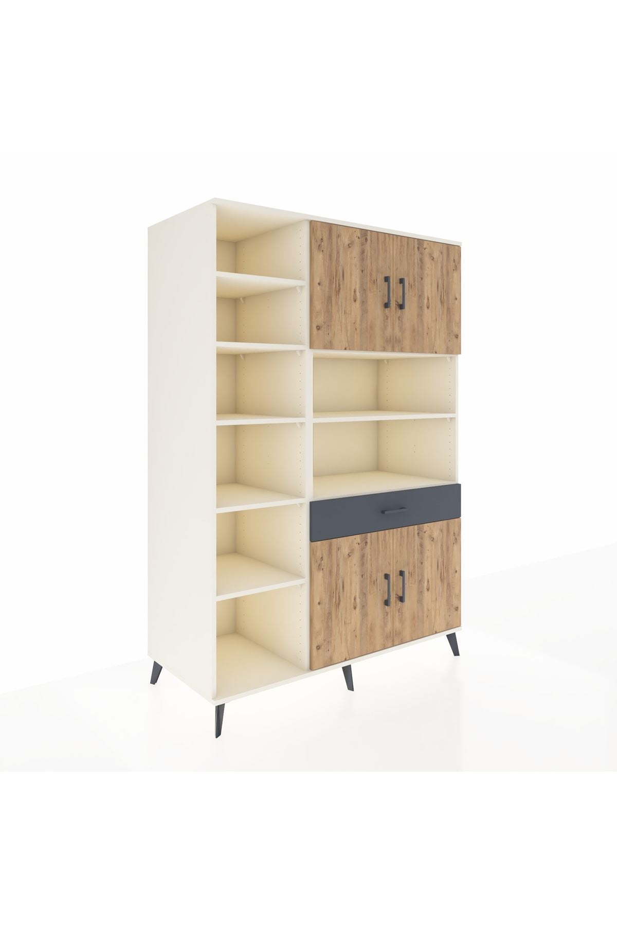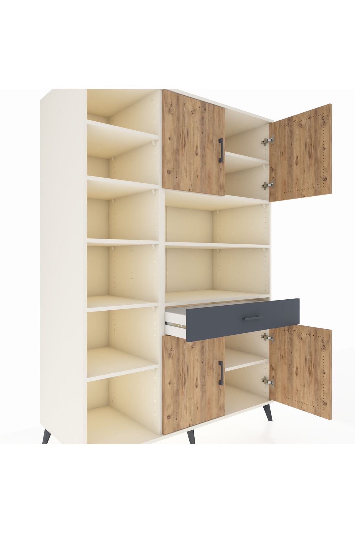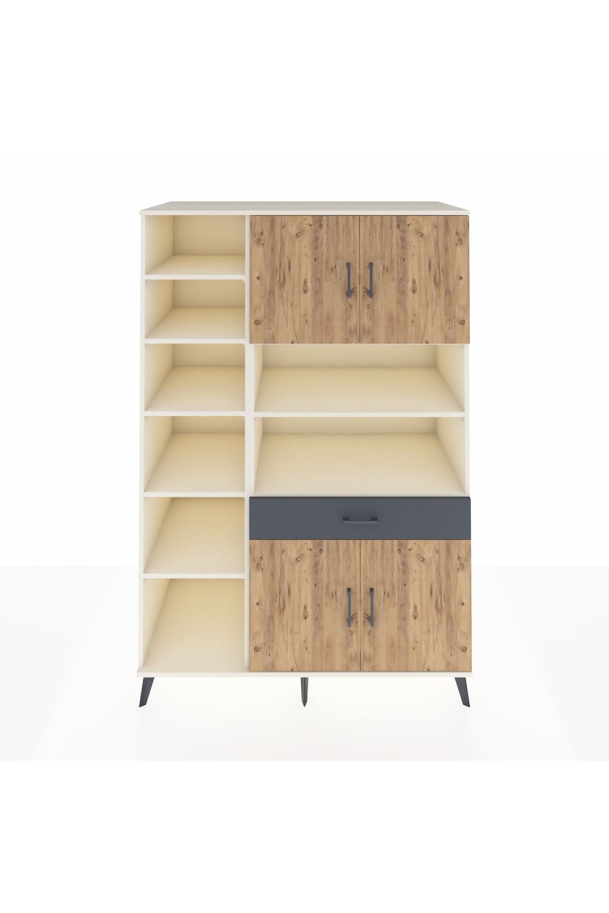 Kronos Dolap 10 Raflı Tek Çekmeceli 4 Kapaklı 132x59x195 Aytaşı-Çam/Antrasit