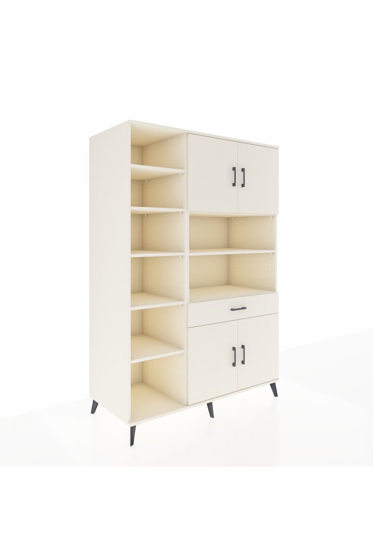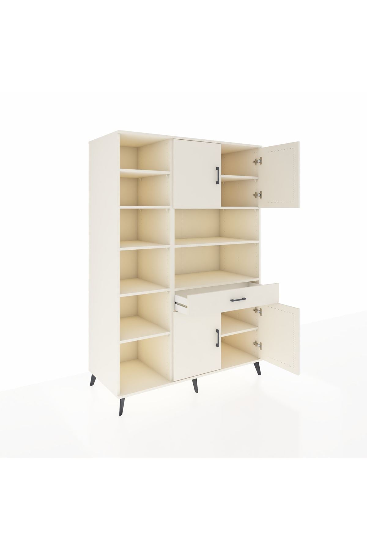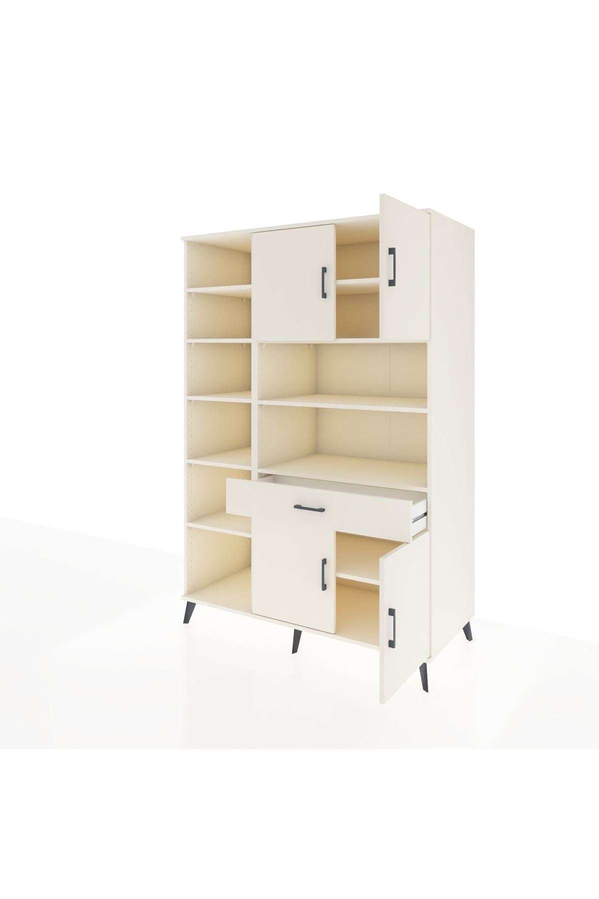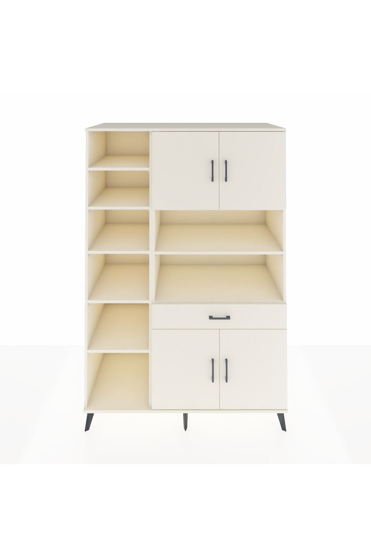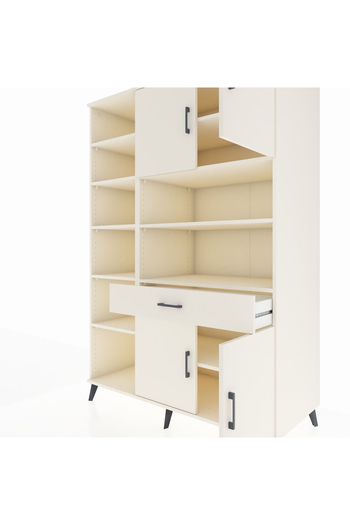 - 🗃️ 10 raf, 1 çekmece, 4 kapaklı tasarım