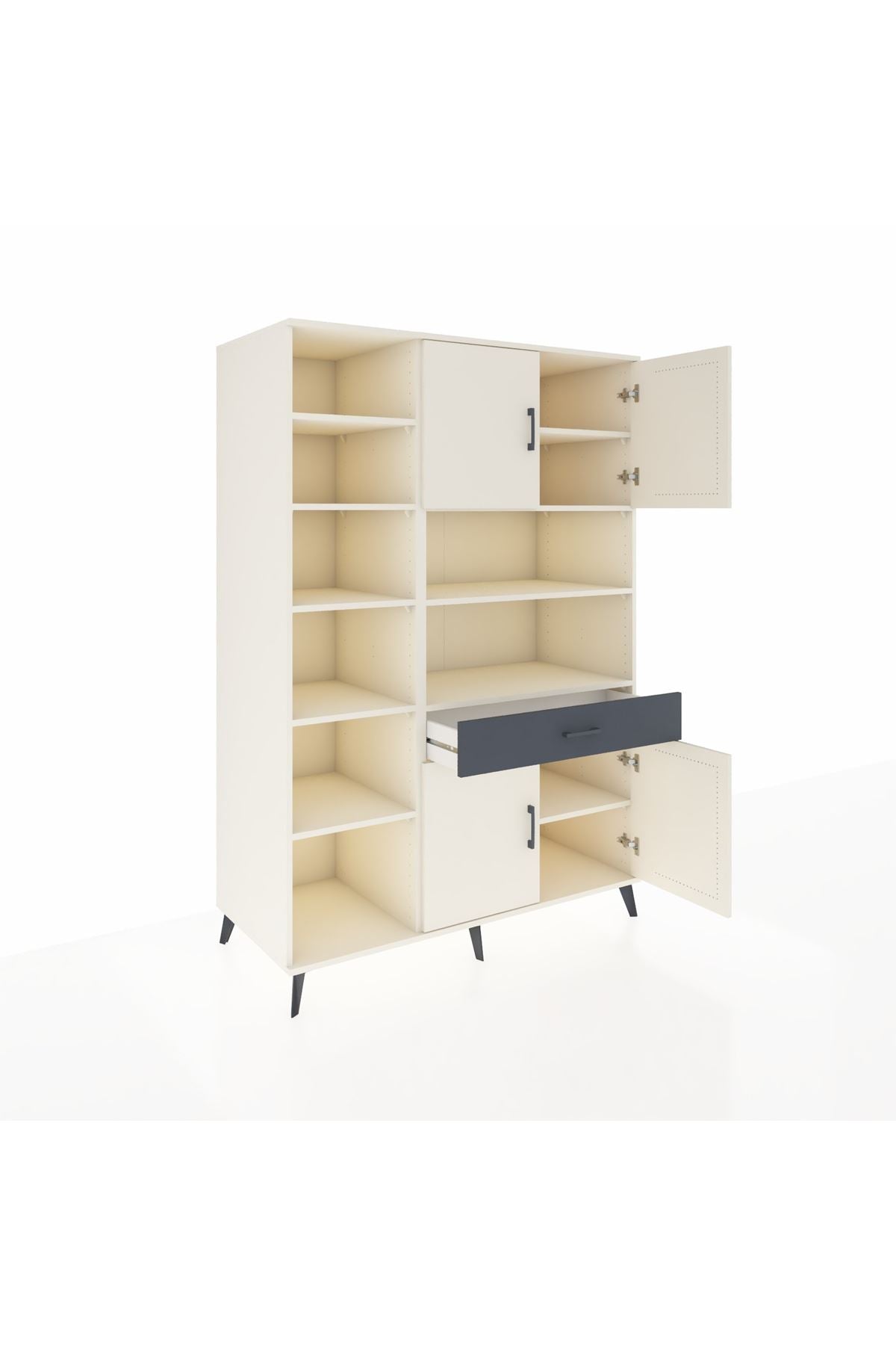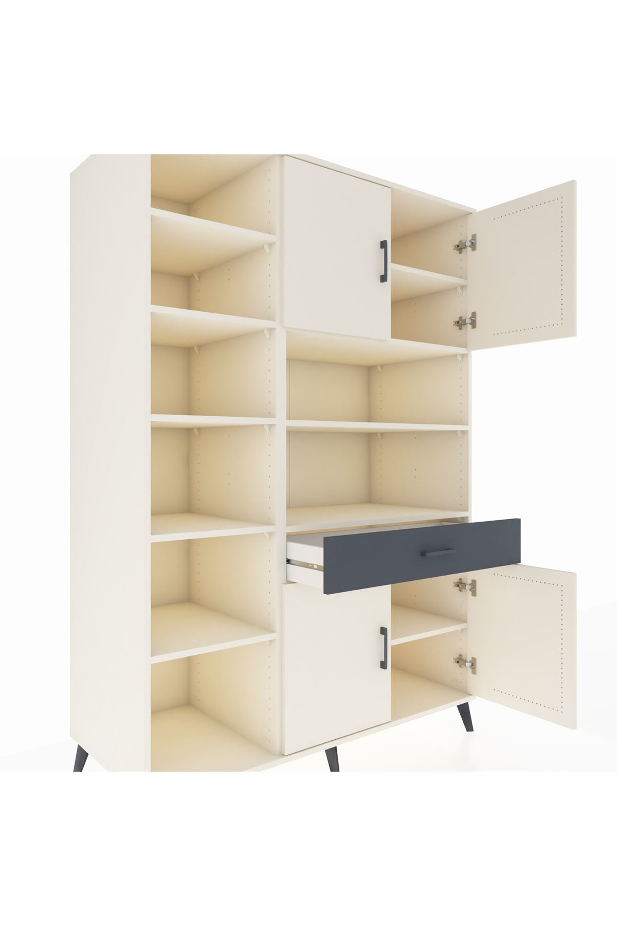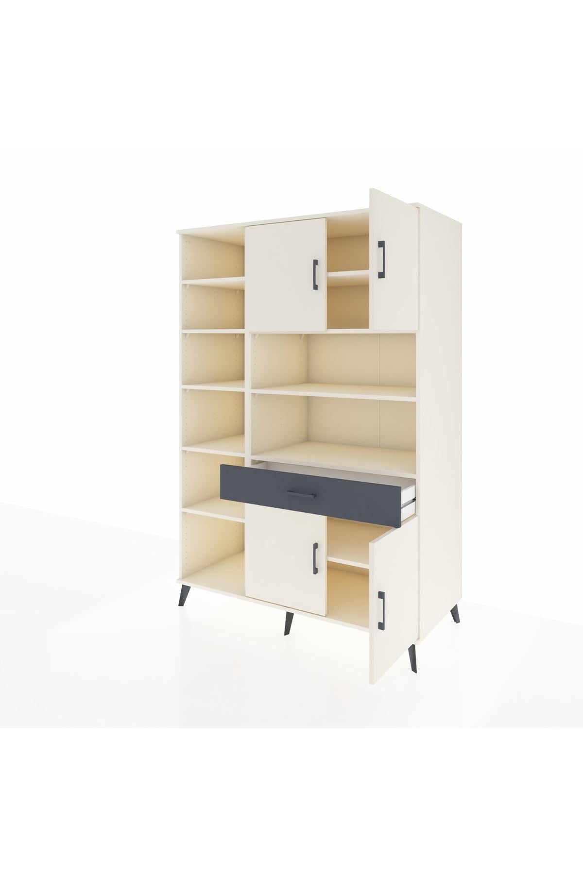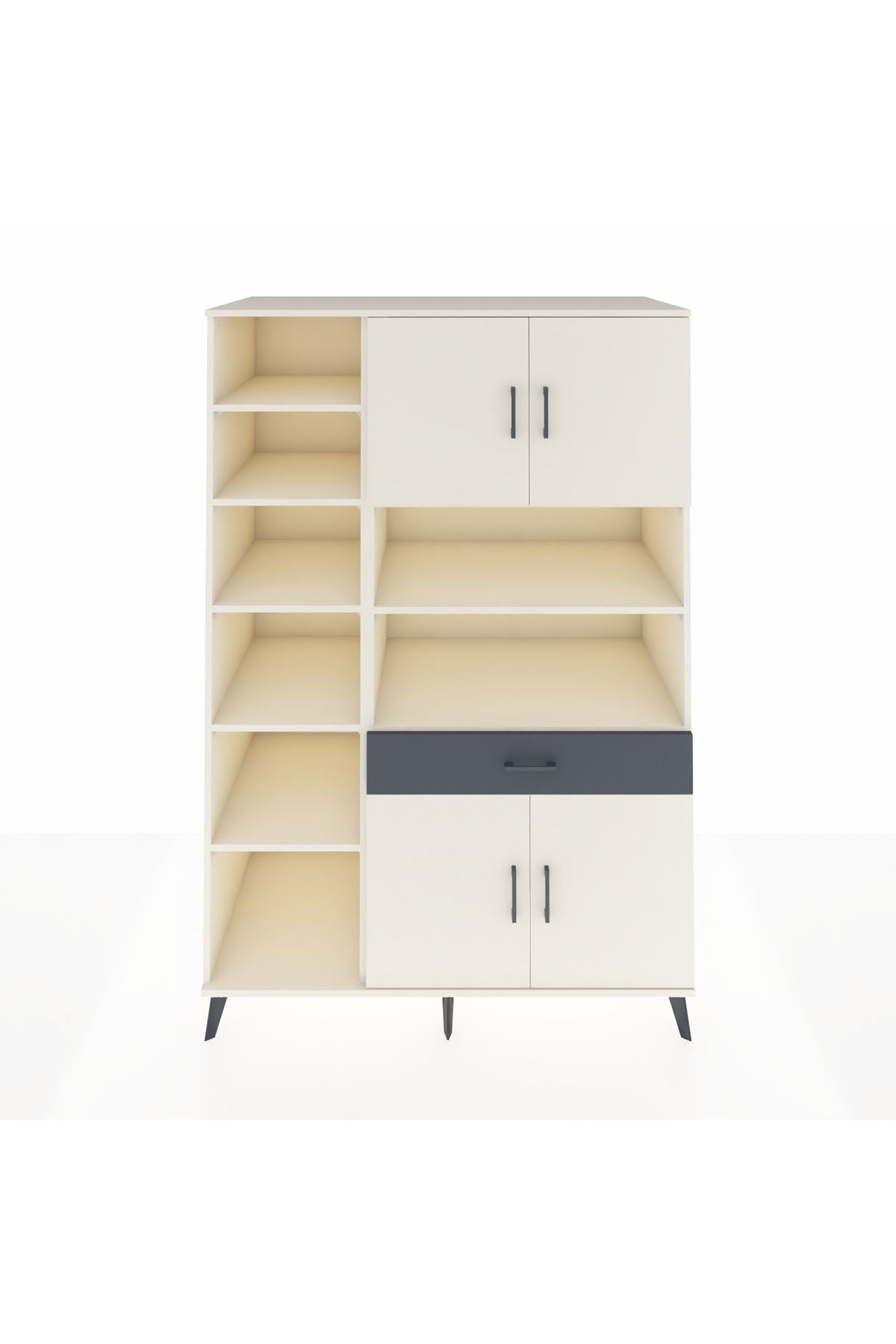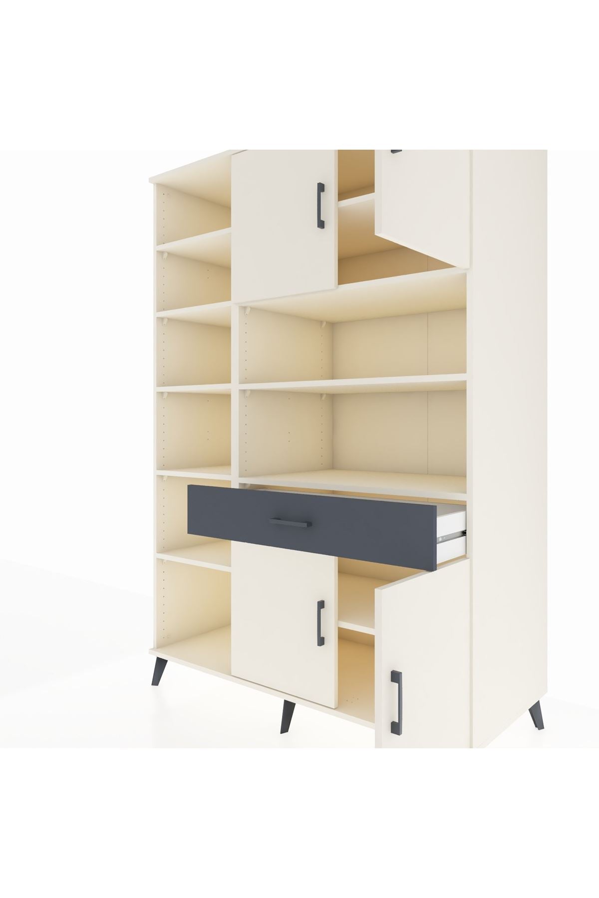 10 rafı, tek çekmecesi ve 4 kapaklı geniş iç hacmiyle evinizin her köşesinde düzen ve şıklık sunar 📚👗
