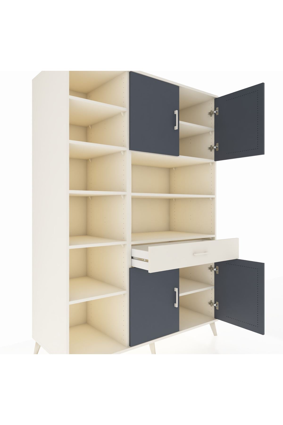 - 🚪 4 kapak, 1 çekmece, 10 raf