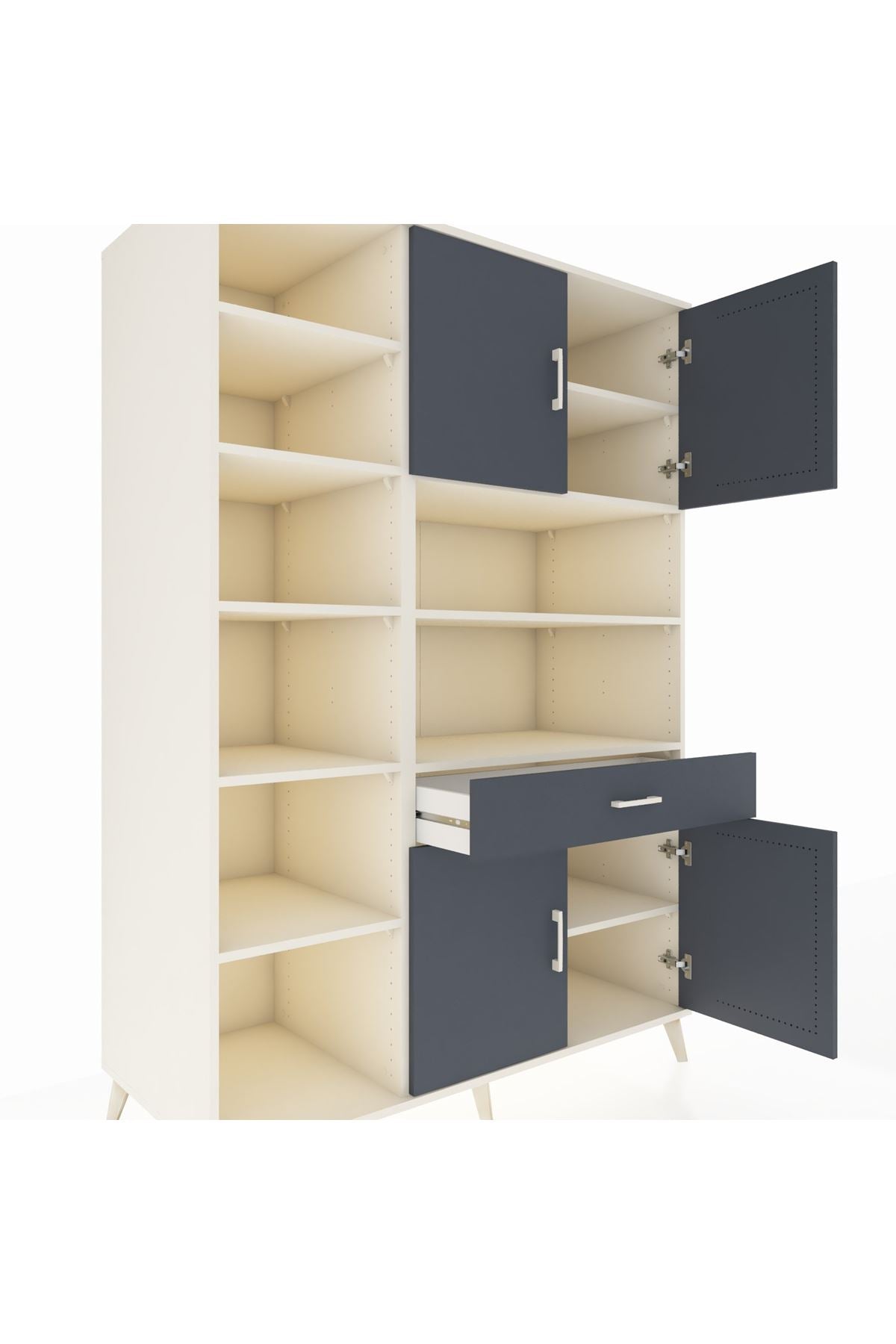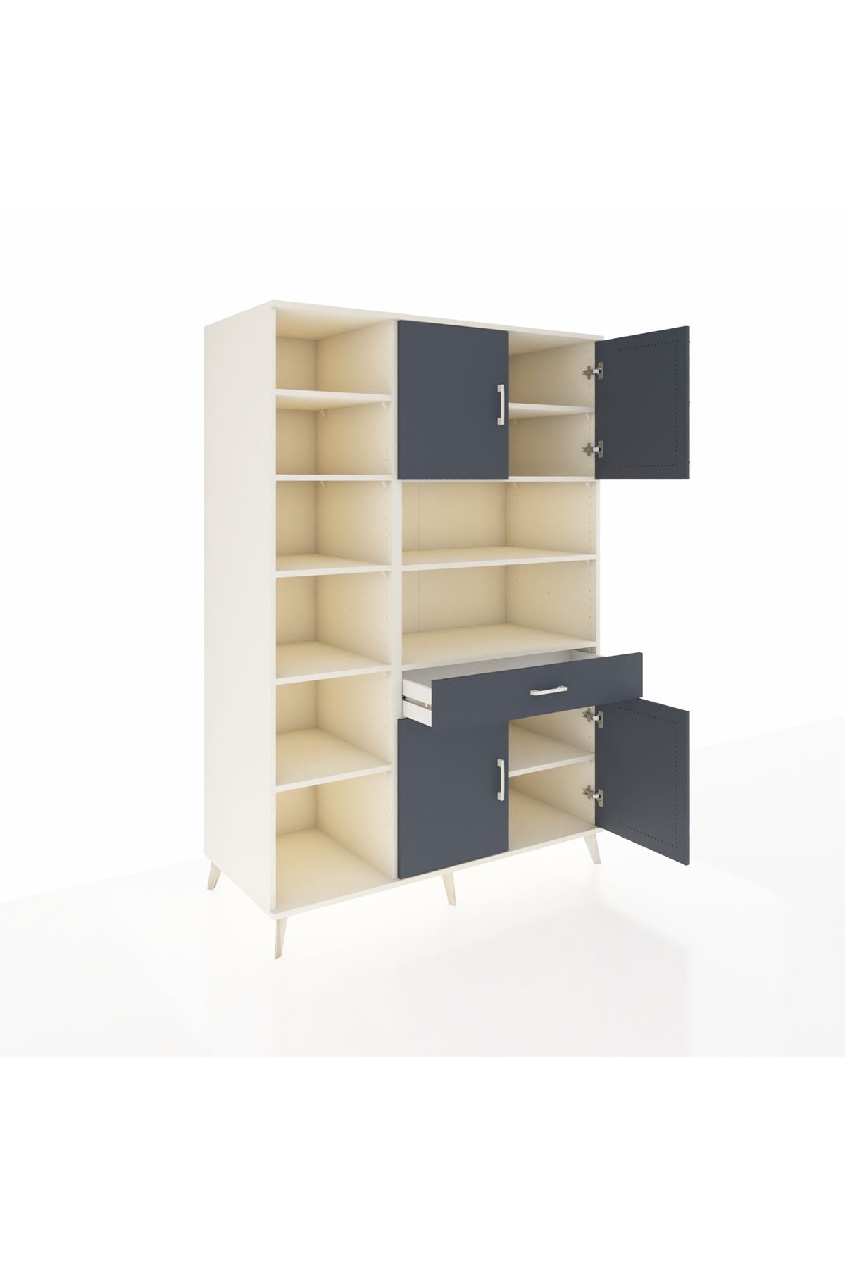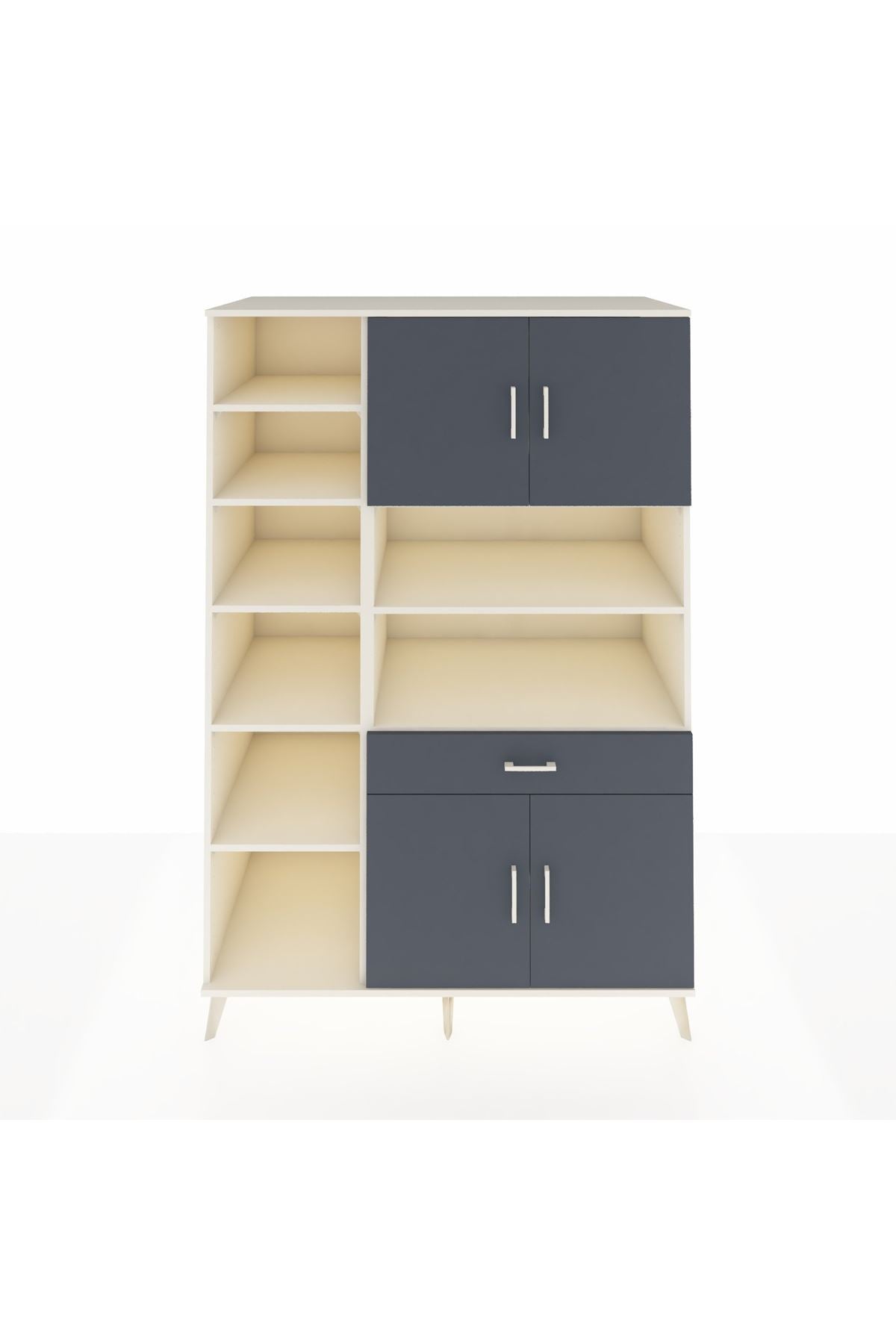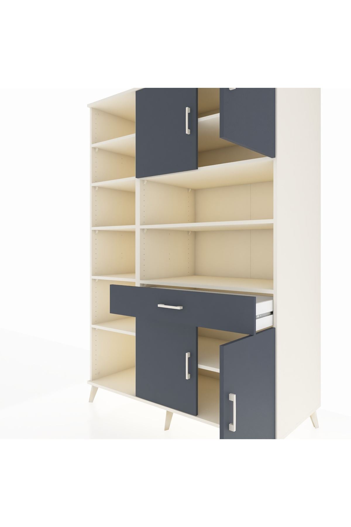 10 geniş rafı ile kitaplardan kıyafete, mutfak gereçlerinden oyuncaklara kadar pek çok eşyayı düzenli ve erişilebilir şekilde saklayabilirsiniz 📚👗 Tek çekmecesiyle sık kullandıklarınızı elinizin altında tutun 🗄️ 4 kapaklı yapısı hem dağınıklığı gizler hem şık bir görünüm sunar 🛡️