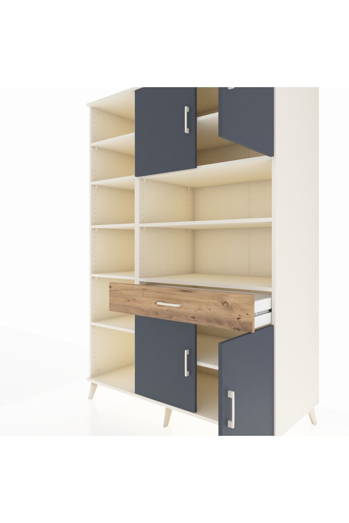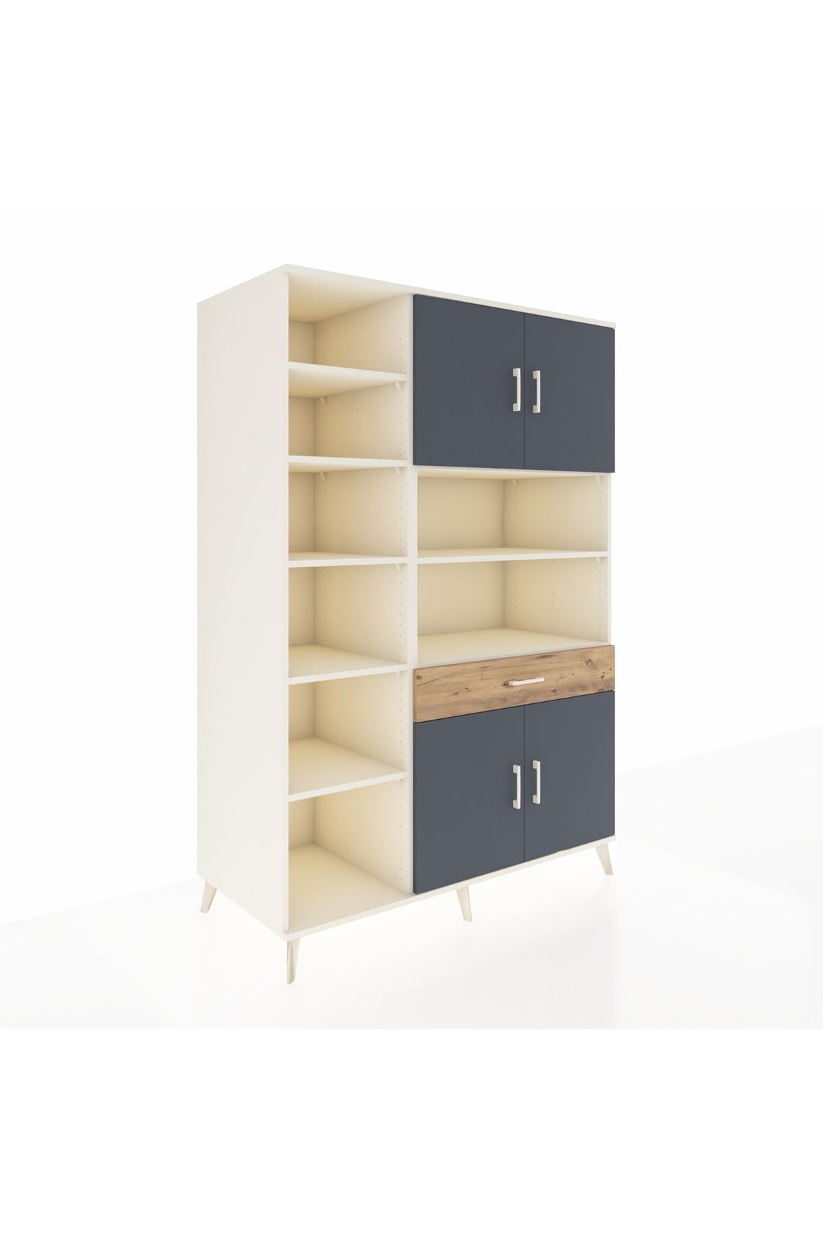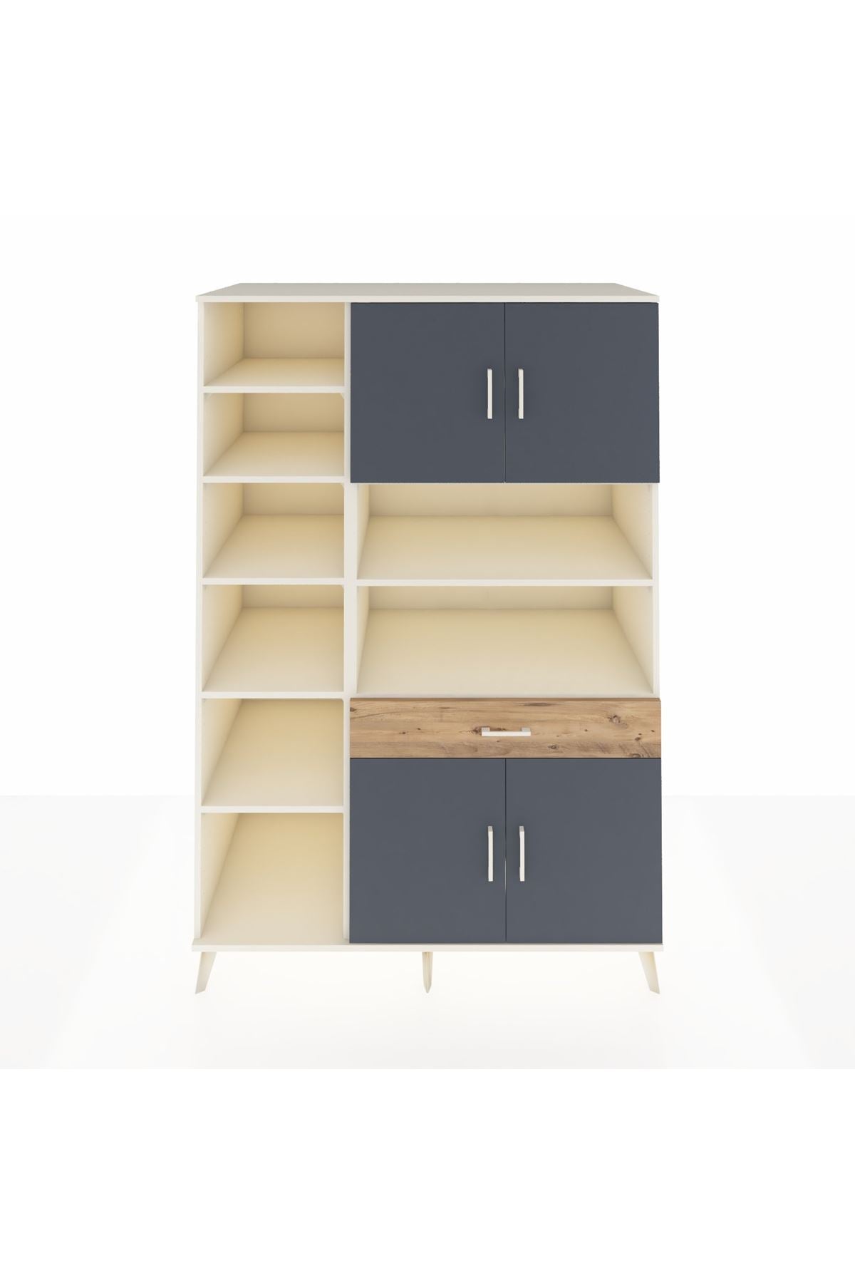 10 adet geniş rafı sayesinde tüm eşyalarınızı düzenli şekilde saklayabilirsiniz 📚🧺 1 adet çekmecesi ve 4 kapaklı yapısı ile kullanışlı bölmeler sunar Kullanılan 1. sınıf Kastamonu Entegre suntalam malzemesi, ürünün hem sağlam hem de uzun ömürlü olmasını sağlar