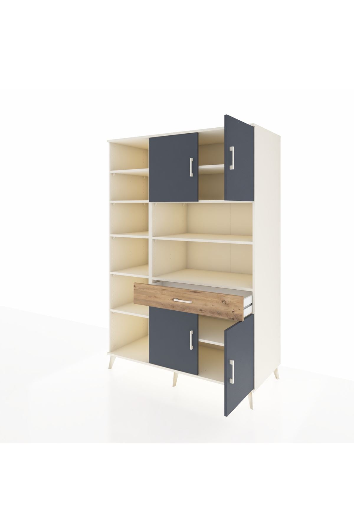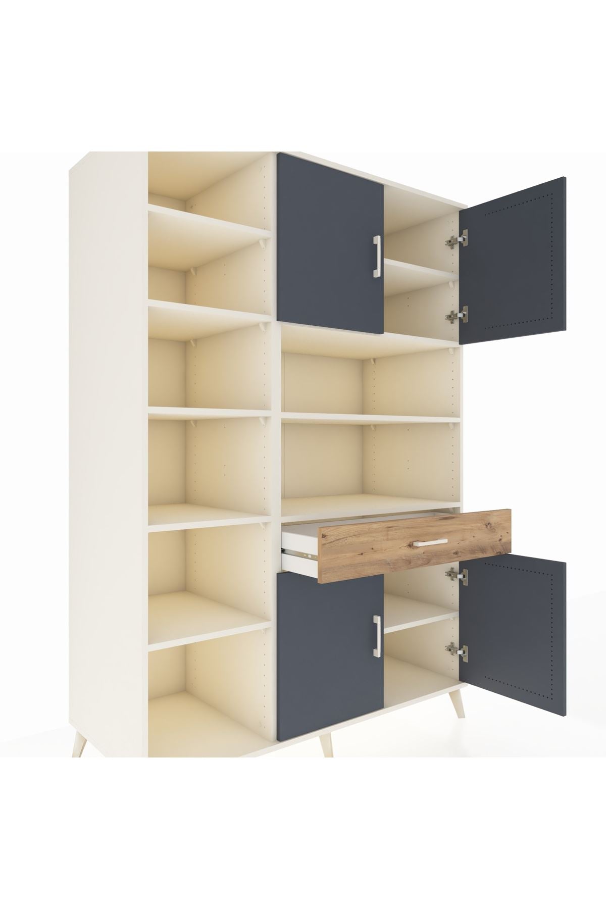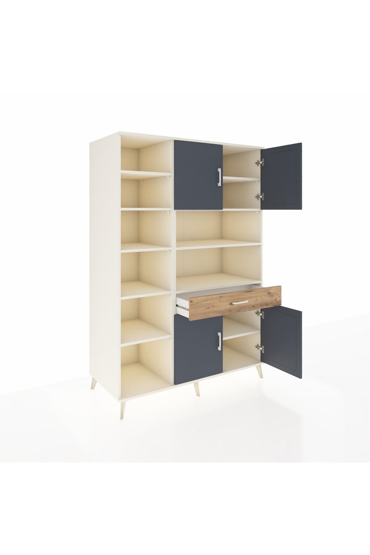10 adet geniş rafı sayesinde tüm eşyalarınızı düzenli şekilde saklayabilirsiniz 📚🧺 1 adet çekmecesi ve 4 kapaklı yapısı ile kullanışlı bölmeler sunar Kullanılan 1. sınıf Kastamonu Entegre suntalam malzemesi, ürünün hem sağlam hem de uzun ömürlü olmasını sağlar