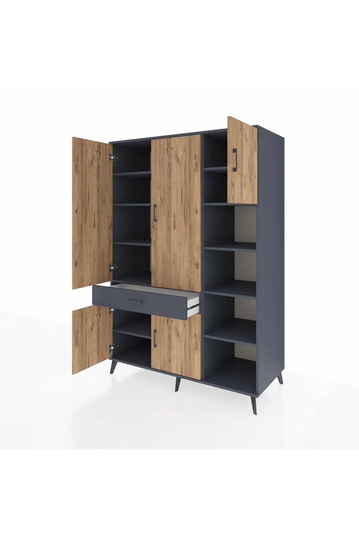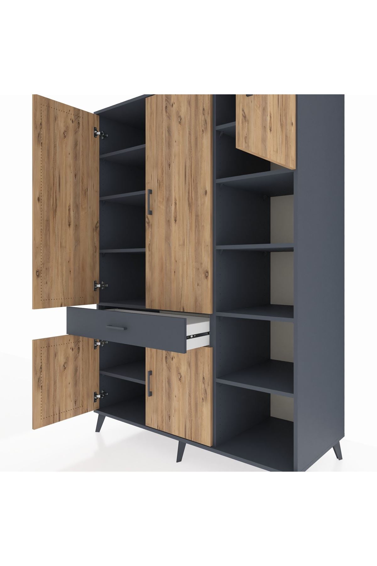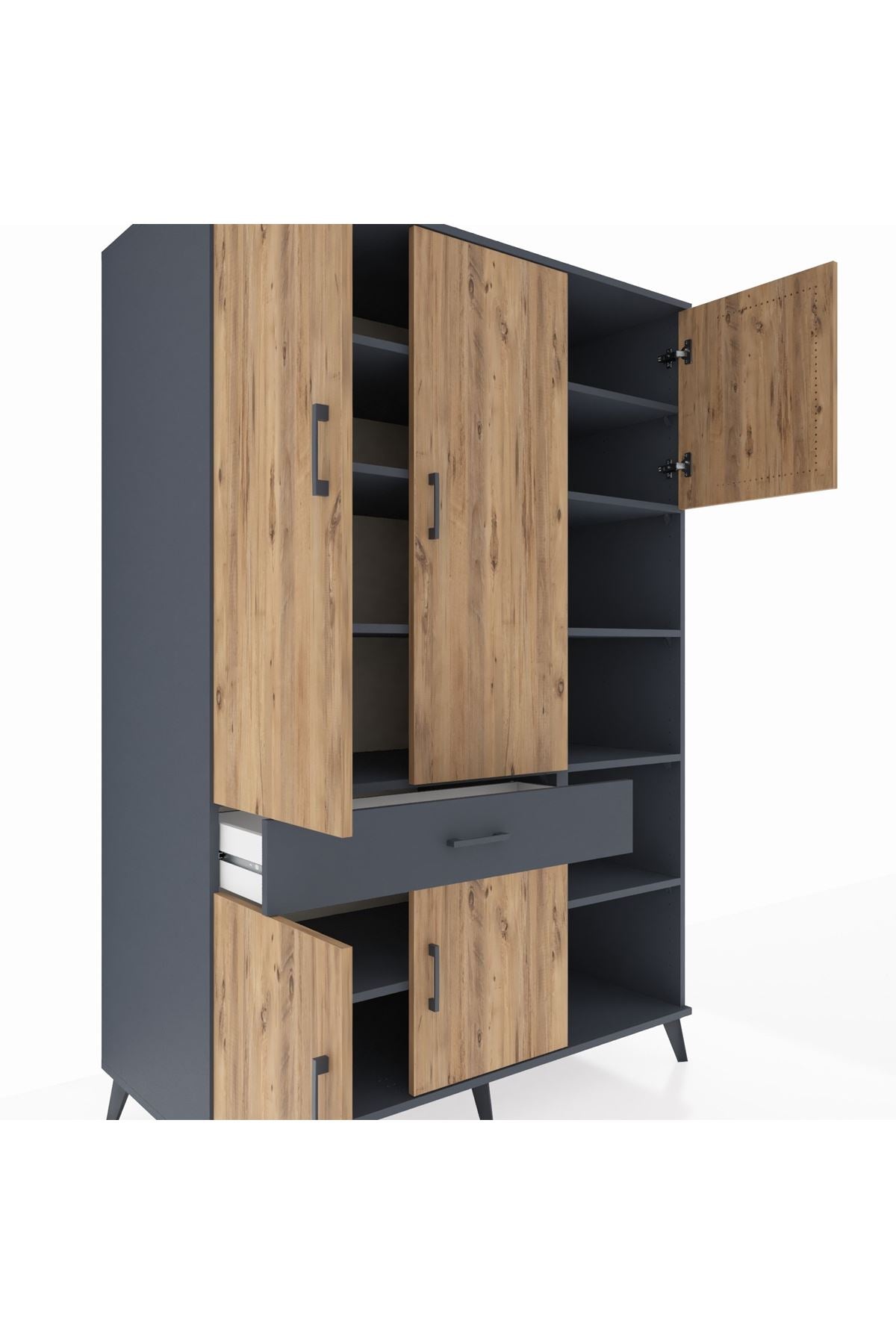 Kronos Dolap 10 Raflı Tek Çekmeceli 5 Kapaklı 132x59x195 Antrasit-Çam/Antrasit