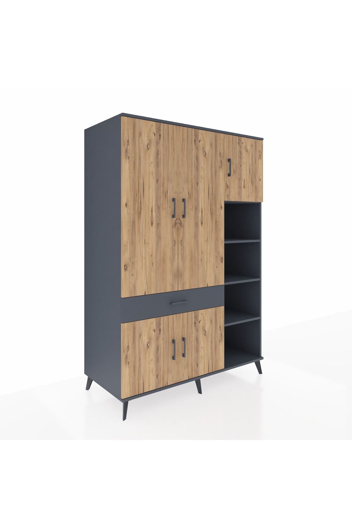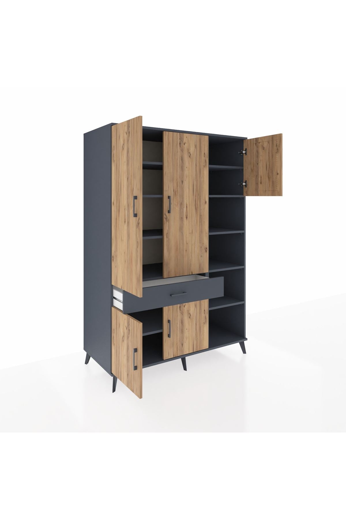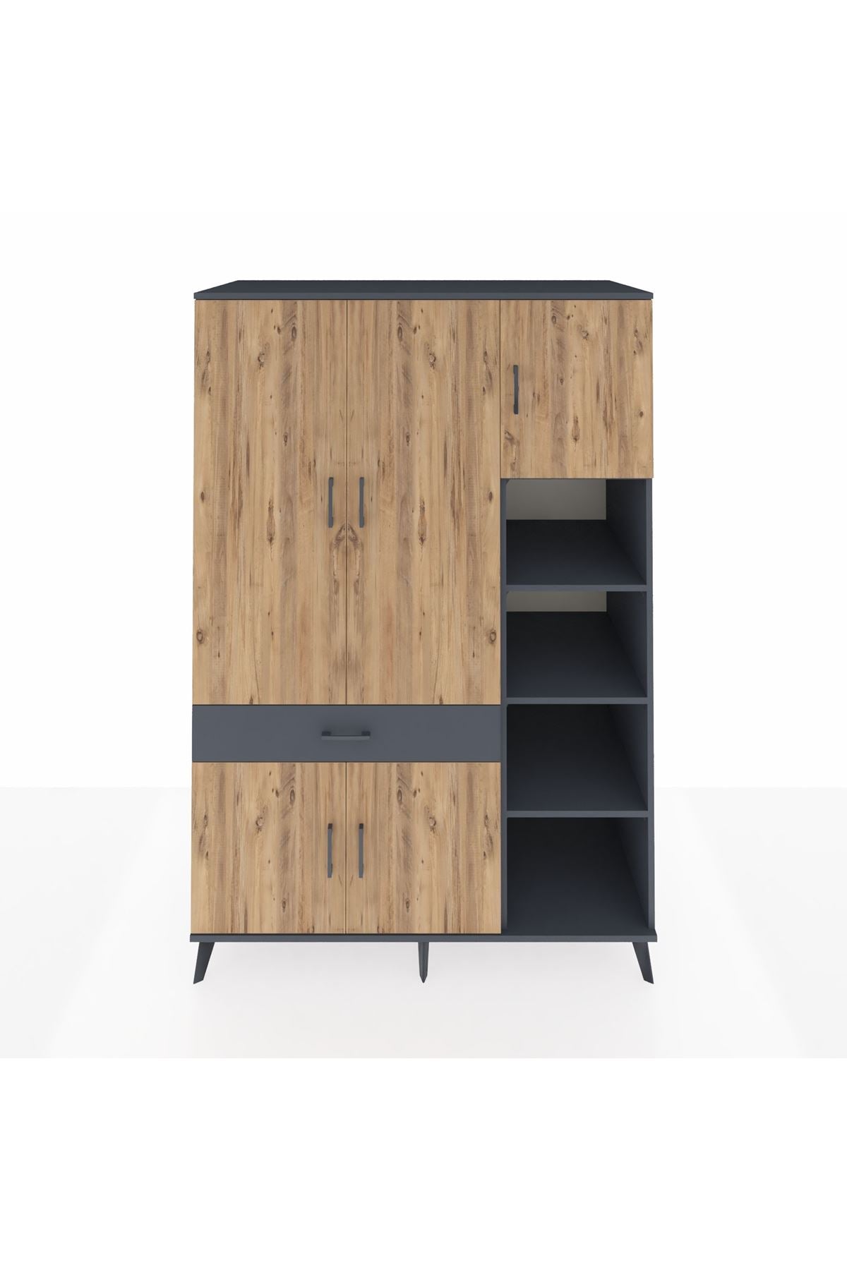 Kronos Dolap 10 Raflı Tek Çekmeceli 5 Kapaklı 132x59x195 Antrasit-Çam/Antrasit