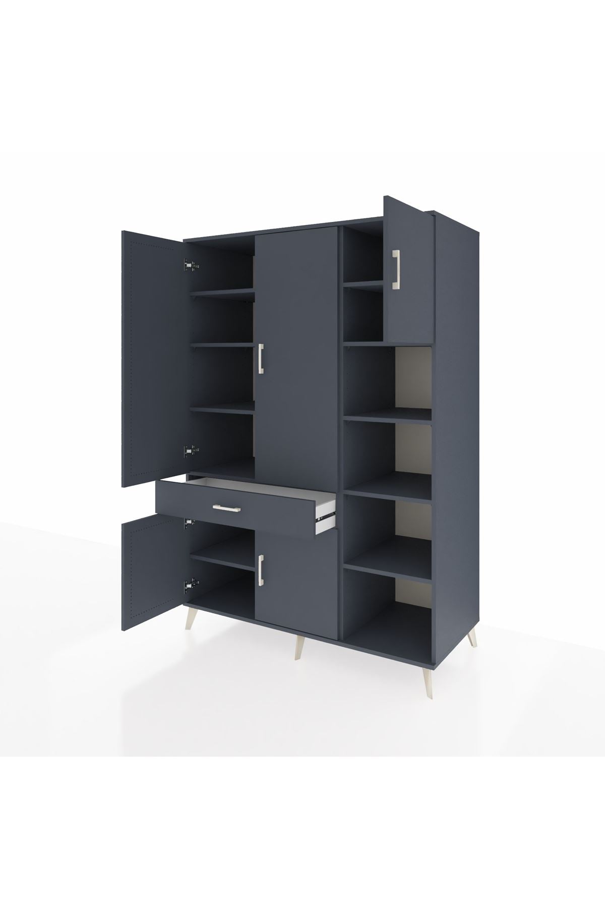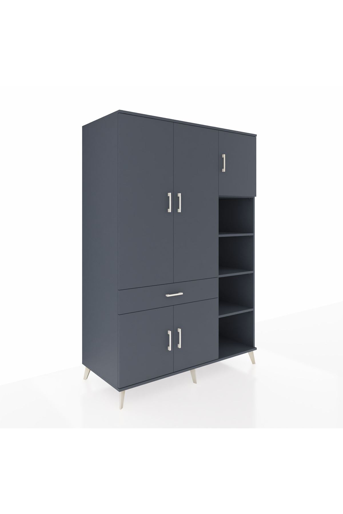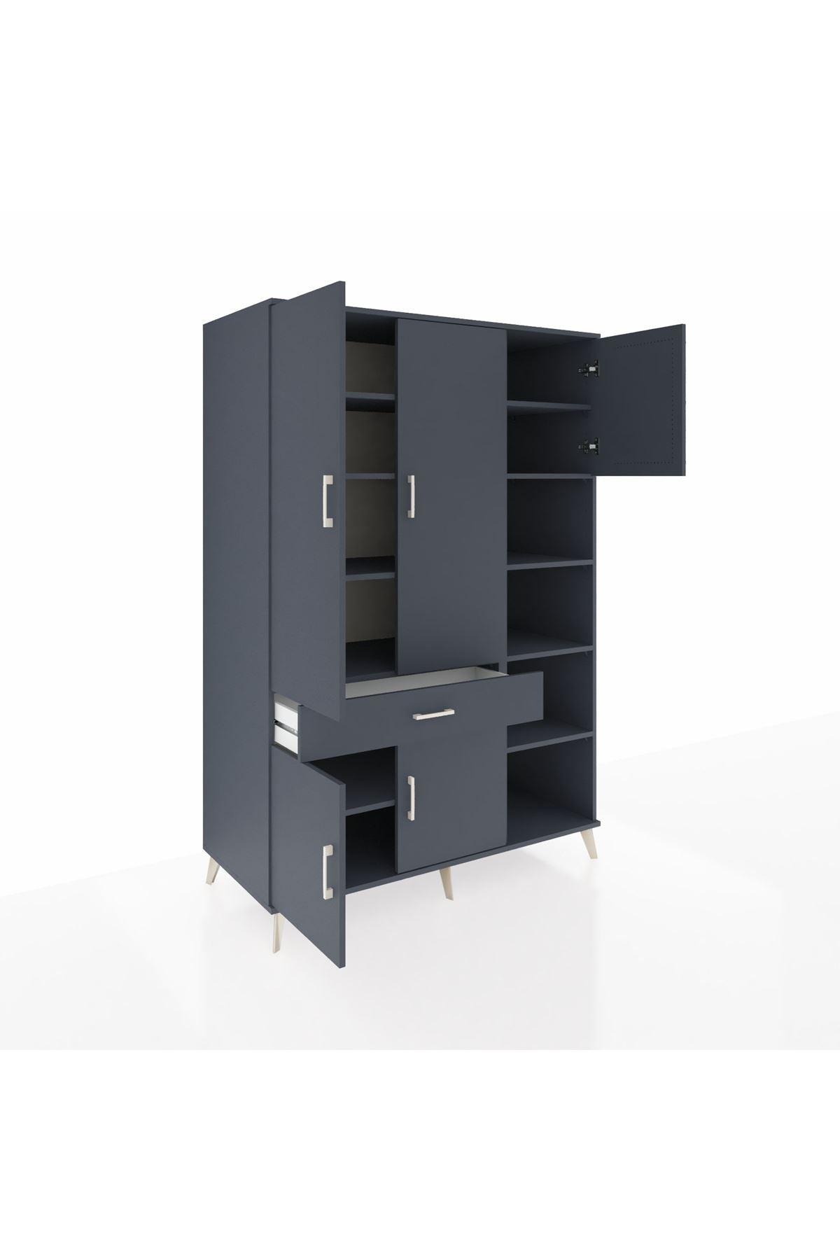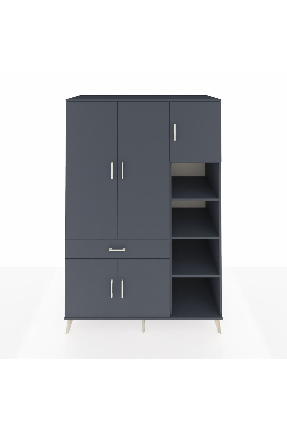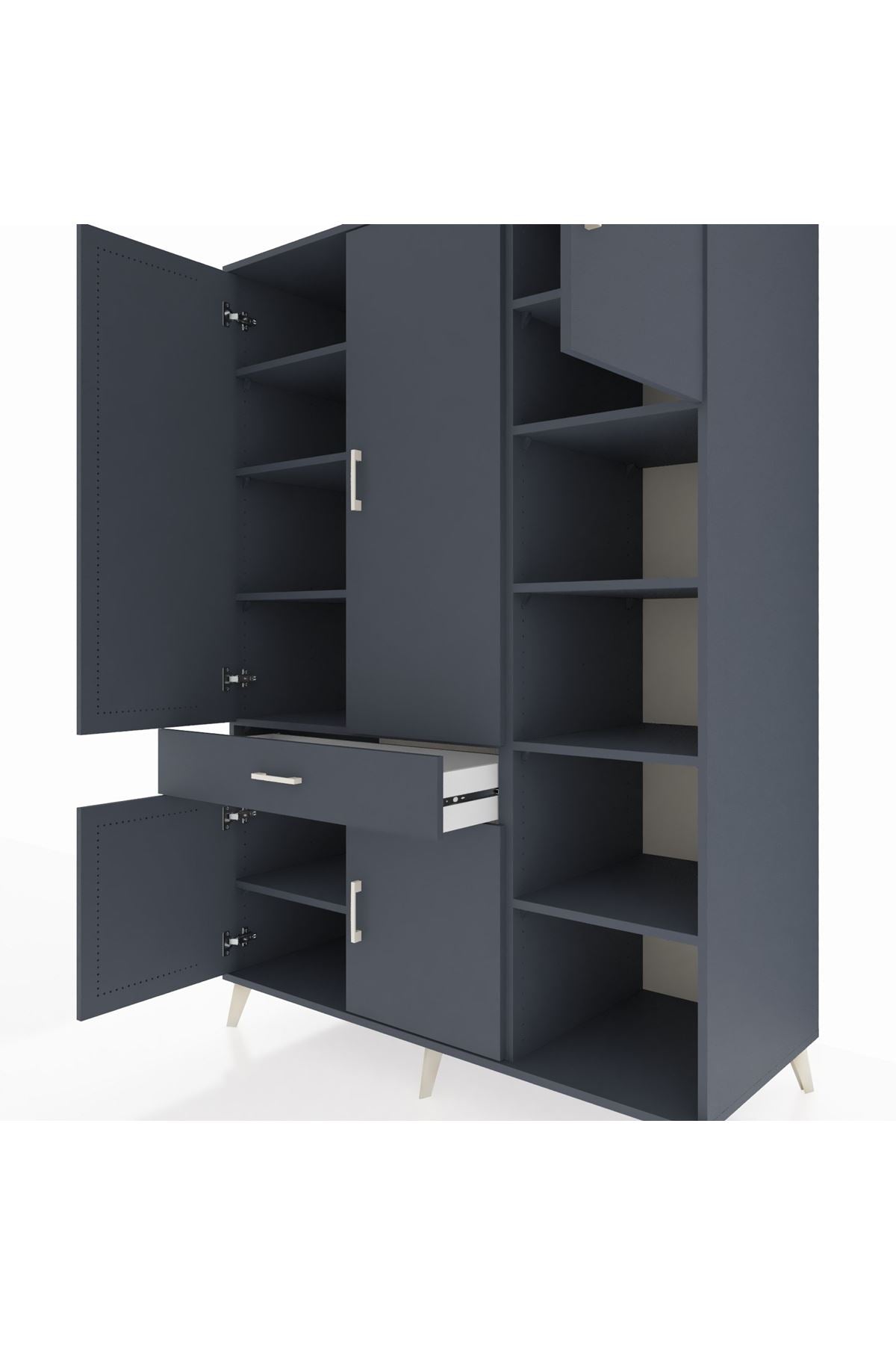 Kronos Dolap 10 Raflı Tek Çekmeceli 5 Kapaklı 132x59x195 Antrasit-Antrasit/Antrasit