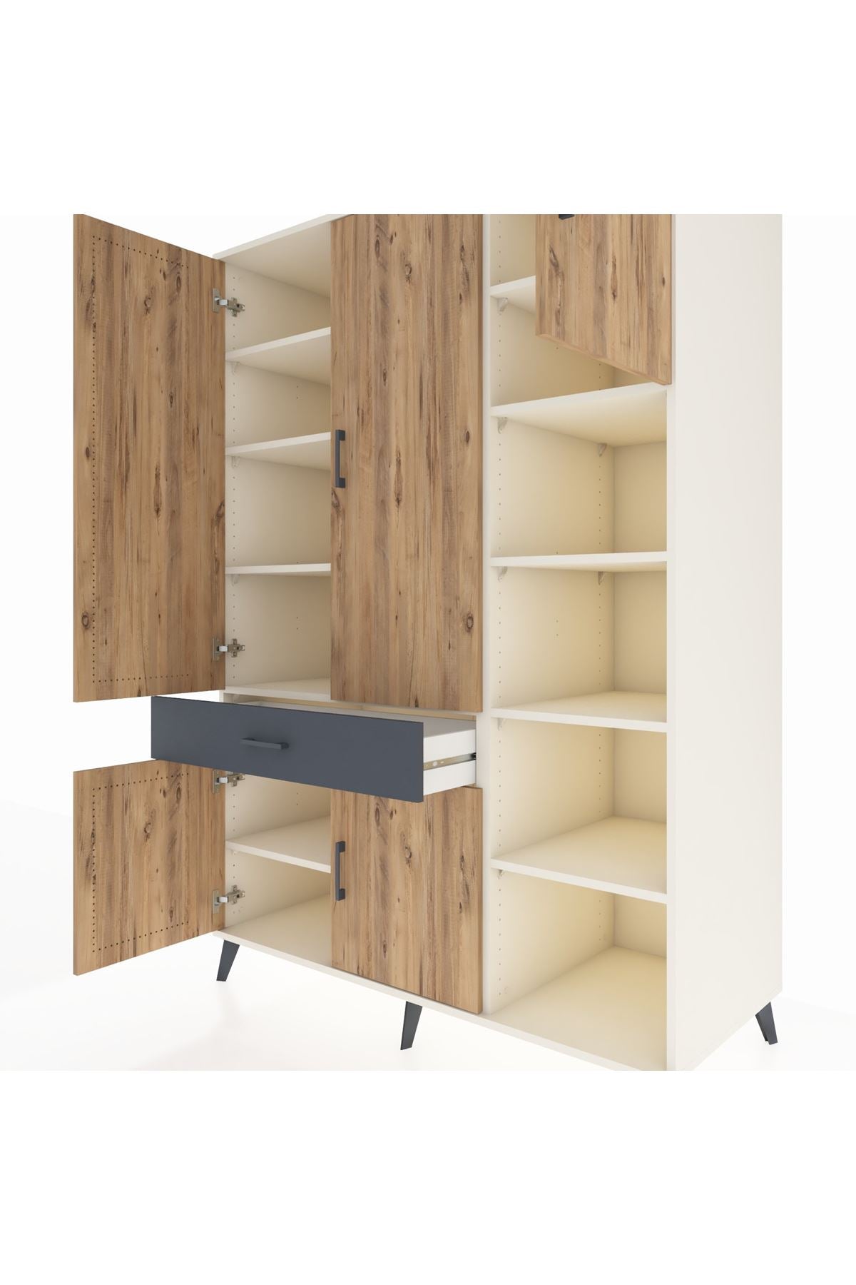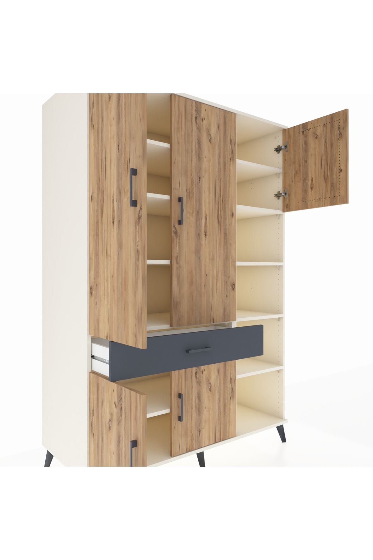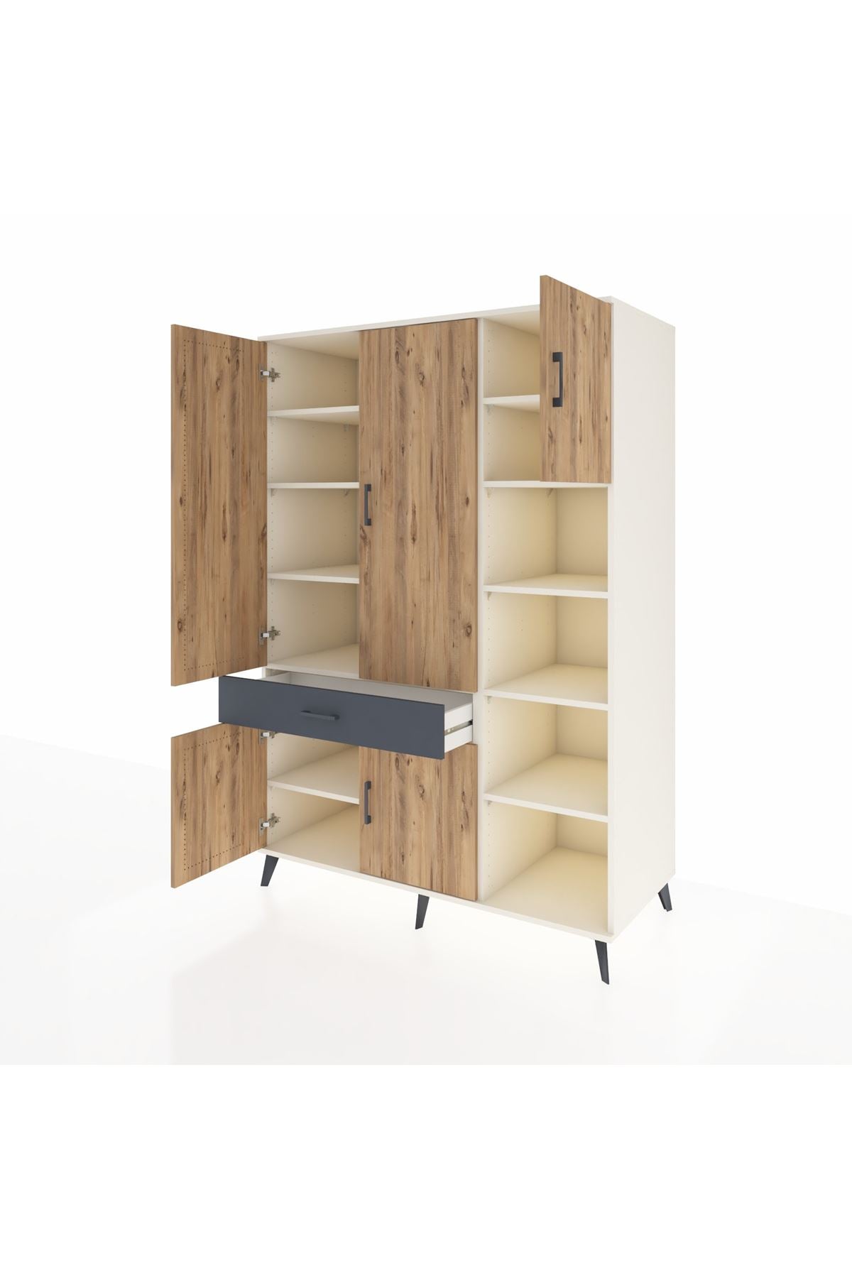 Kronos Dolap 10 Raflı Tek Çekmeceli 5 Kapaklı 132x59x195 Aytaşı-Çam/Antrasit