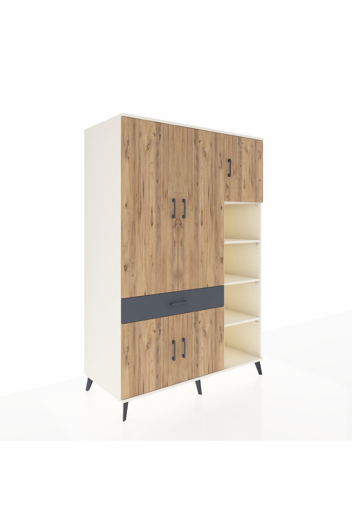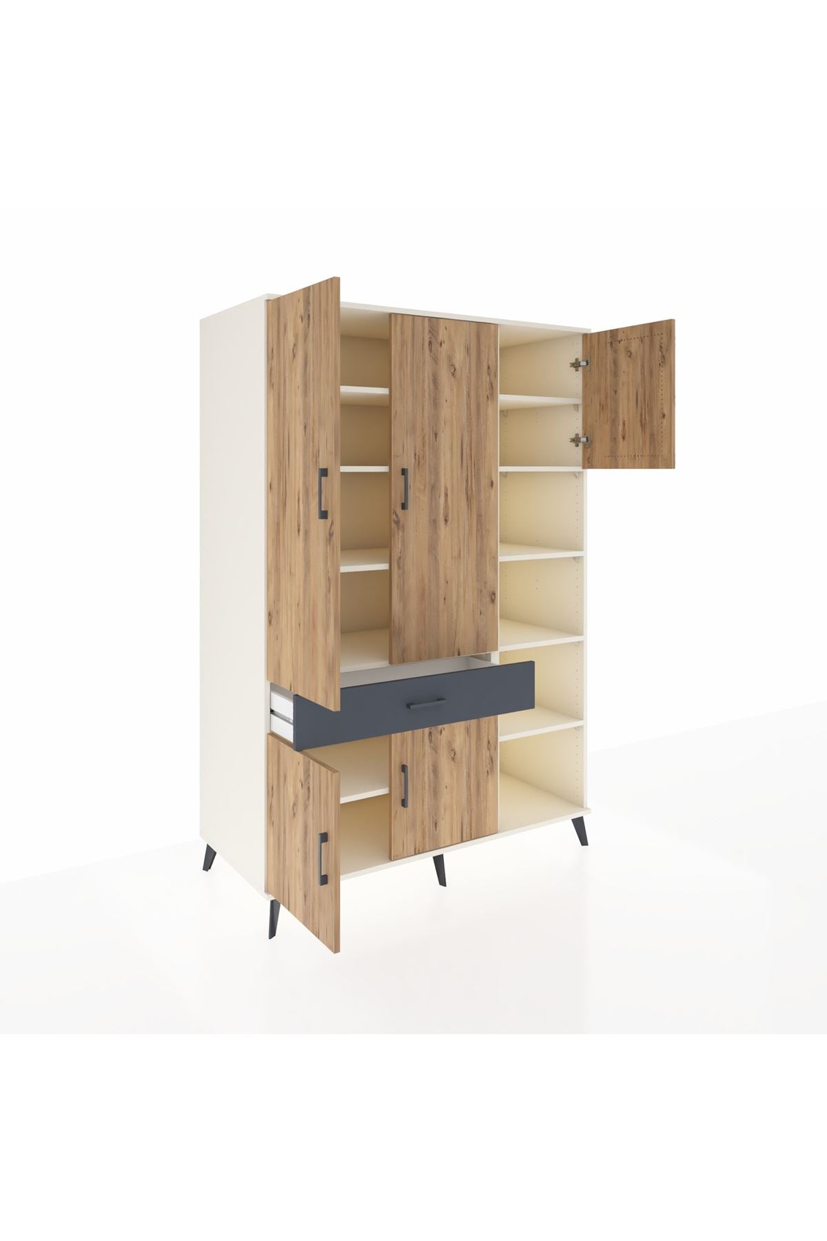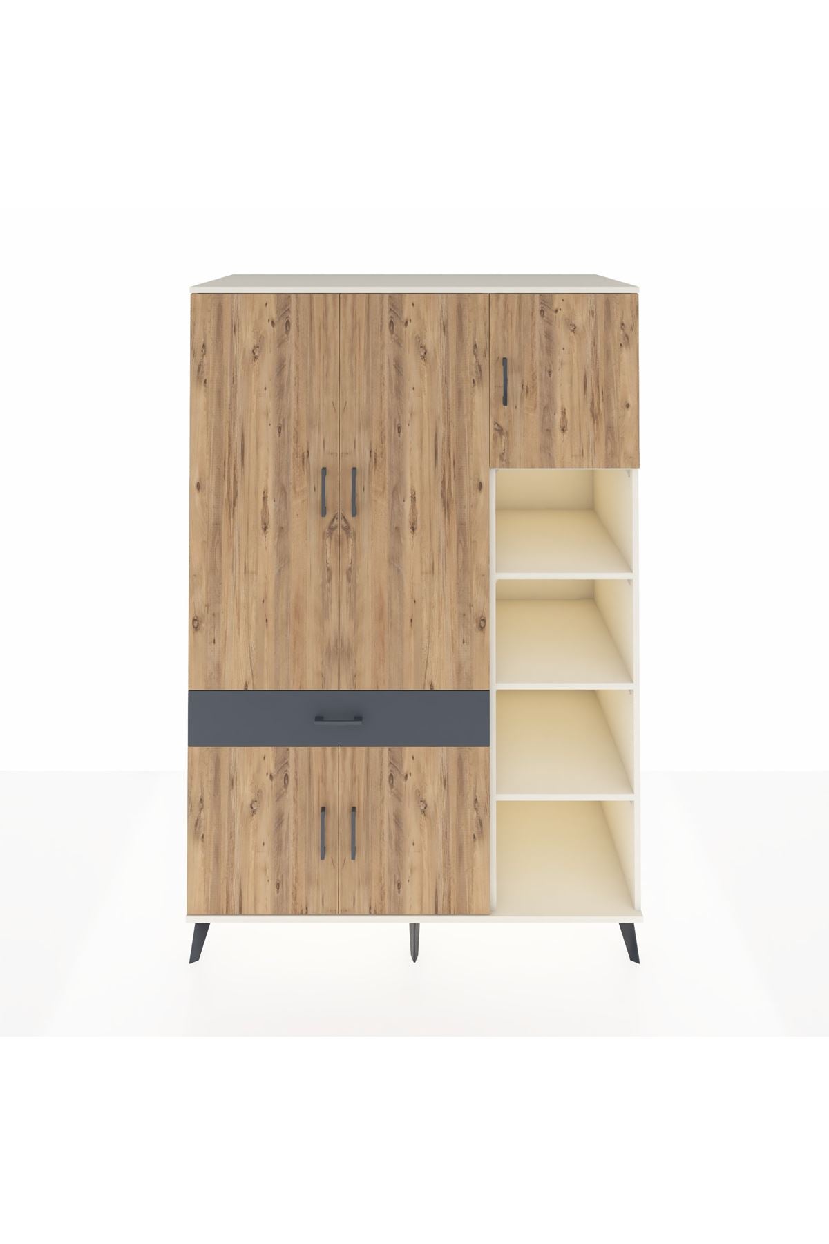 Kronos Dolap 10 Raflı Tek Çekmeceli 5 Kapaklı 132x59x195 Aytaşı-Çam/Antrasit