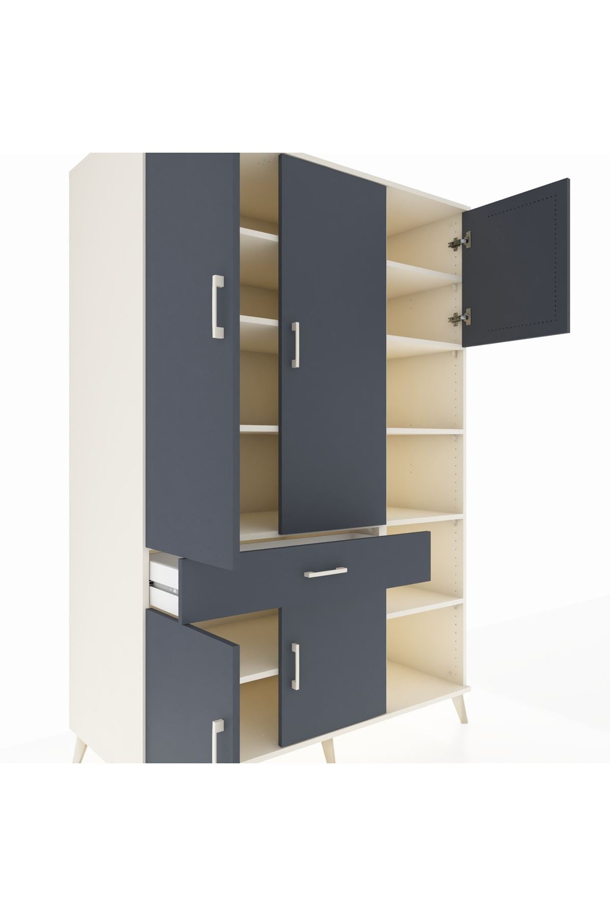 Kronos Dolap 10 Raflı Tek Çekmeceli 5 Kapaklı 132x59x195 Aytaşı-Antrasit/Antrasit