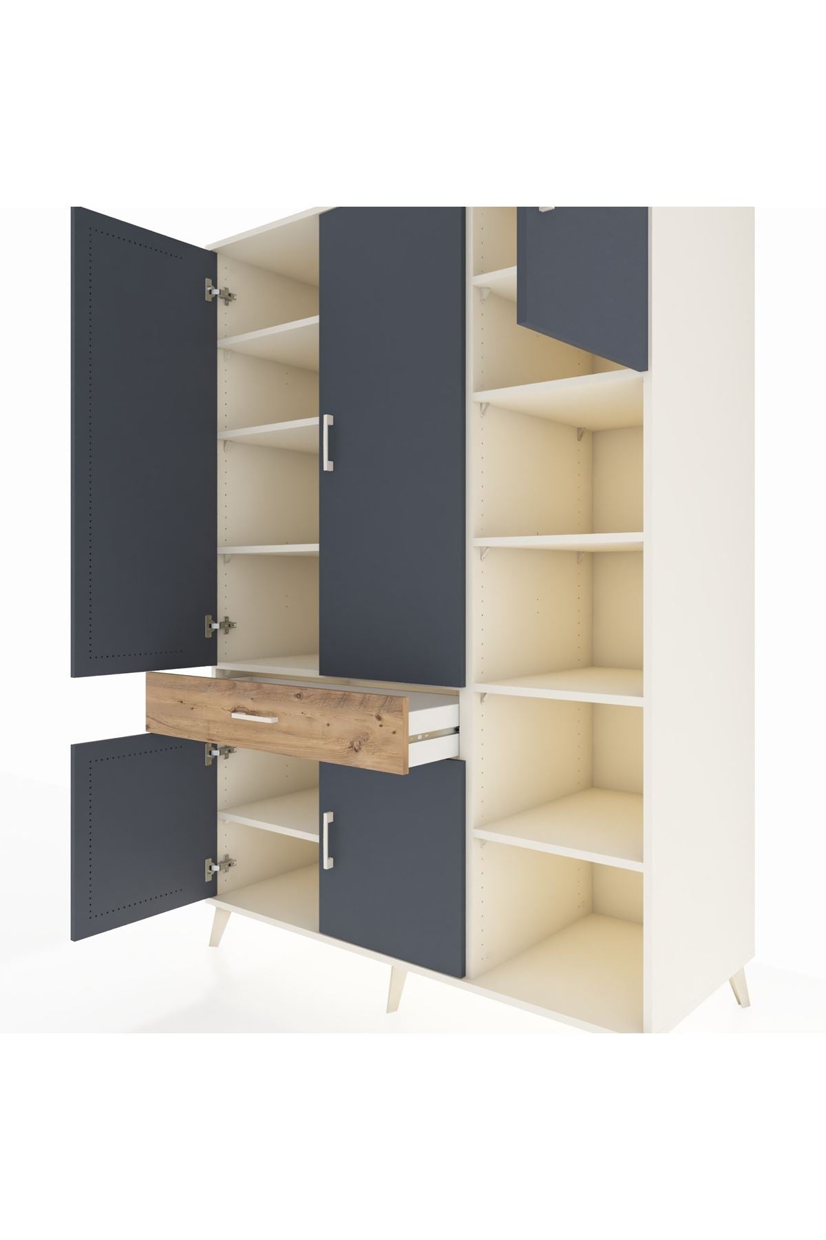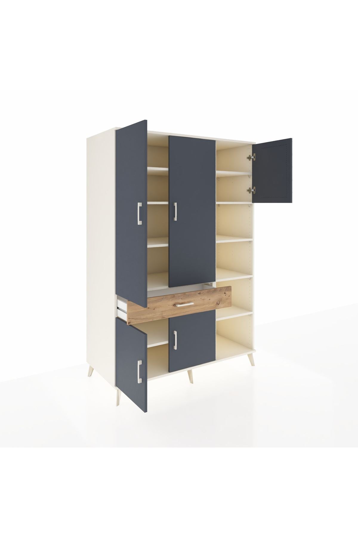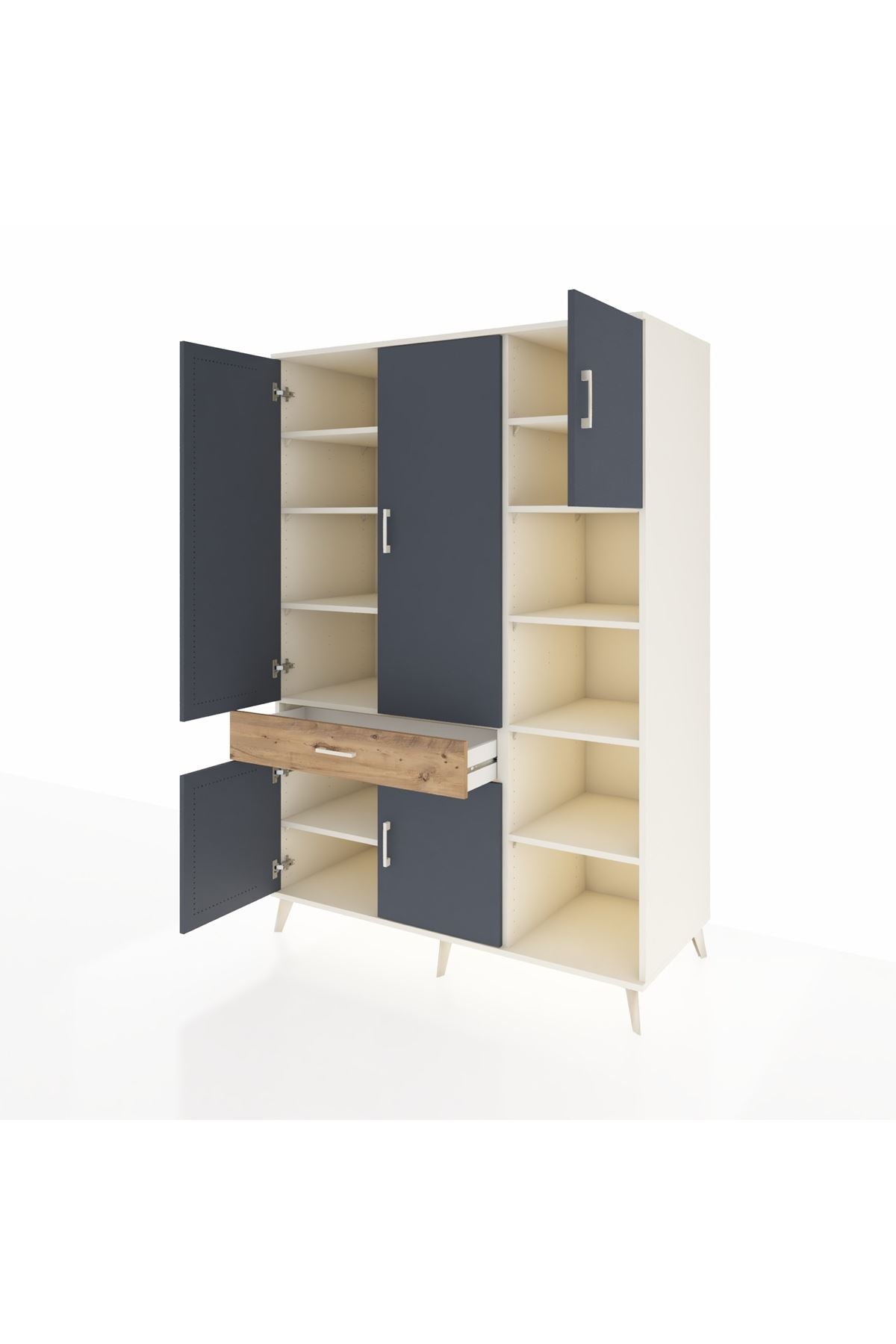 Kronos Dolap 10 Raflı Tek Çekmeceli 5 Kapaklı 132x59x195 Aytaşı-Antrasit/Çam