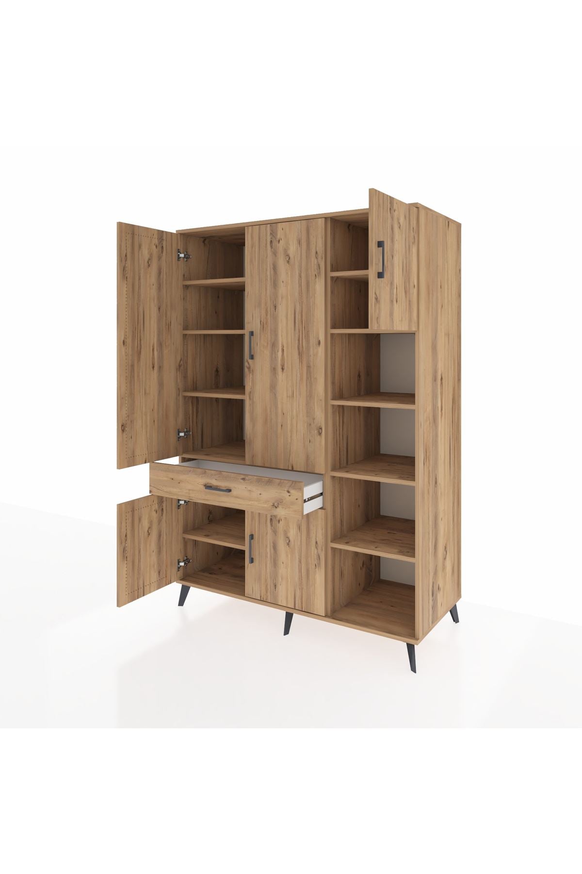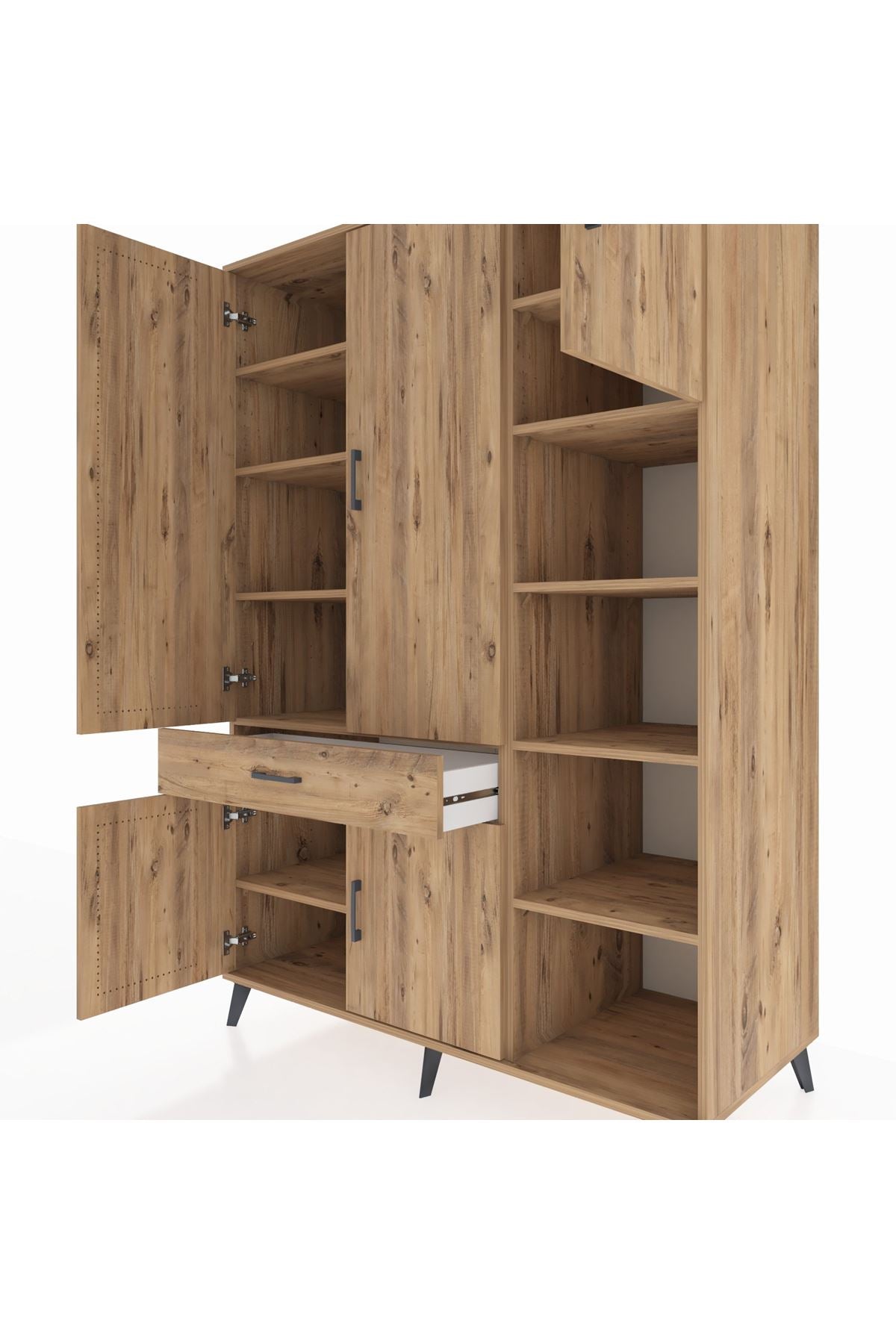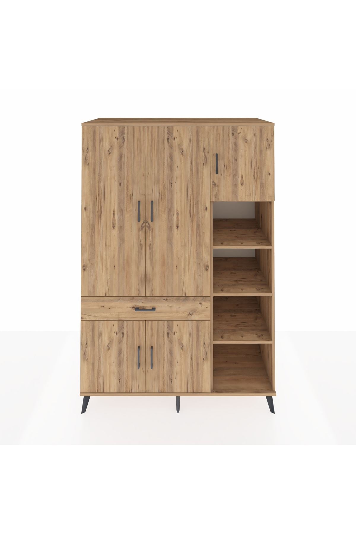 Kronos Dolap 10 Raflı Tek Çekmeceli 5 Kapaklı 132x59x195 Çam-Çam/Çam