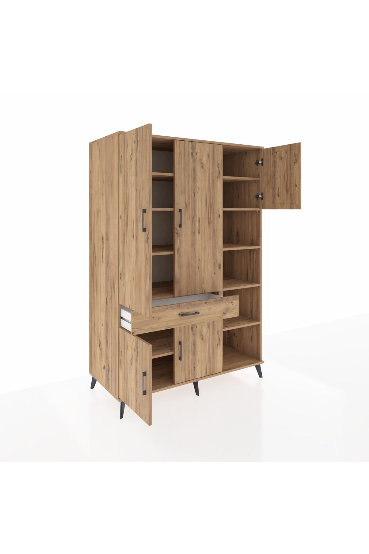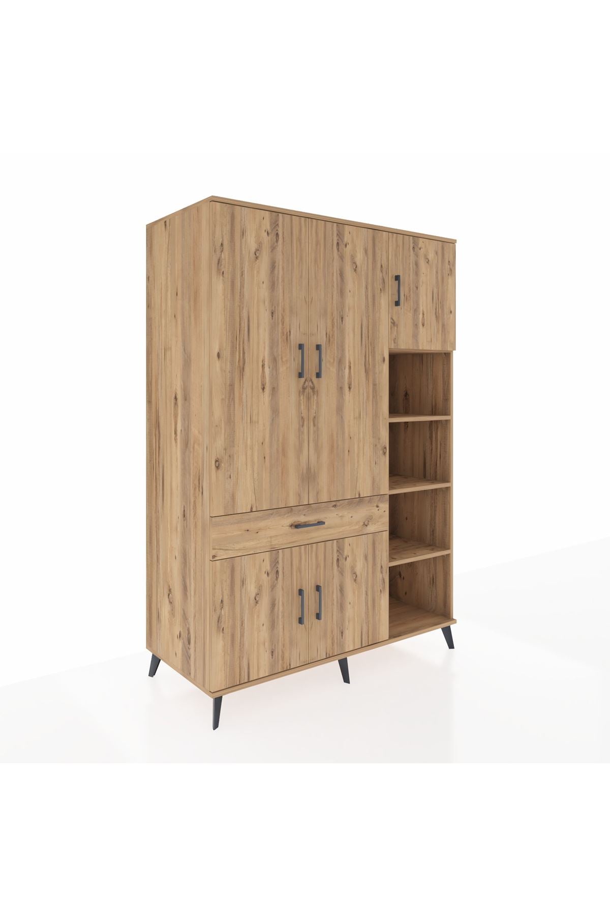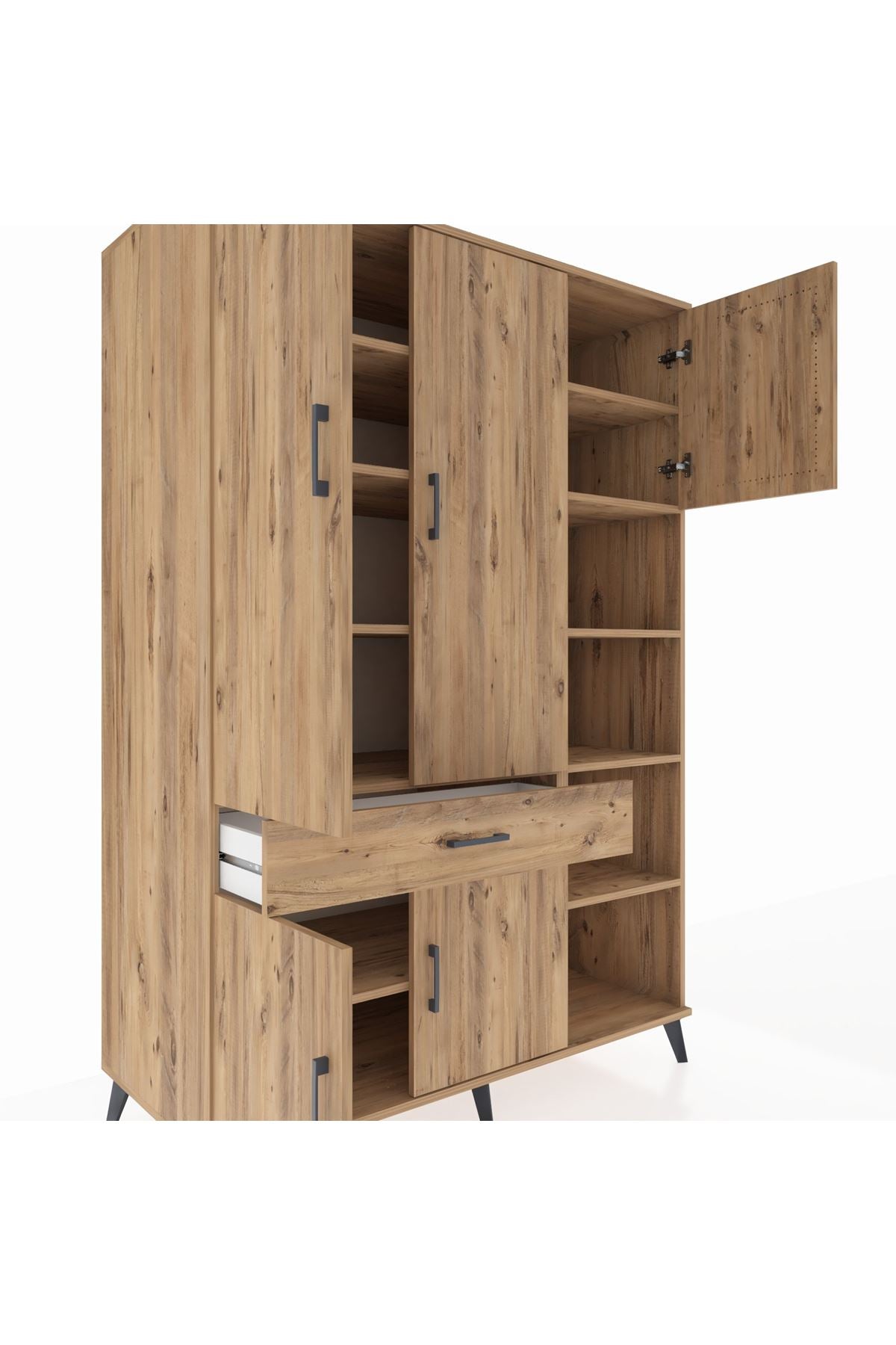 Kronos Dolap 10 Raflı Tek Çekmeceli 5 Kapaklı 132x59x195 Çam-Çam/Çam