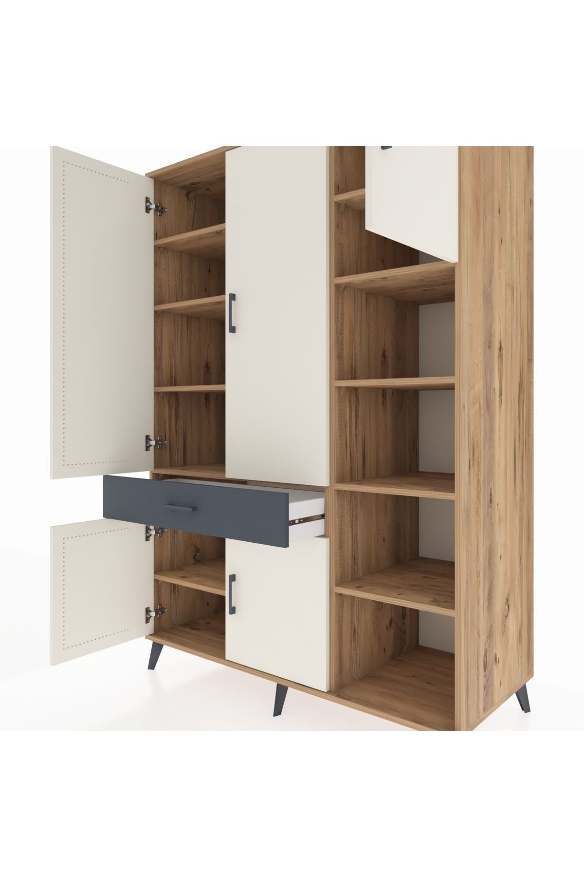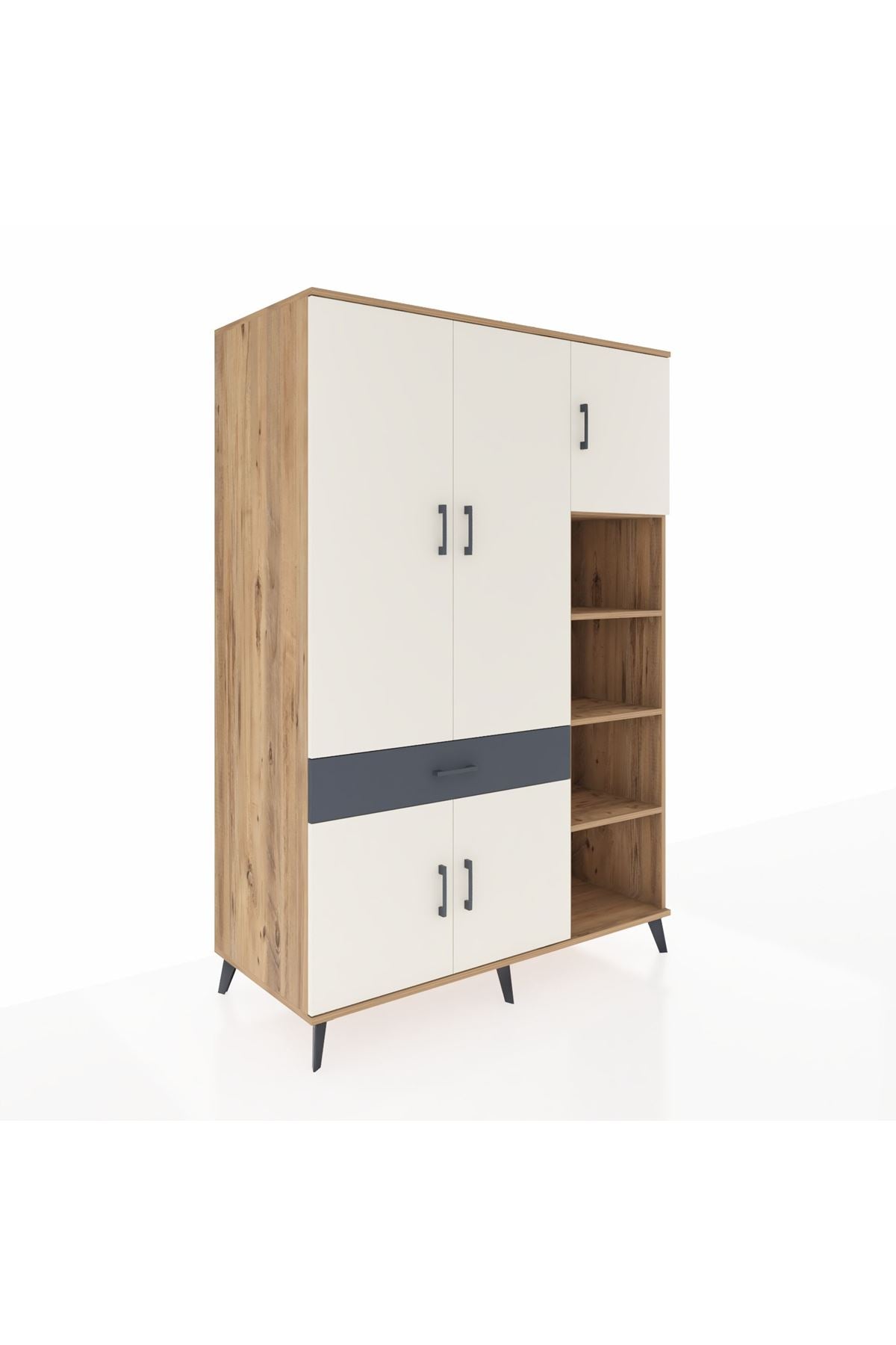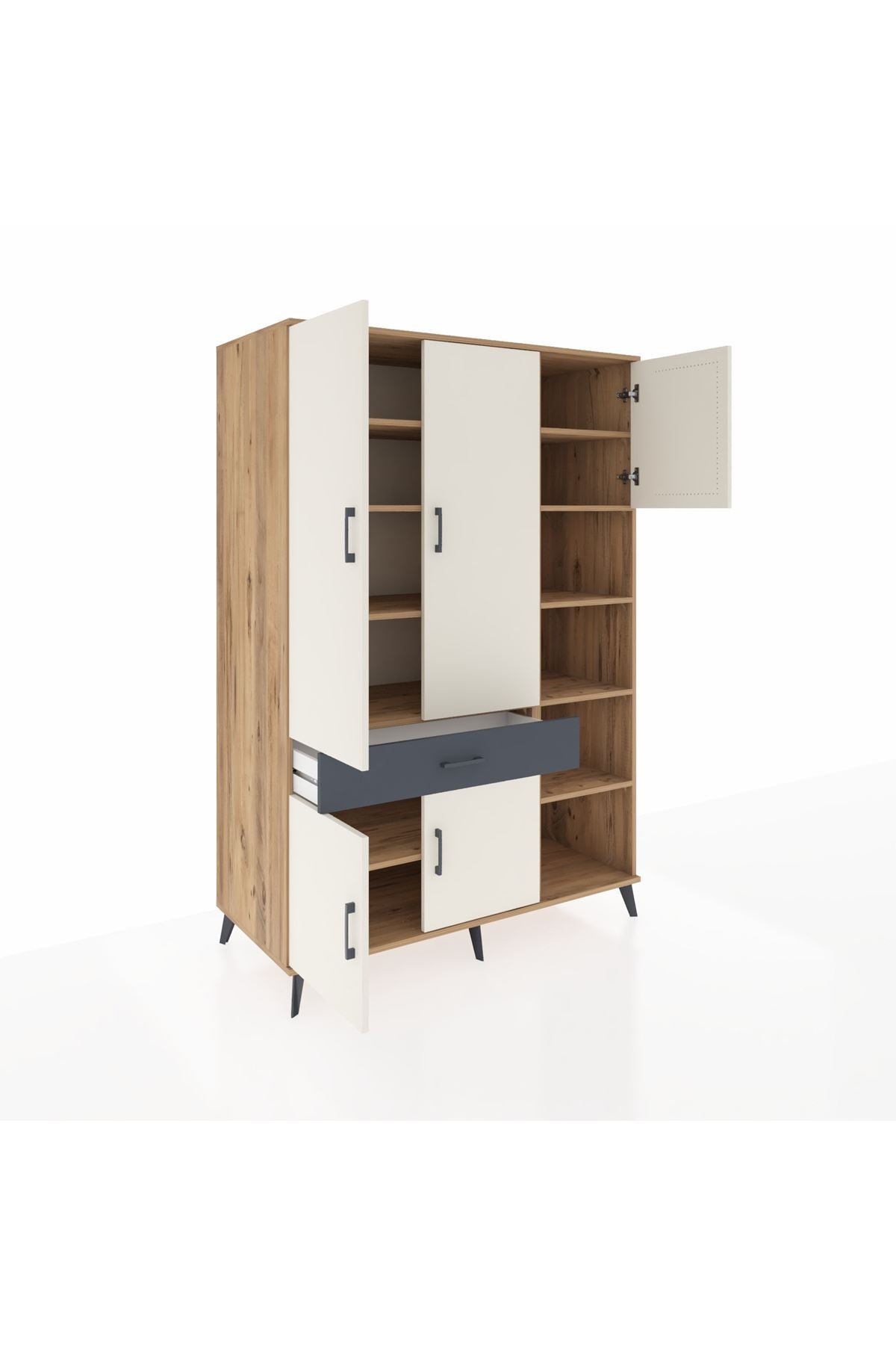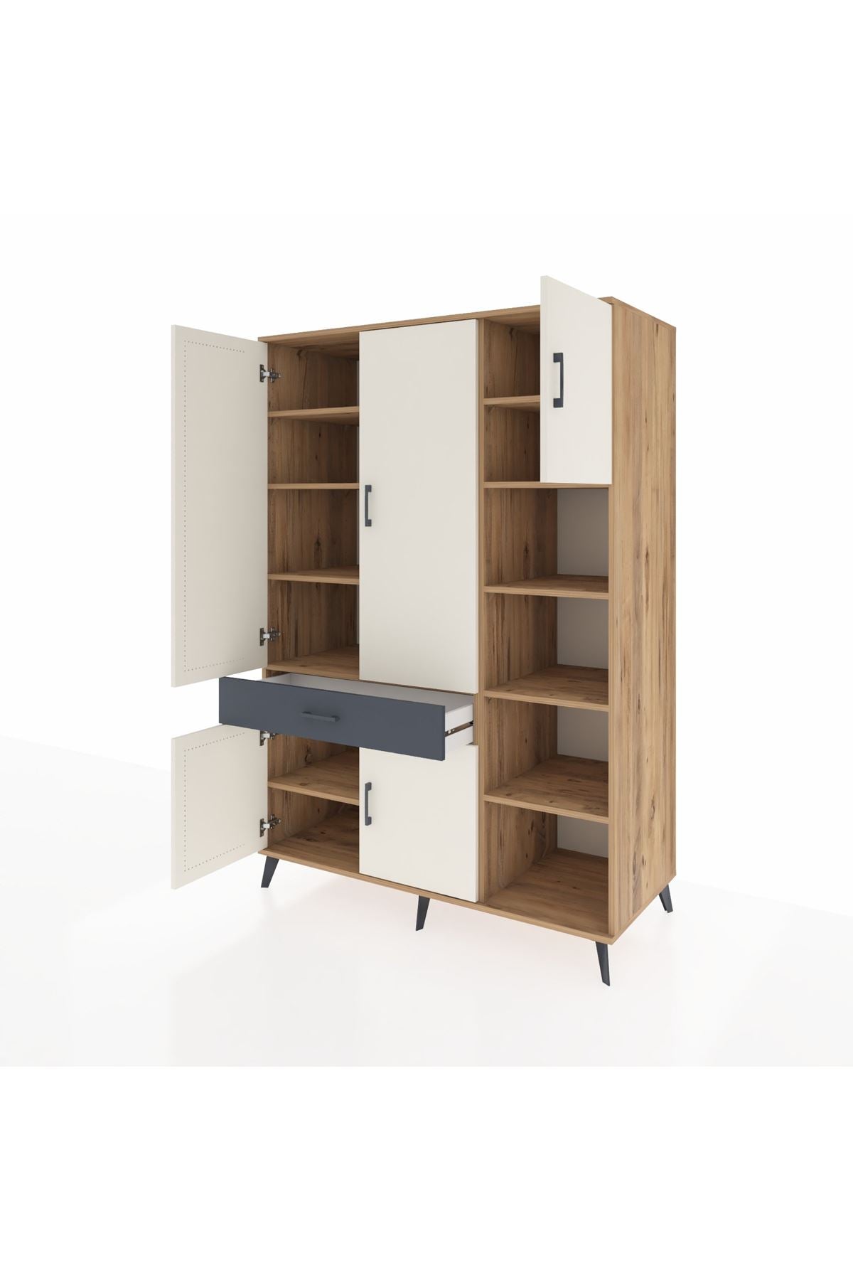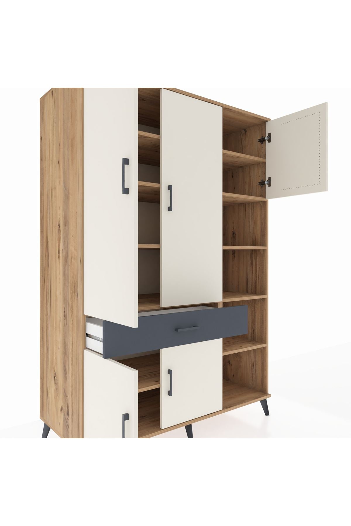 Kronos Dolap 10 Raflı Tek Çekmeceli 5 Kapaklı 132x59x195 Çam-Aytaşı/Antrasit