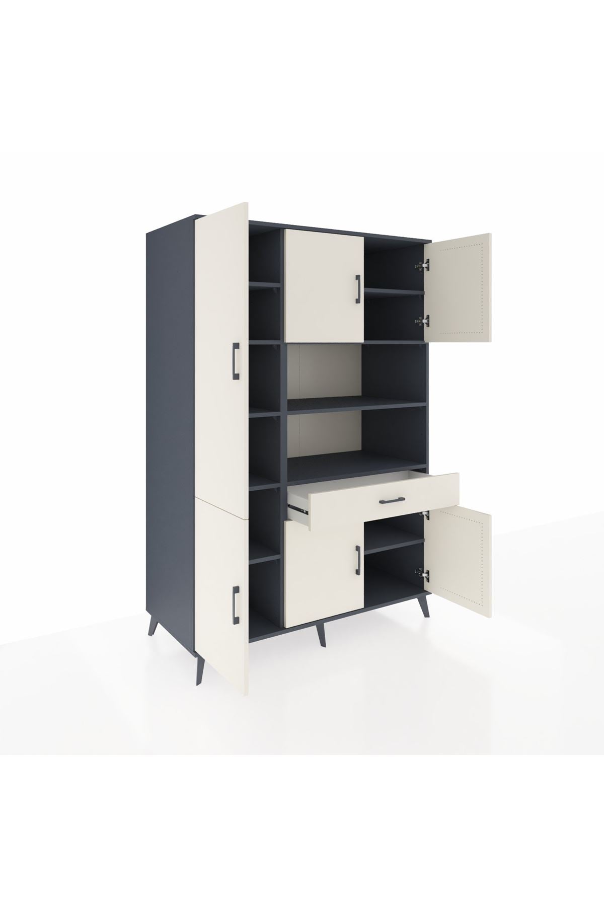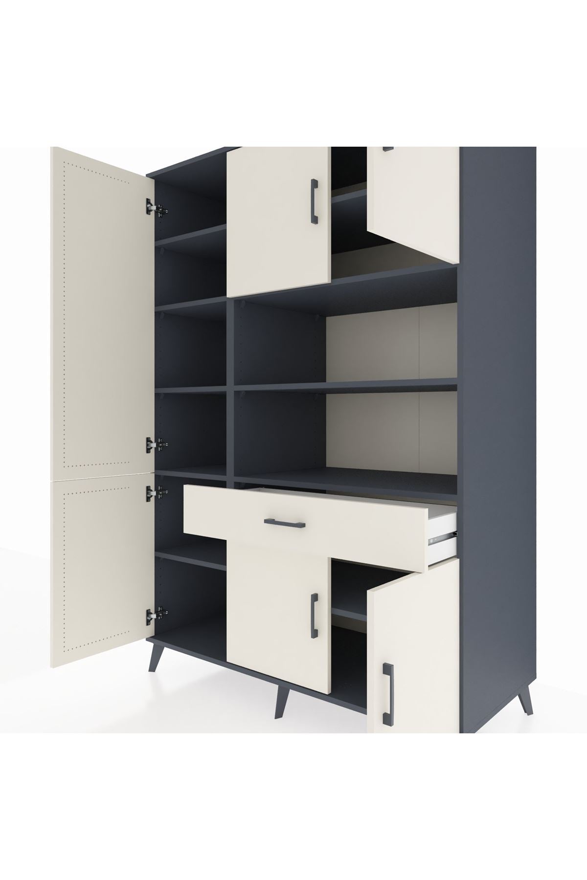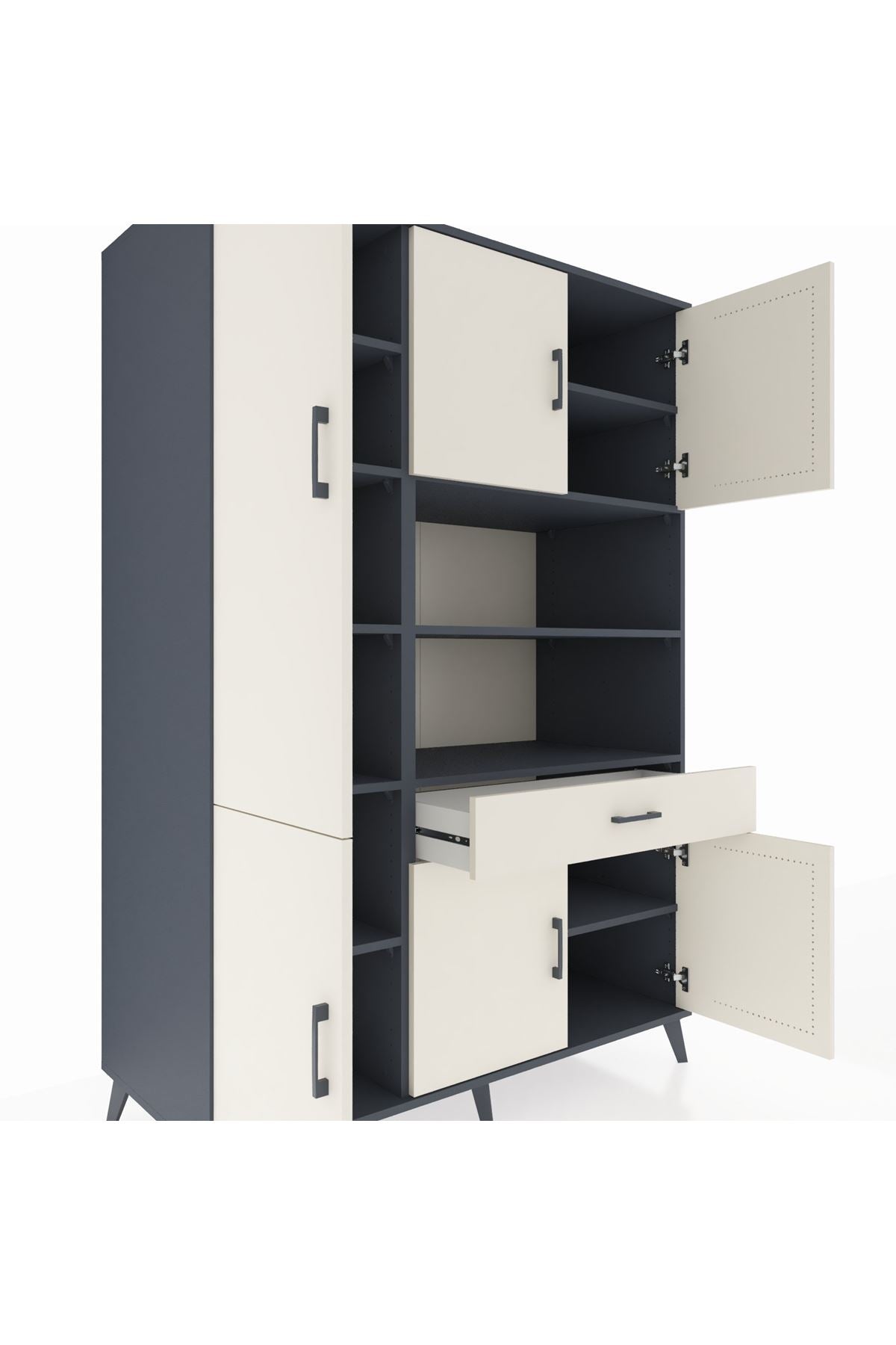 10 adet geniş rafı, 6 kapaklı tasarımı ve tek çekmecesi sayesinde eşyalarınızı kategorize ederek düzenli tutabilirsiniz 🗂️.