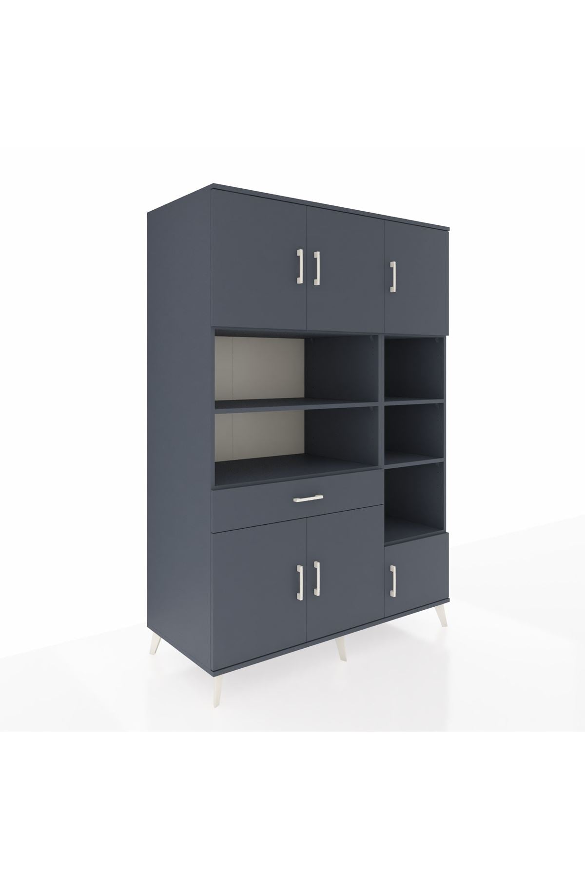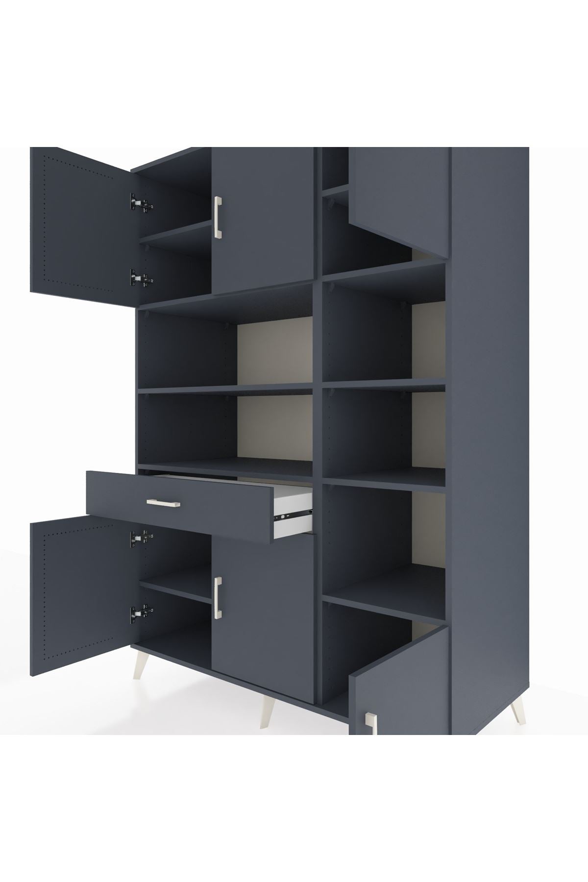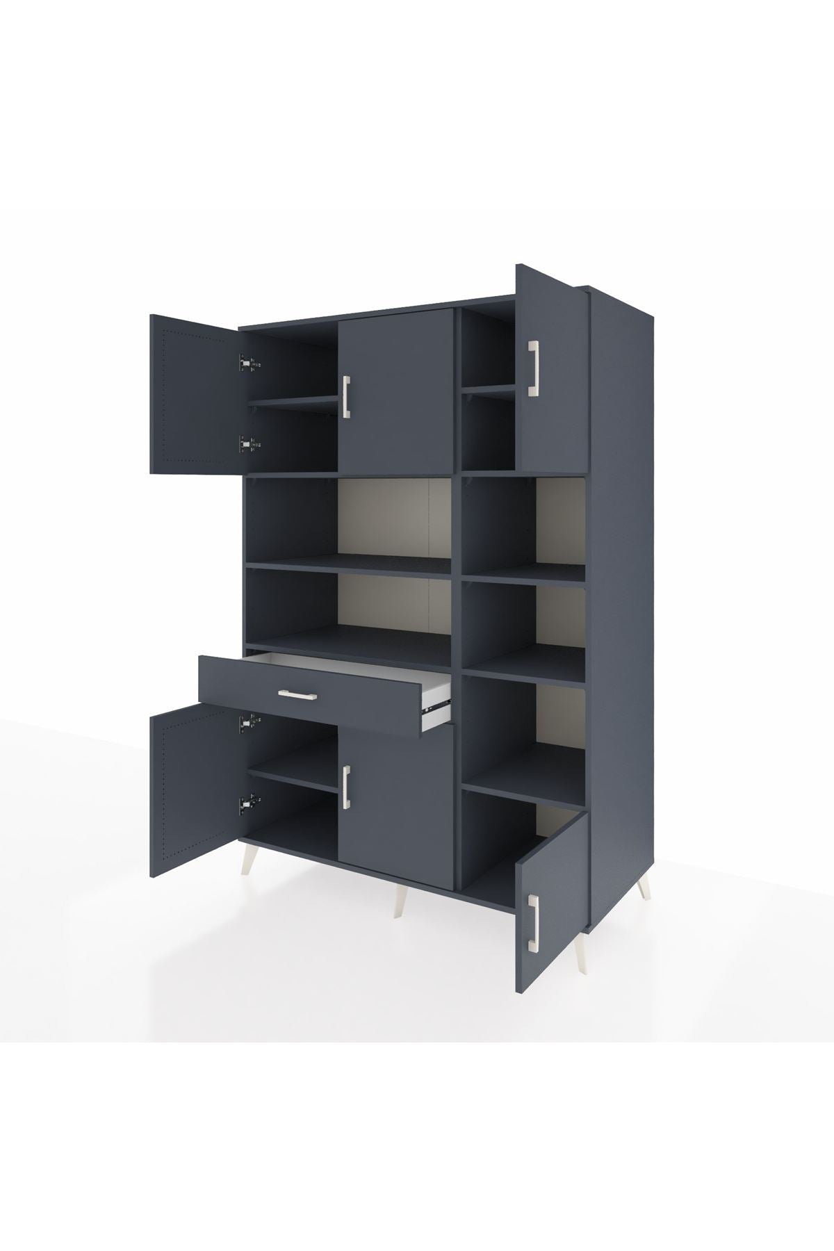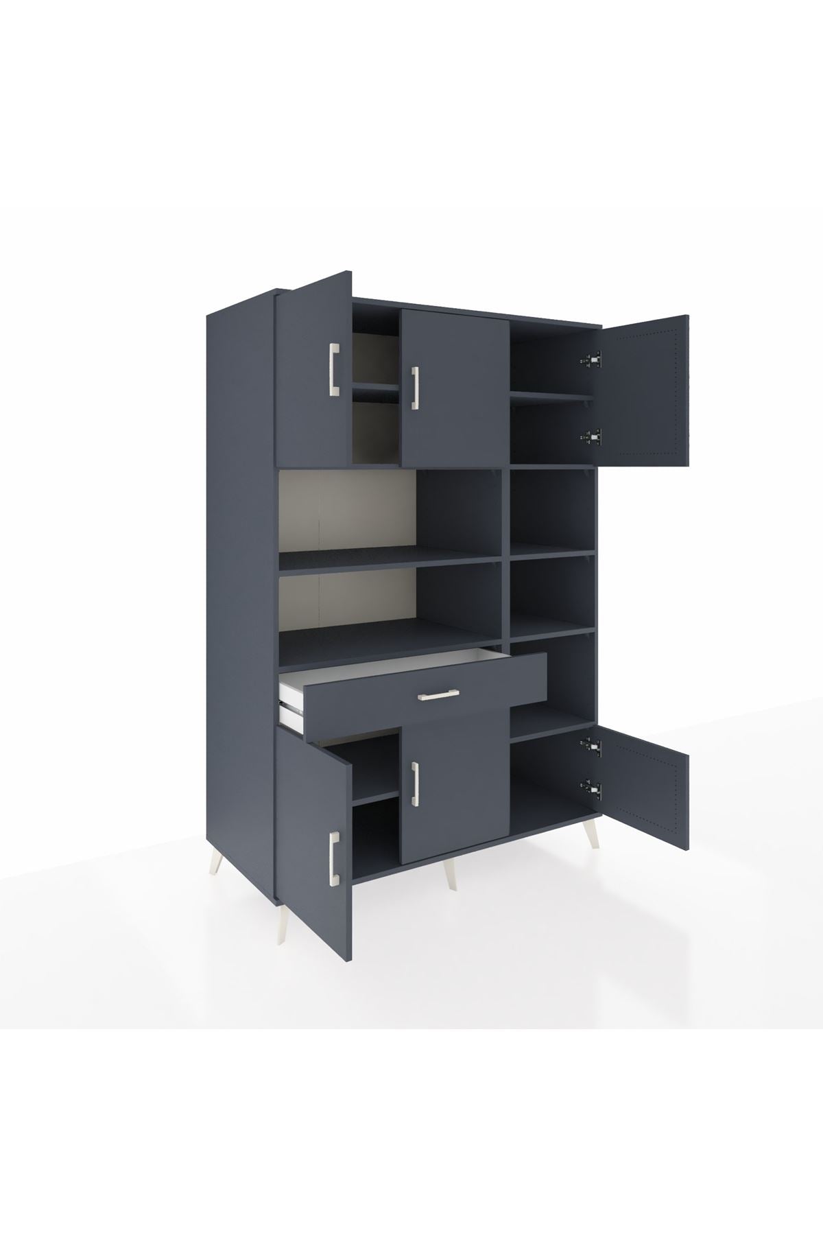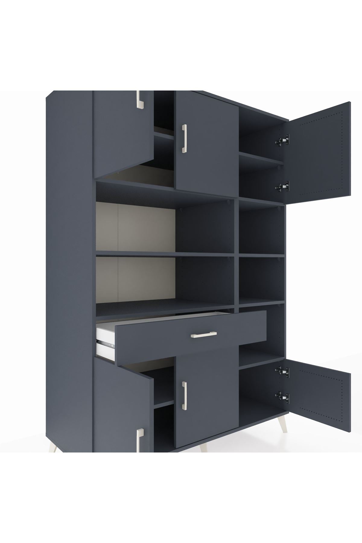 Kronos Dolap 10 Raflı Tek Çekmeceli 6 Kapaklı 132x59x195 Antrasit-Antrasit/Antrasit