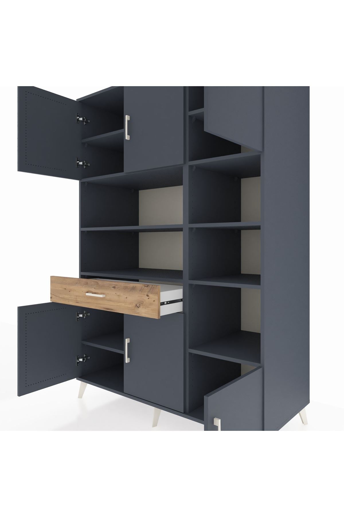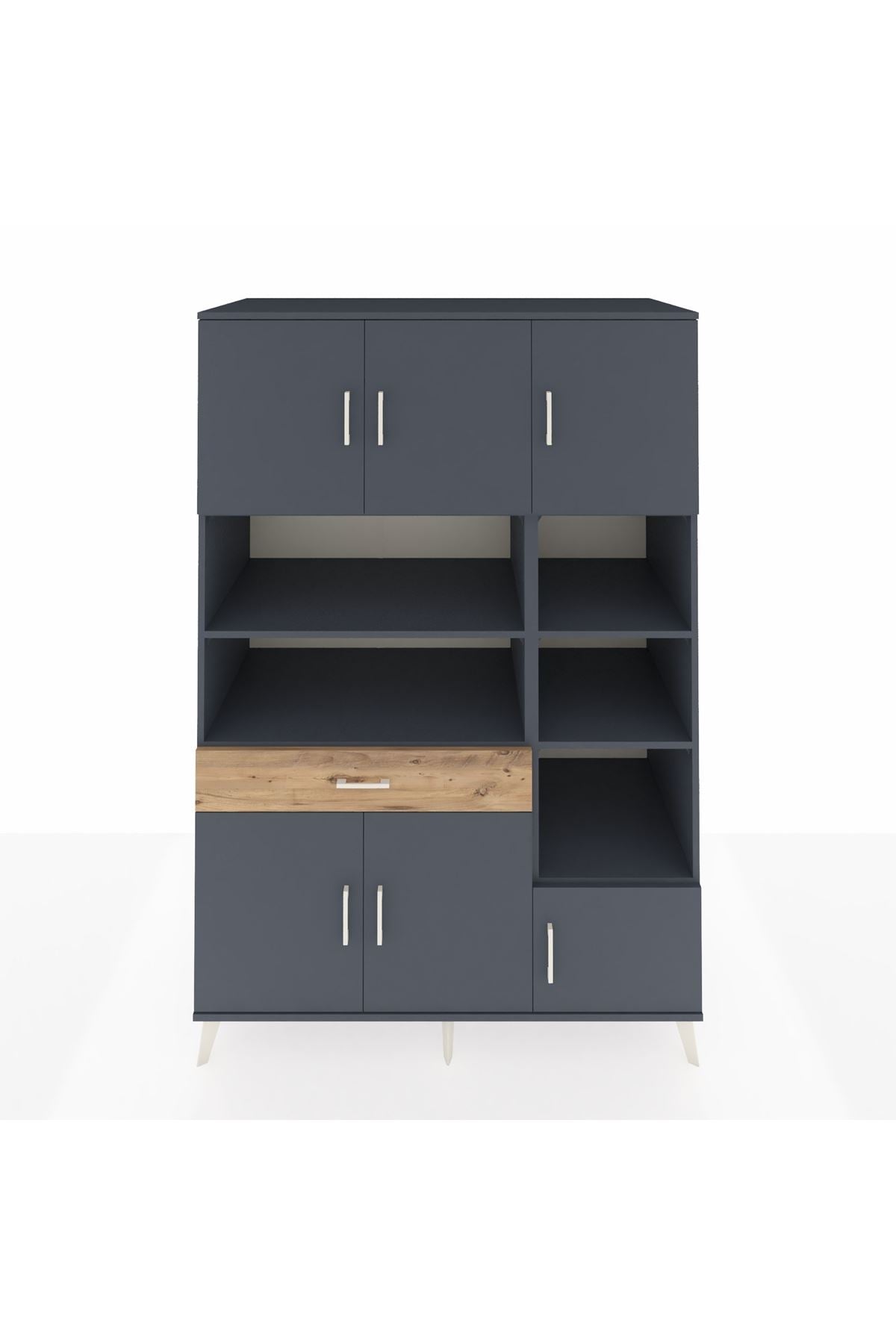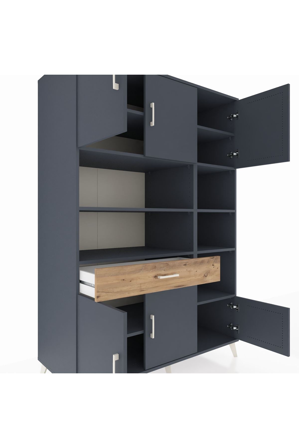 Kronos Dolap 10 Raflı Tek Çekmeceli 6 Kapaklı 132x59x195 Antrasit-Antrasit/Çam