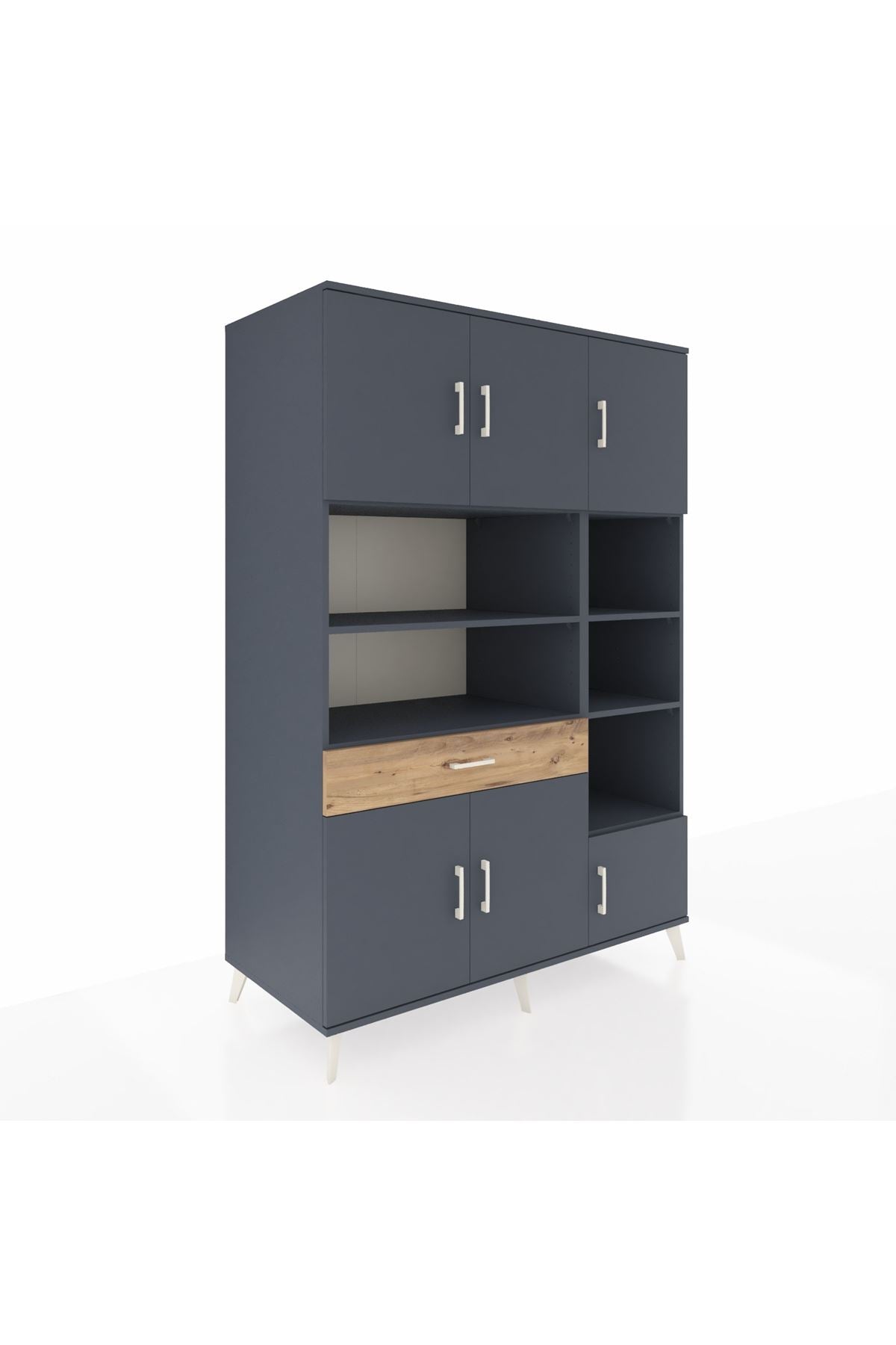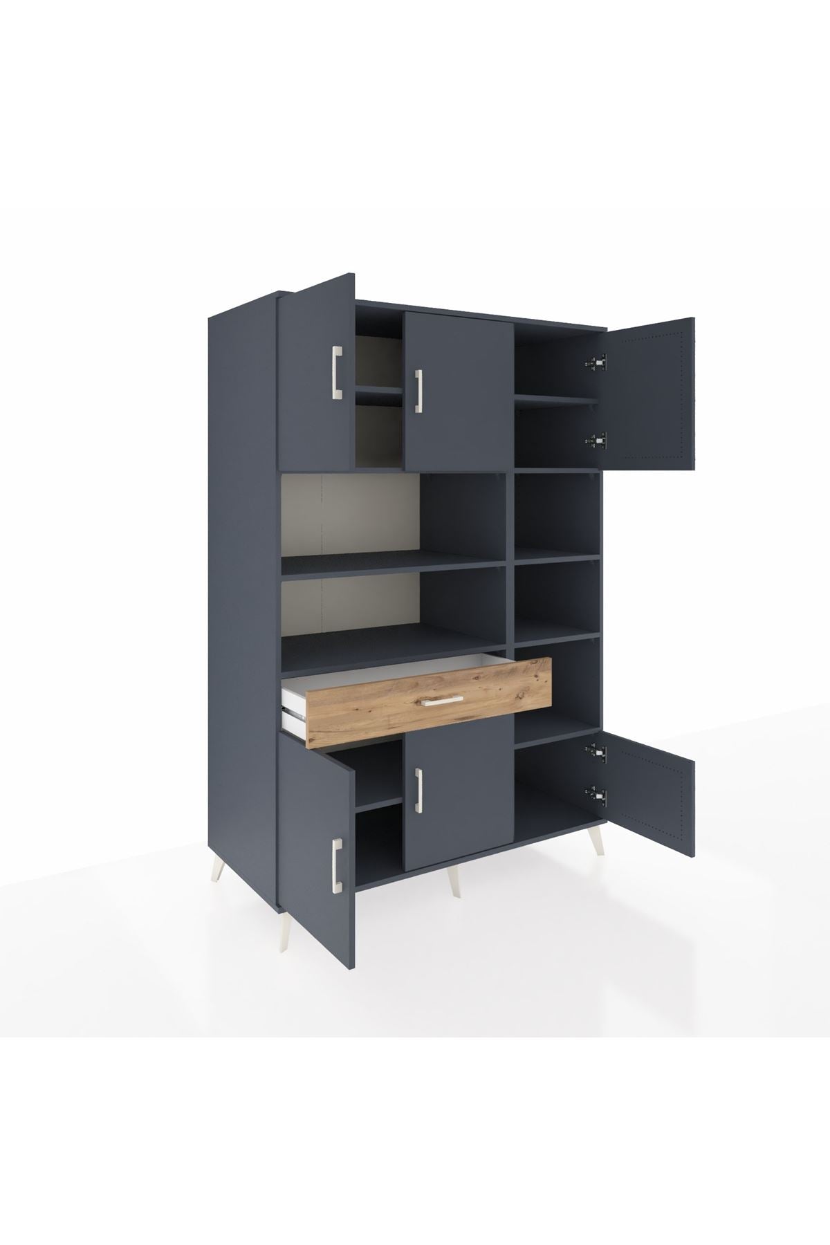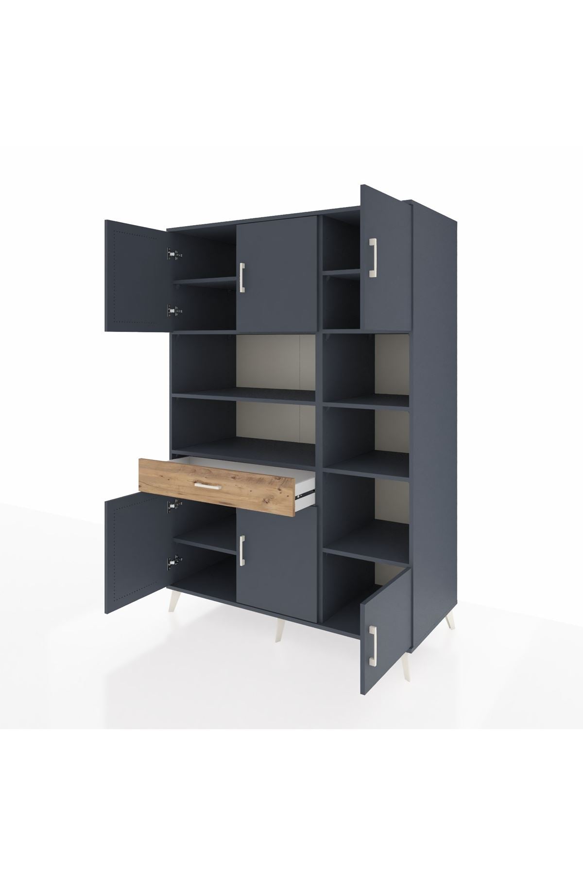 Kronos Dolap 10 Raflı Tek Çekmeceli 6 Kapaklı 132x59x195 Antrasit-Antrasit/Çam