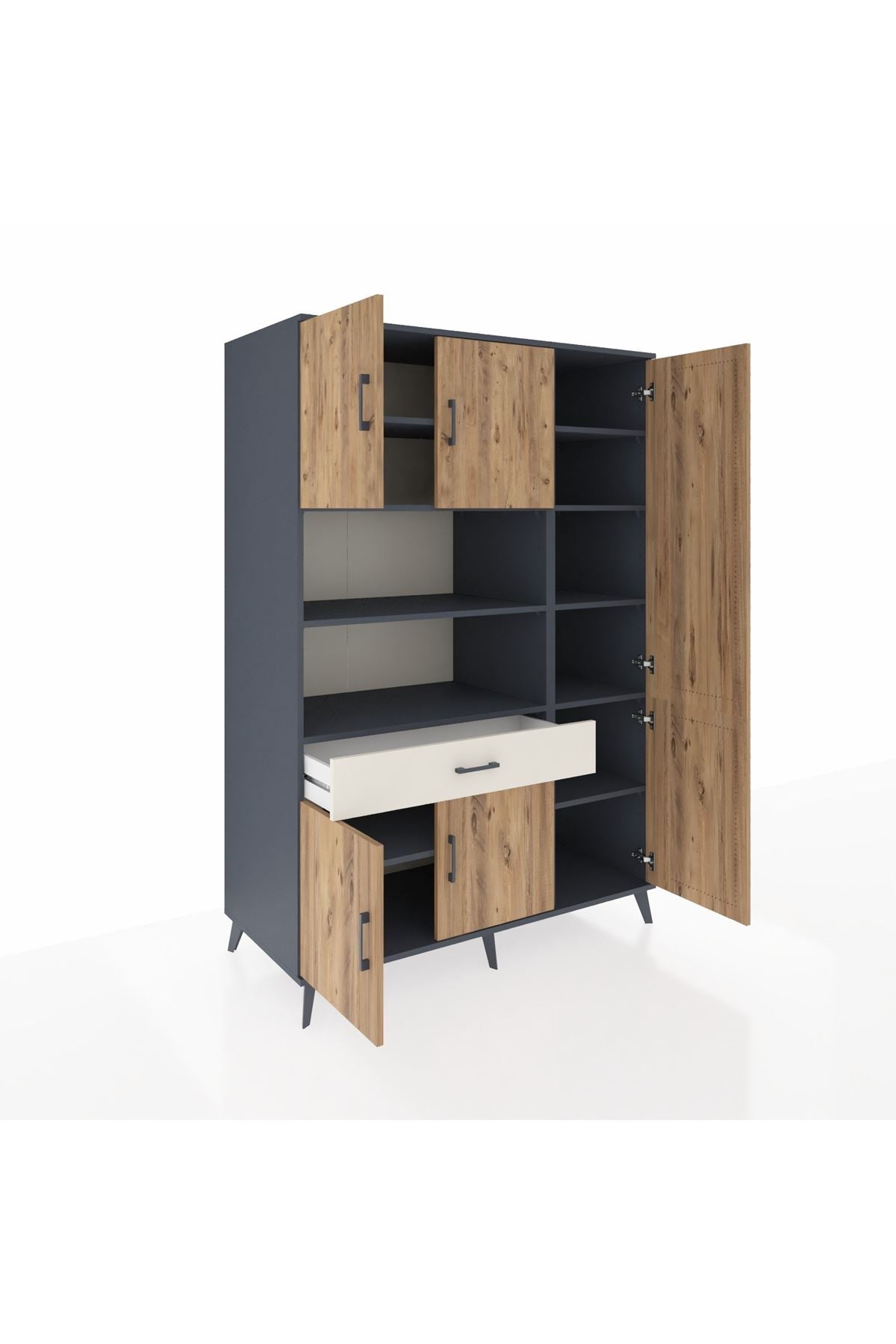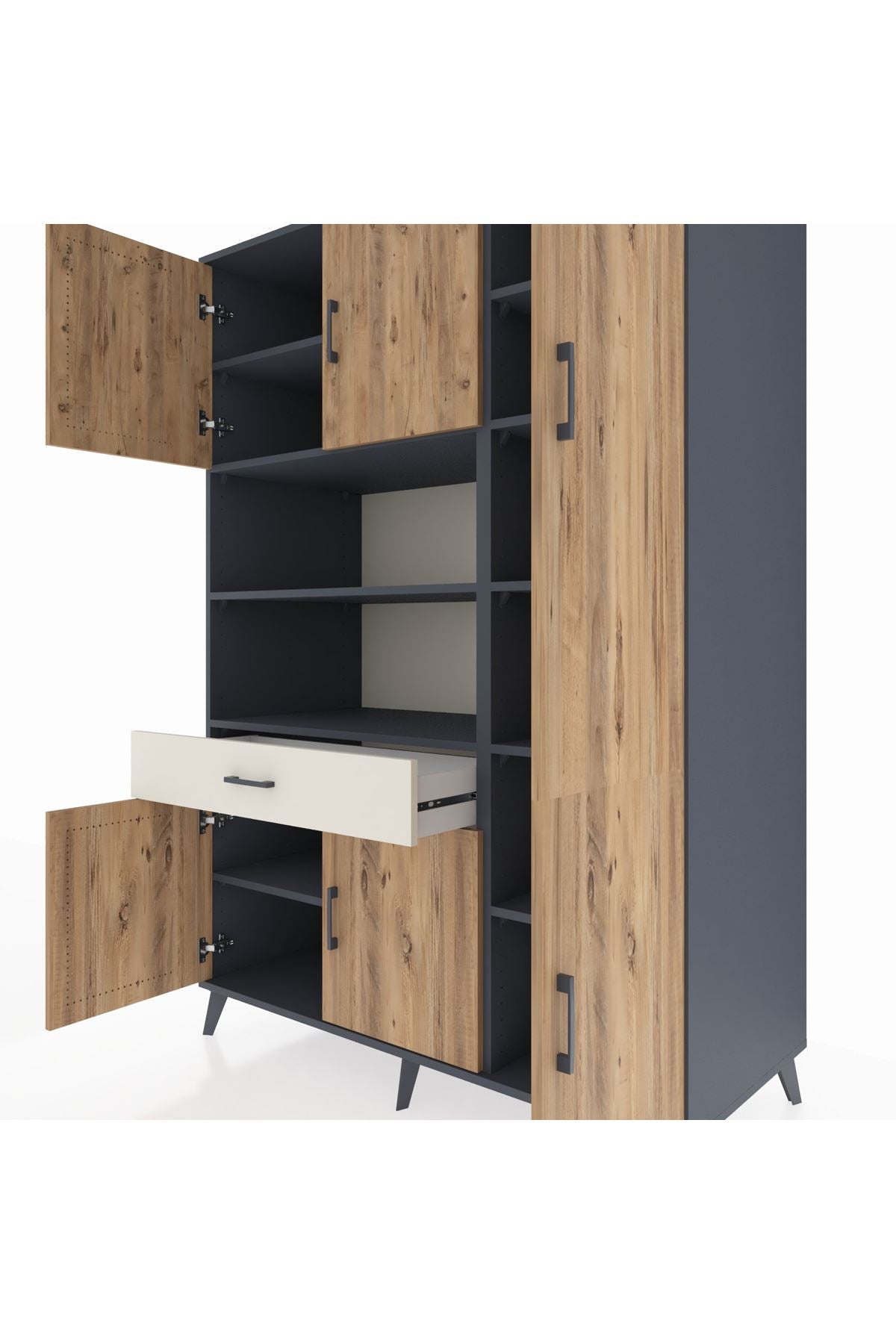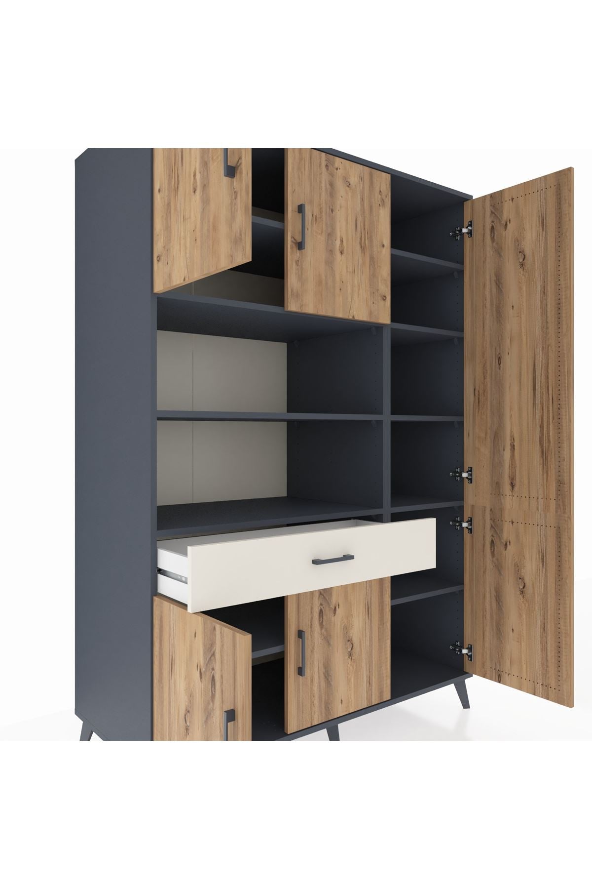 Kronos Dolap 10 Raflı Tek Çekmeceli 6 Kapaklı 132x59x195 Antrasit-Çam/Aytaşı