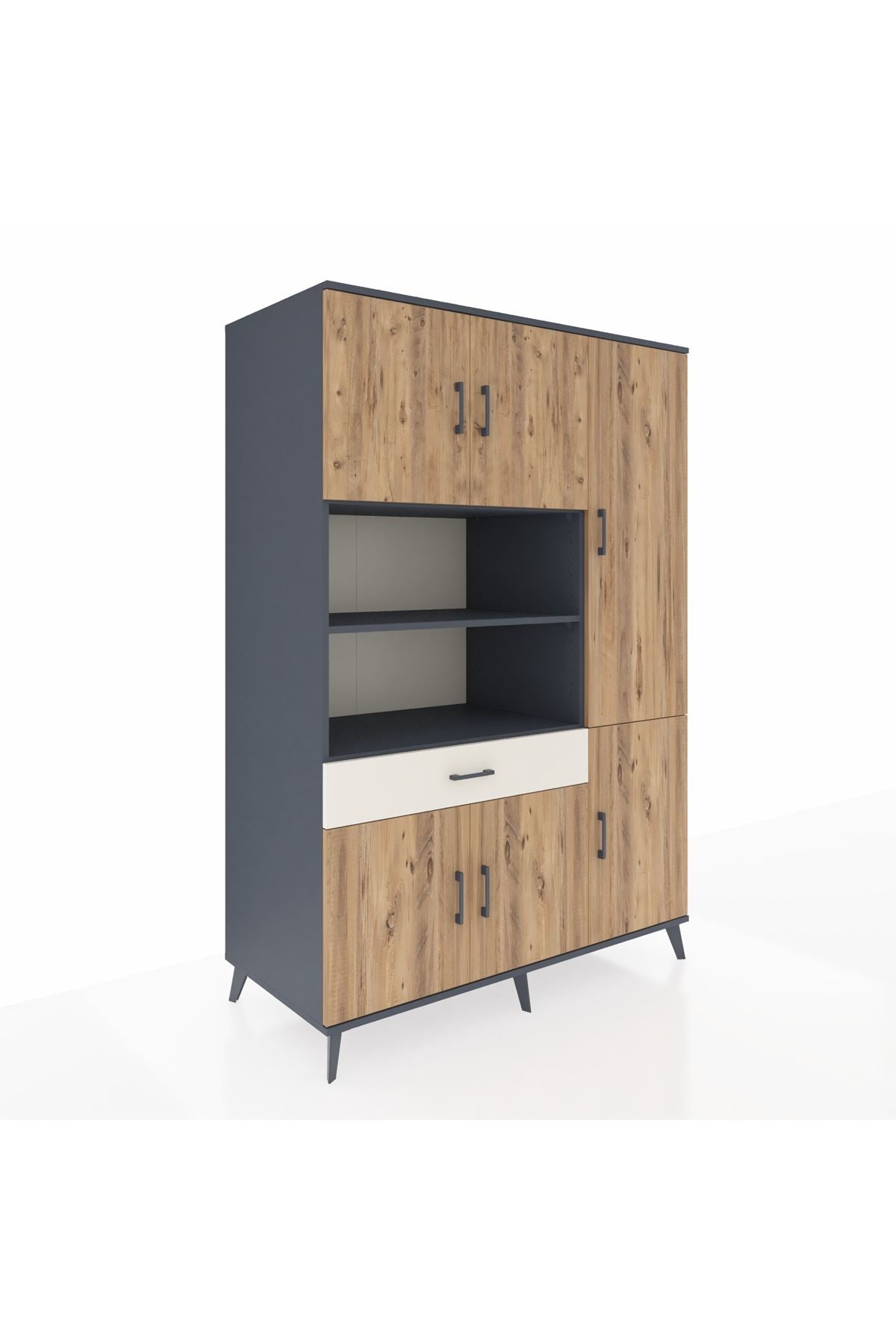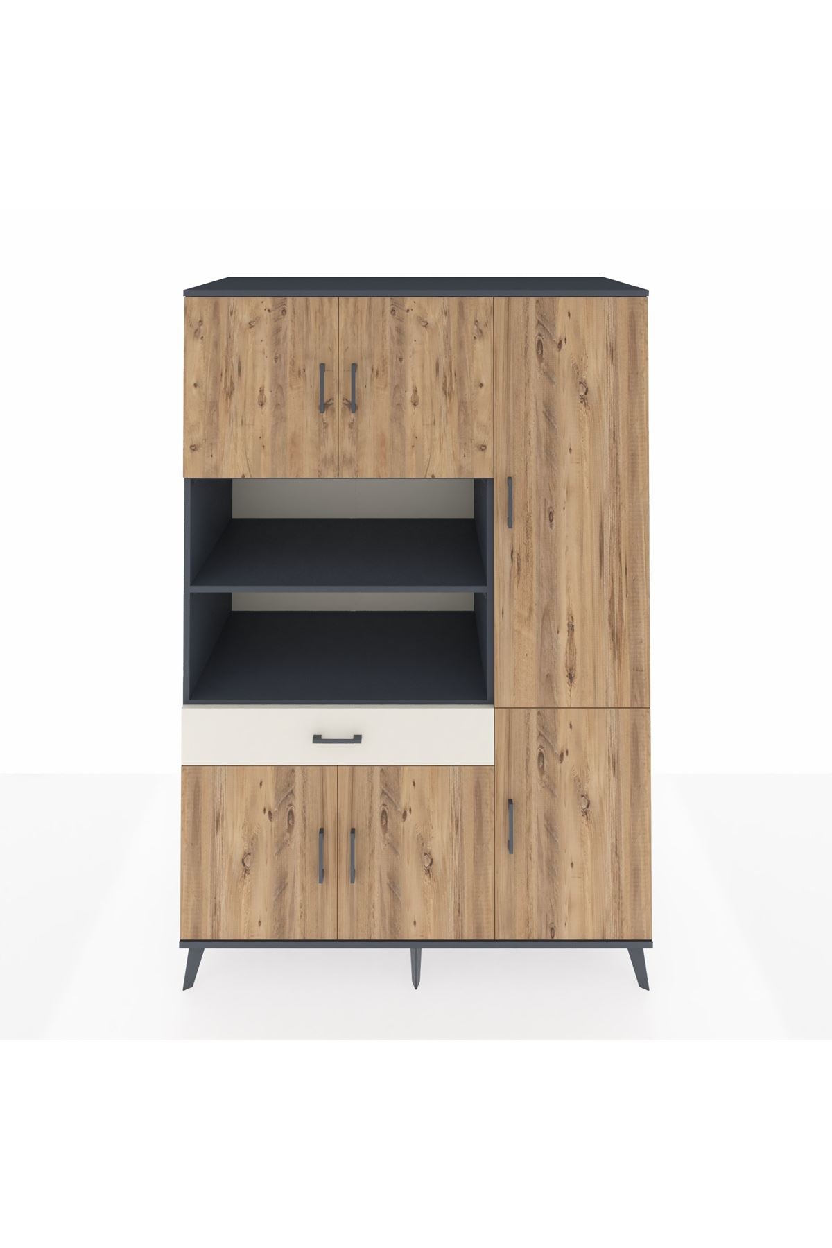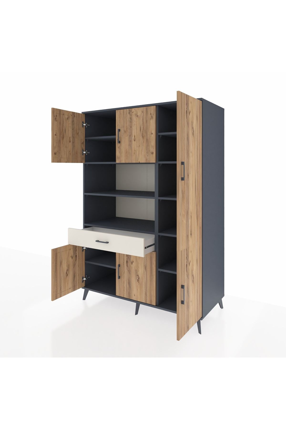 Kronos Dolap 10 Raflı Tek Çekmeceli 6 Kapaklı 132x59x195 Antrasit-Çam/Aytaşı