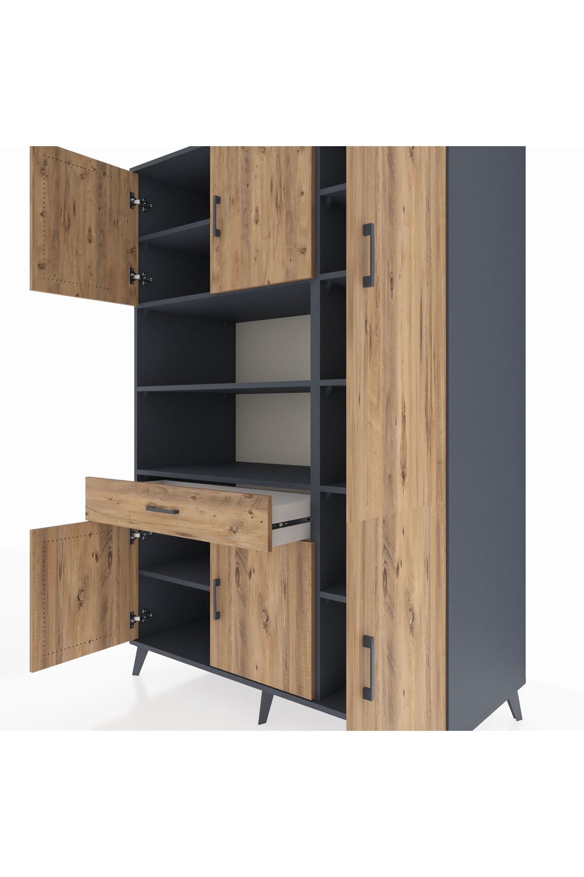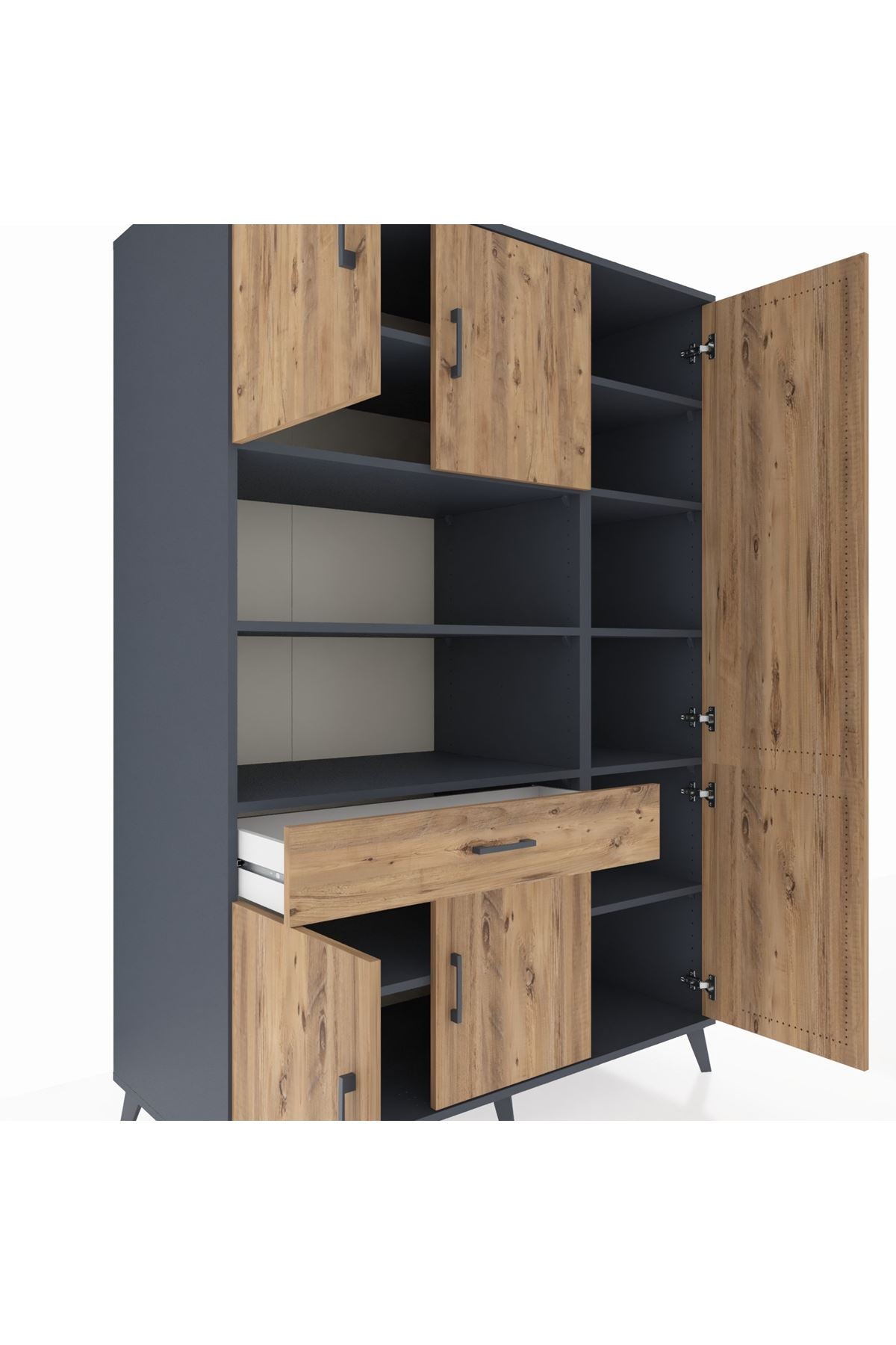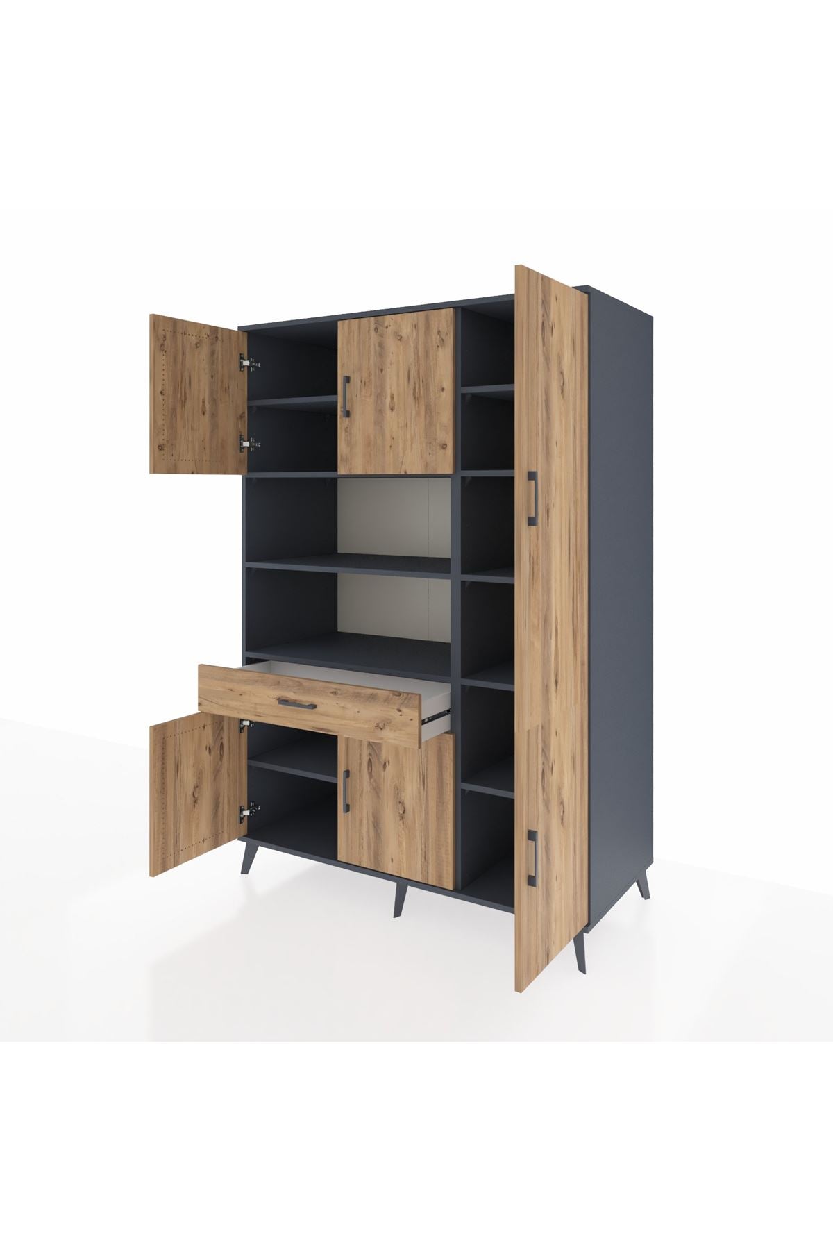 Kronos Dolap 10 Raflı Tek Çekmeceli 6 Kapaklı 132x59x195 Antrasit-Çam/Çam