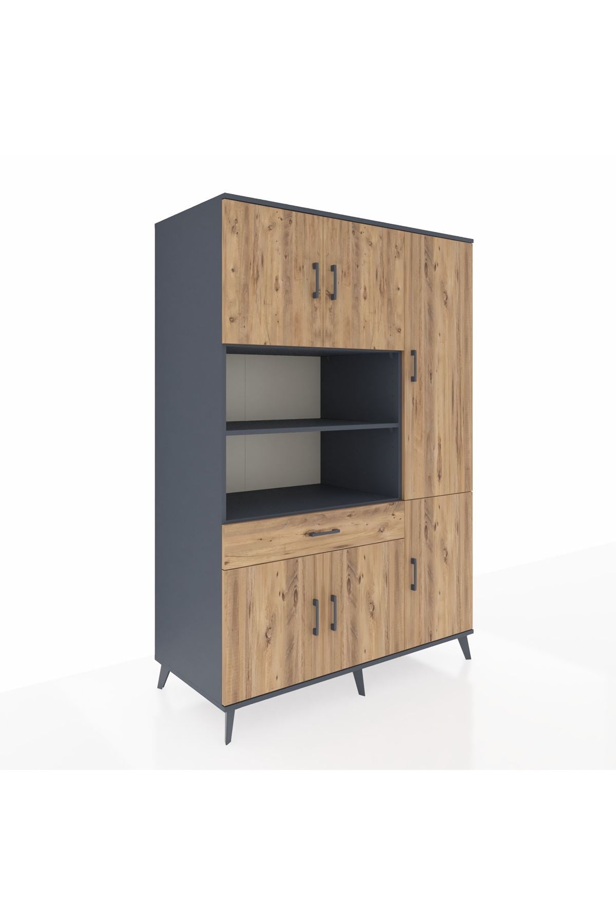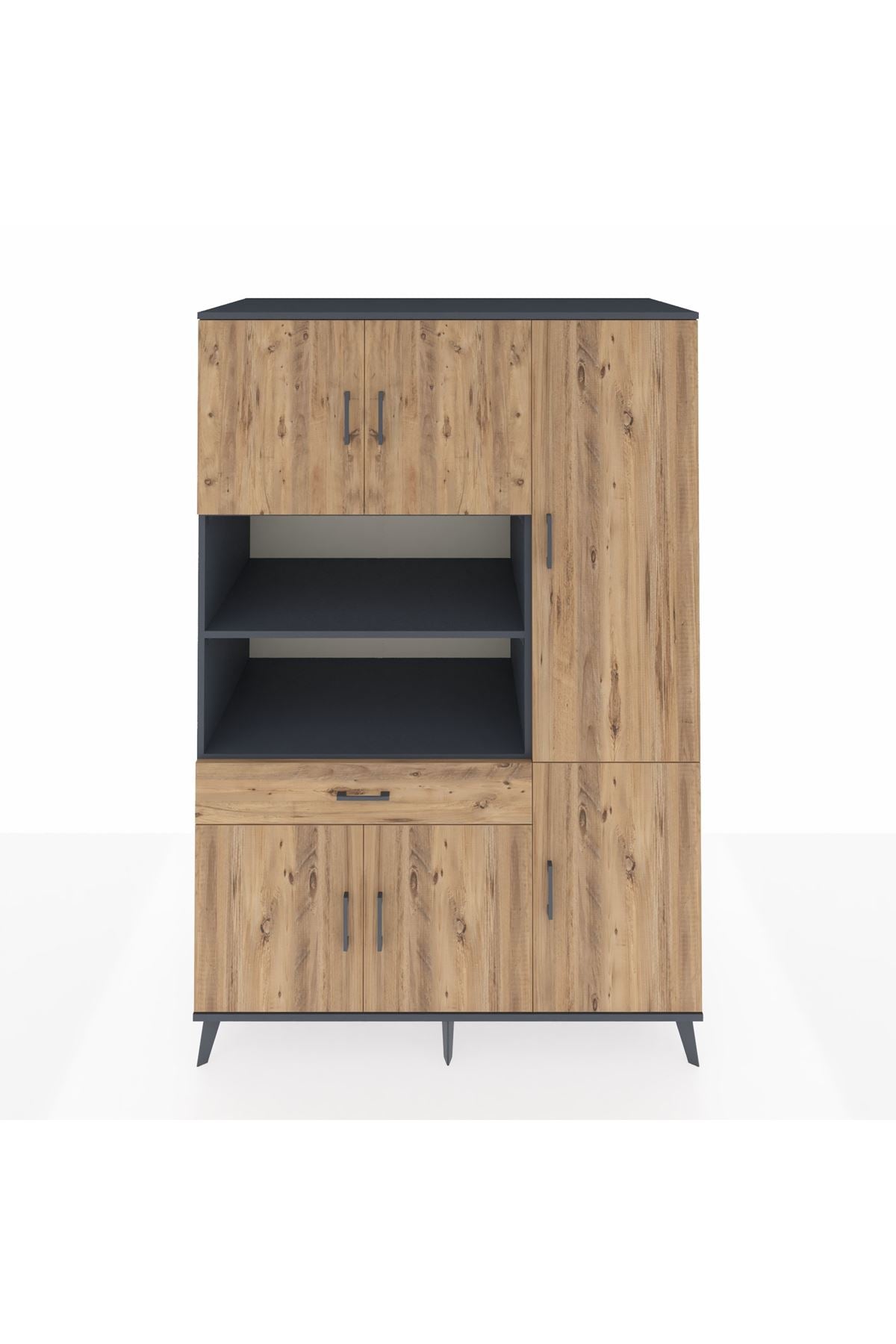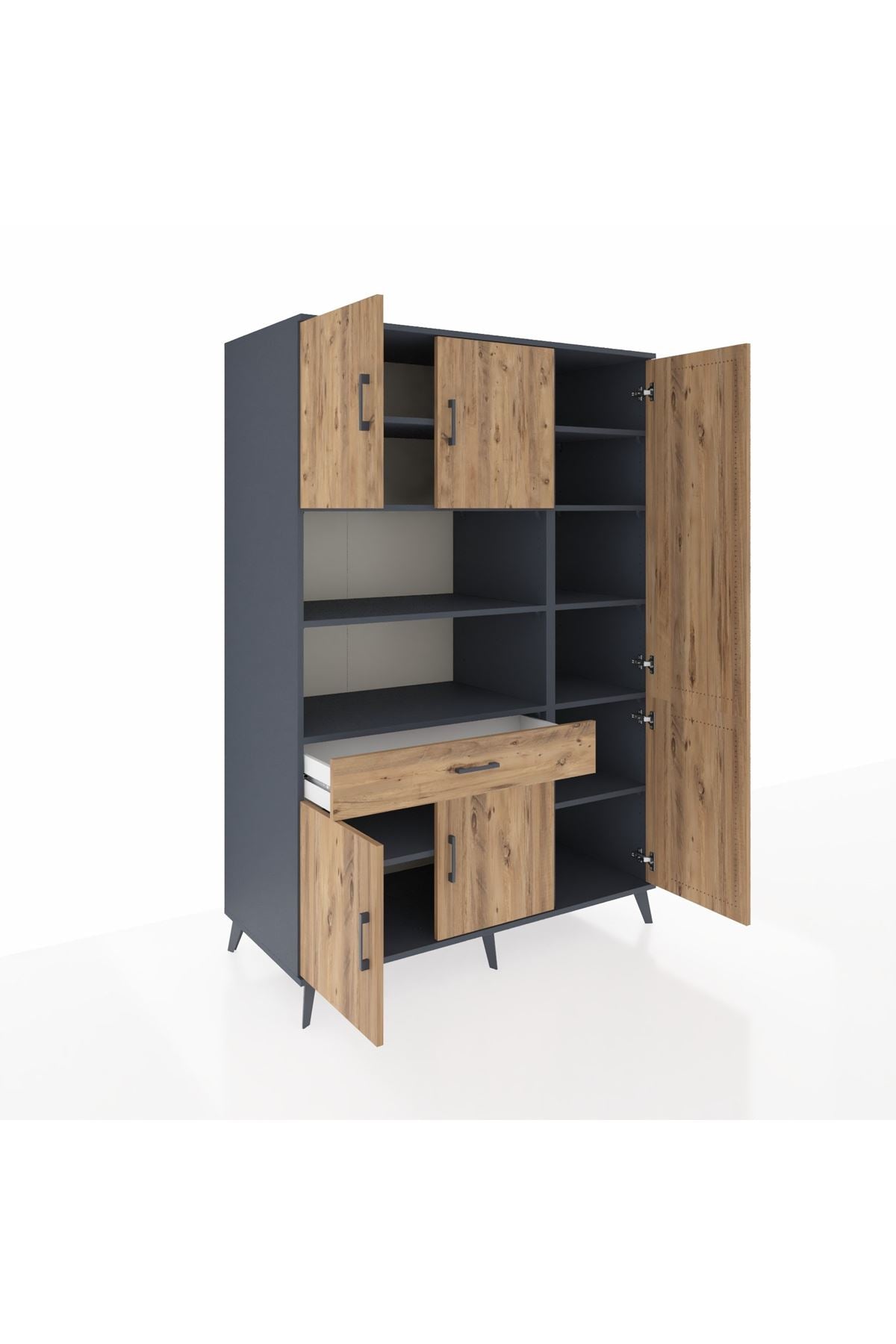 Kronos Dolap 10 Raflı Tek Çekmeceli 6 Kapaklı 132x59x195 Antrasit-Çam/Çam