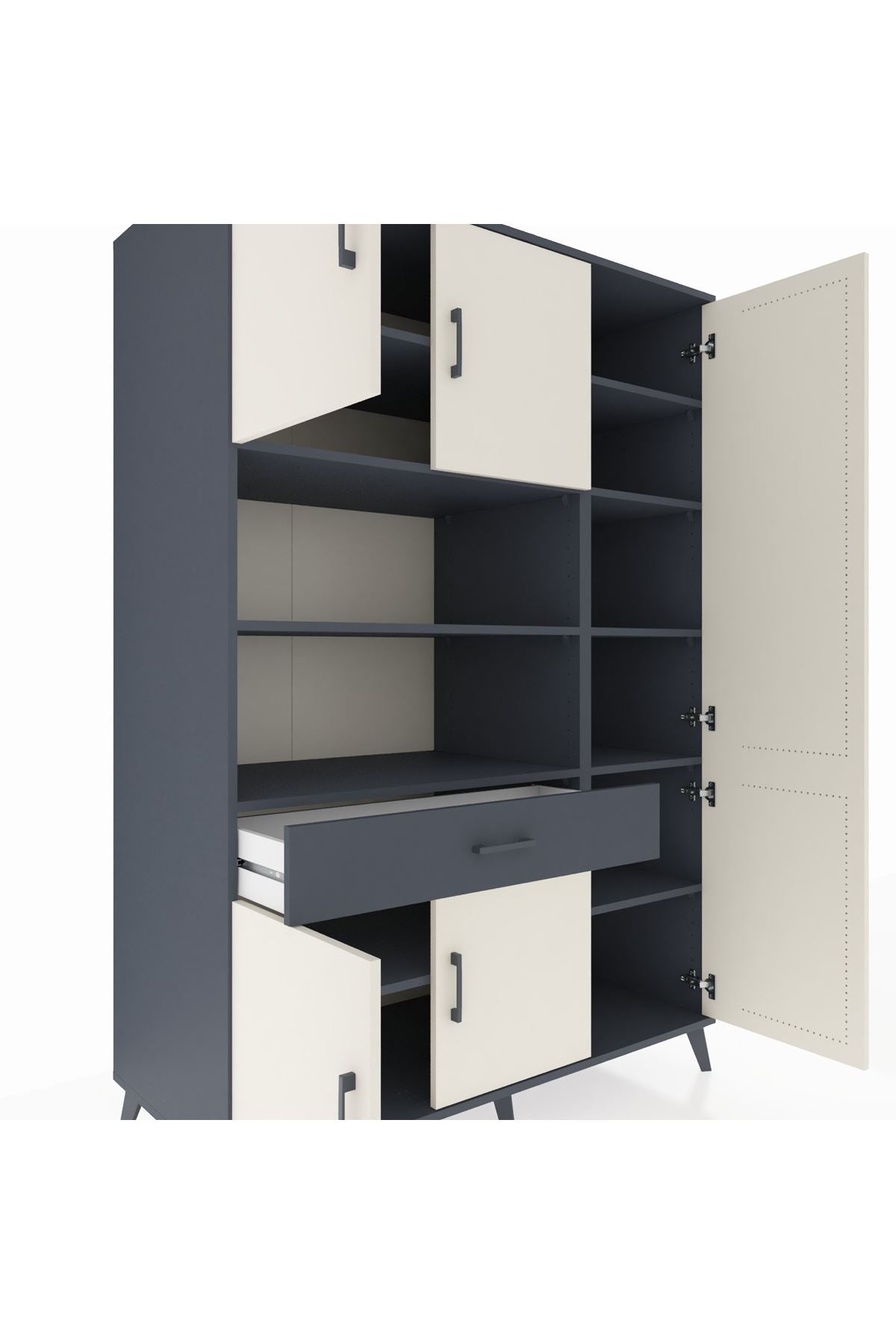 Kronos Dolap 10 Raflı Tek Çekmeceli 6 Kapaklı 132x59x195 Antrasit-Aytaşı/Antrasit