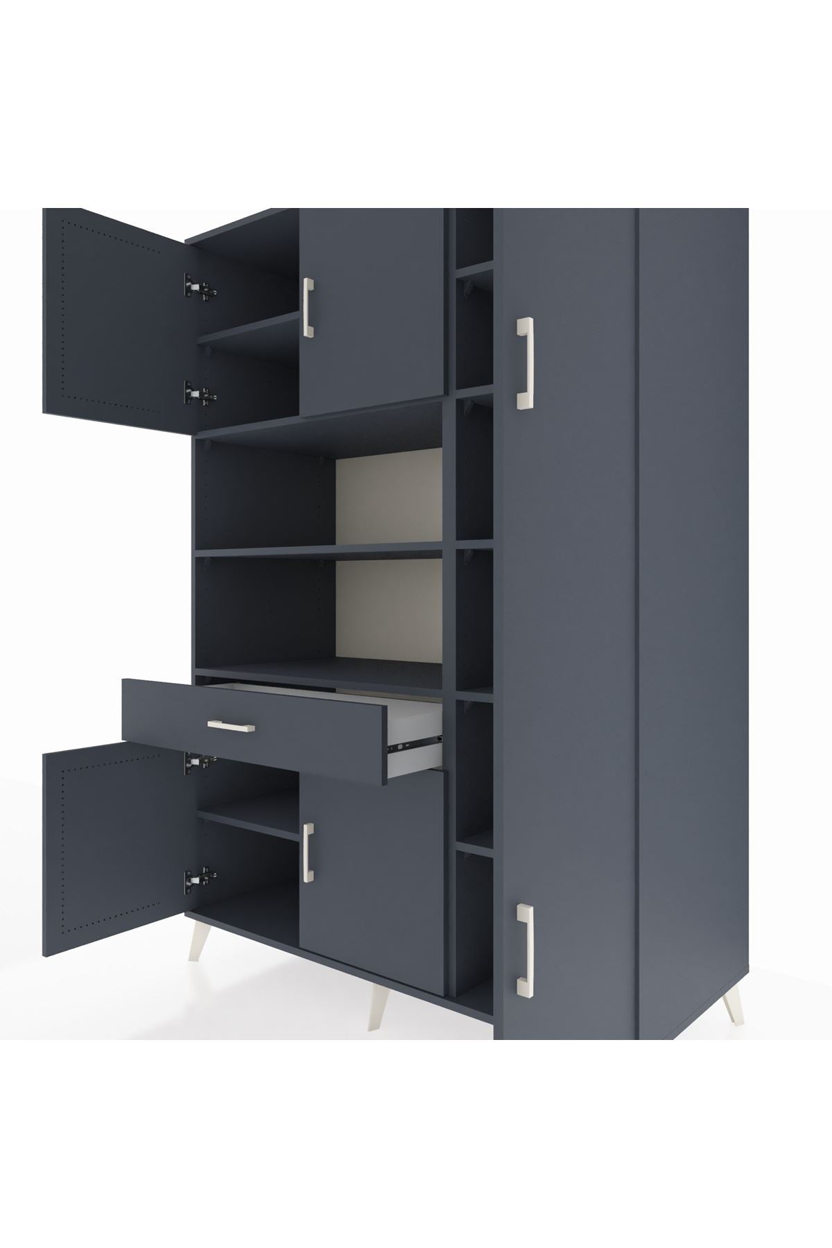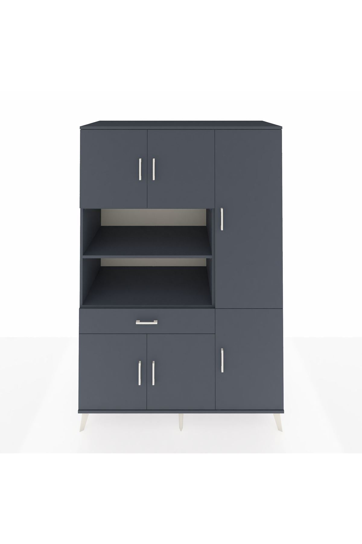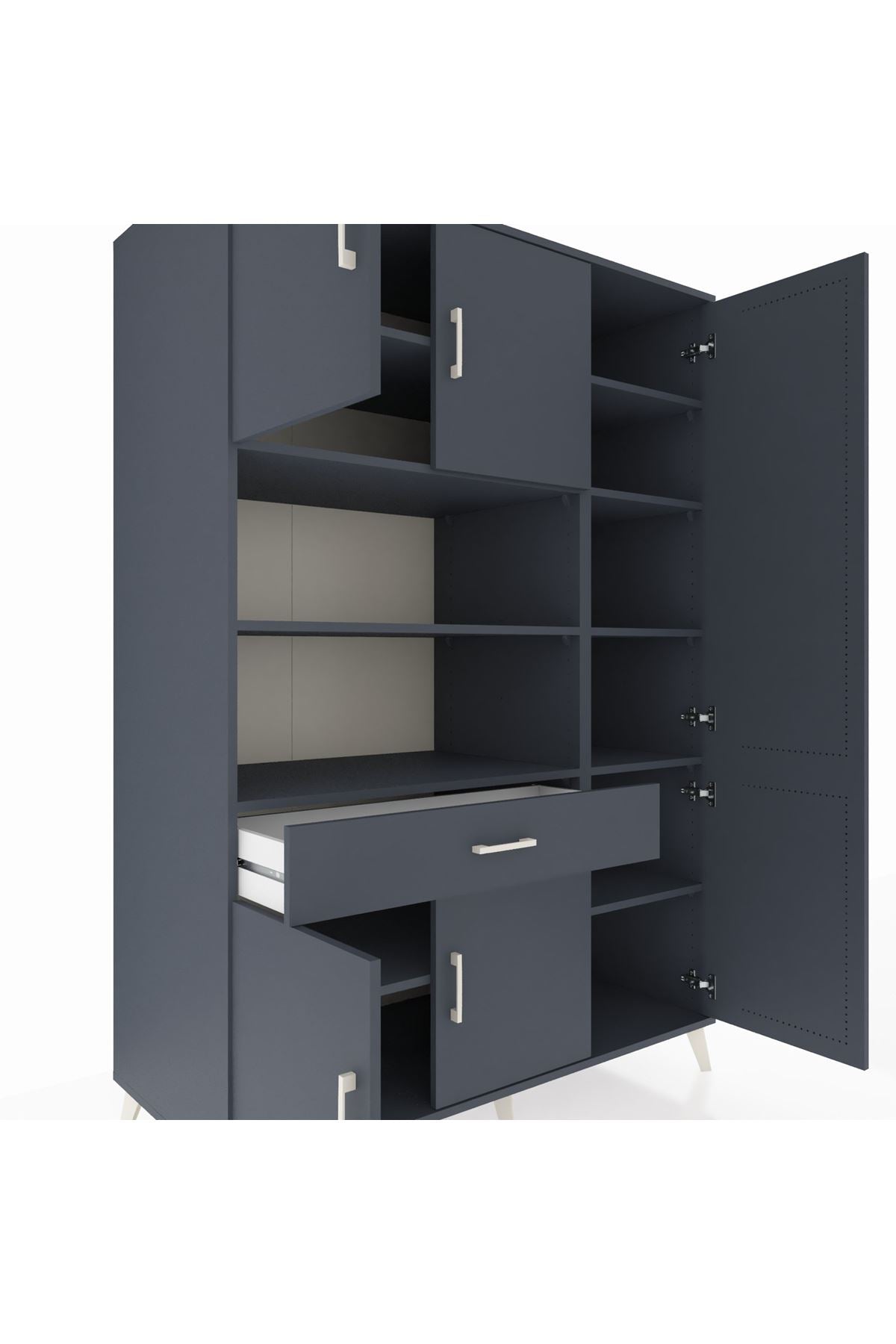 Kronos Dolap 10 Raflı Tek Çekmeceli 6 Kapaklı 132x59x195 Antrasit-Antrasit/Antrasit